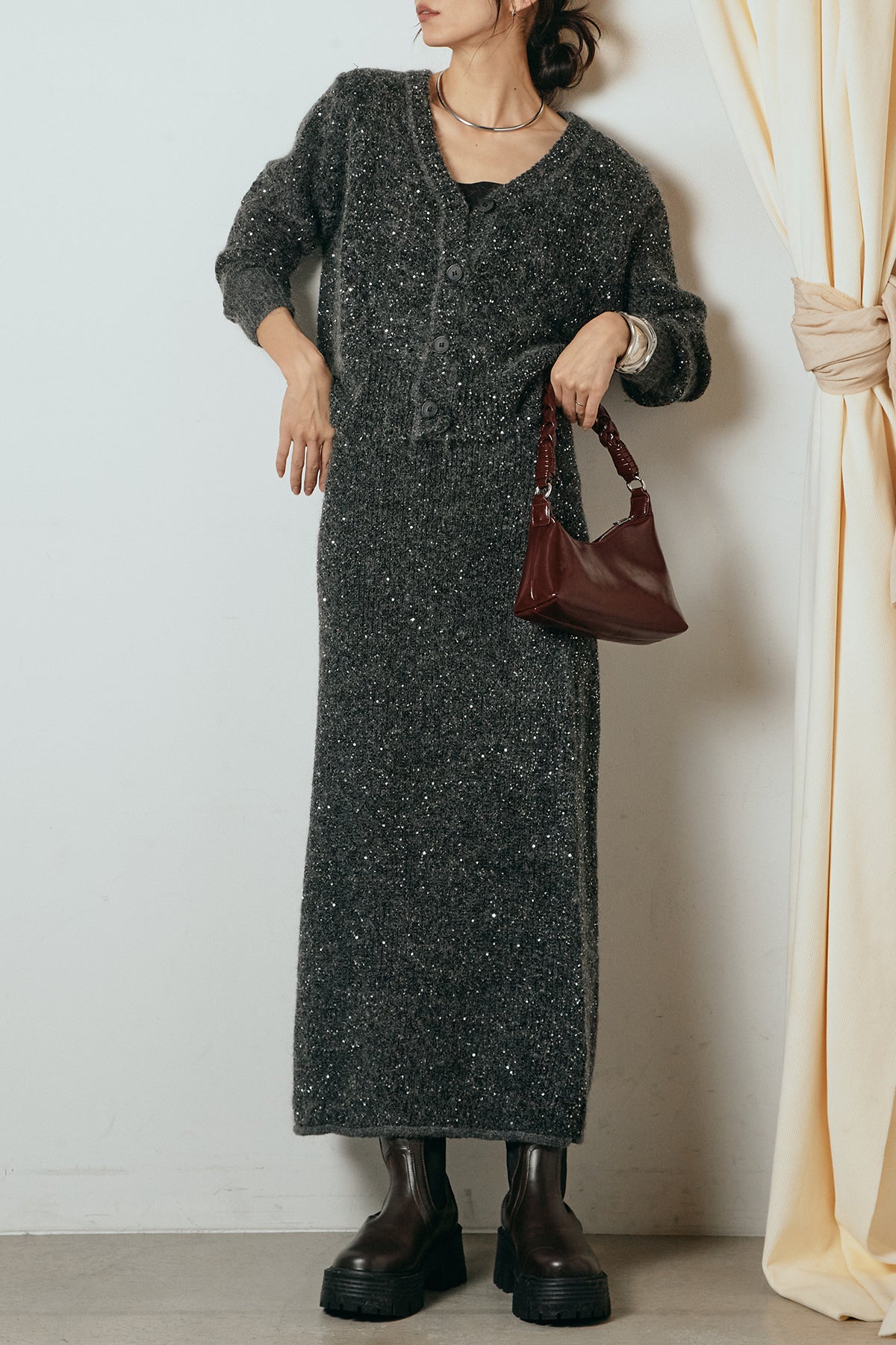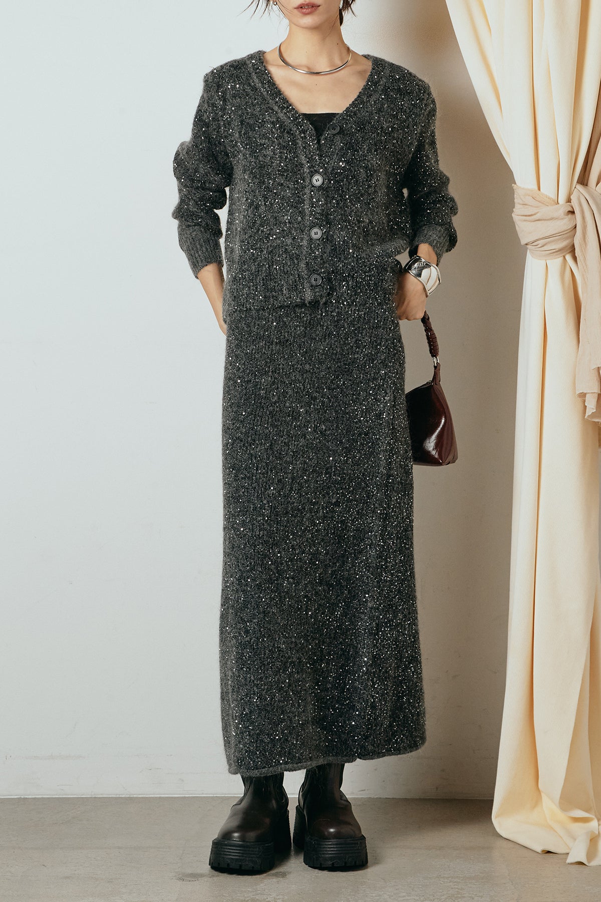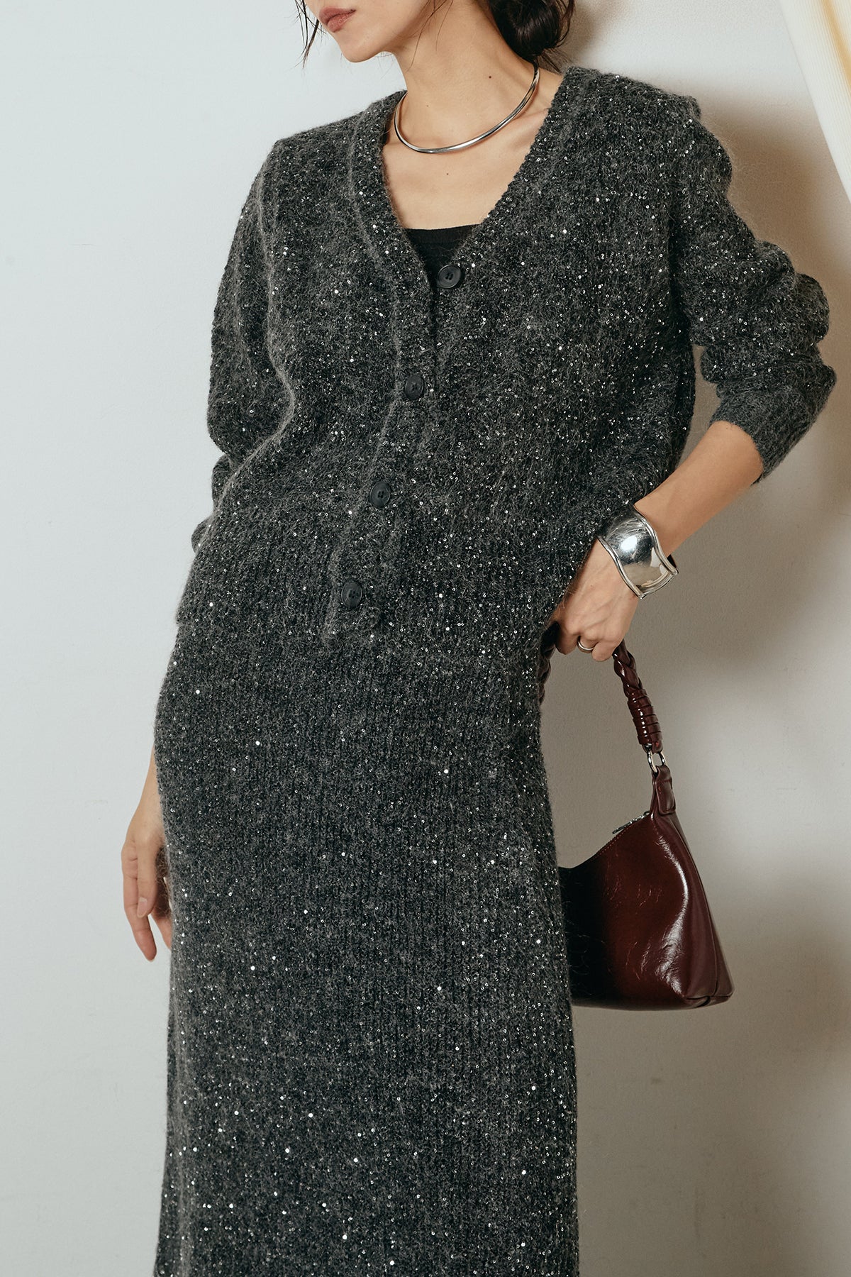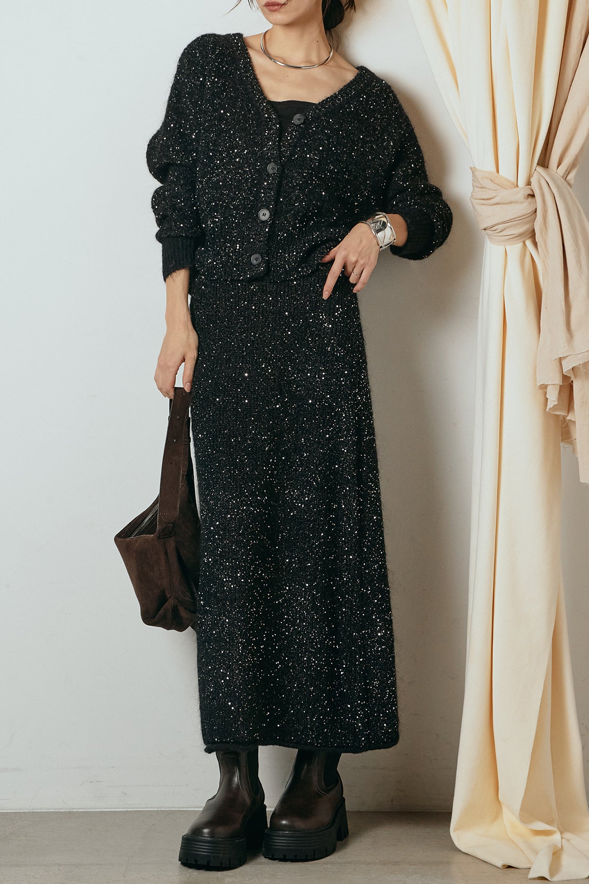 [SET]ミニラメニットカーディガン+ミニラメニットスカート(2set)