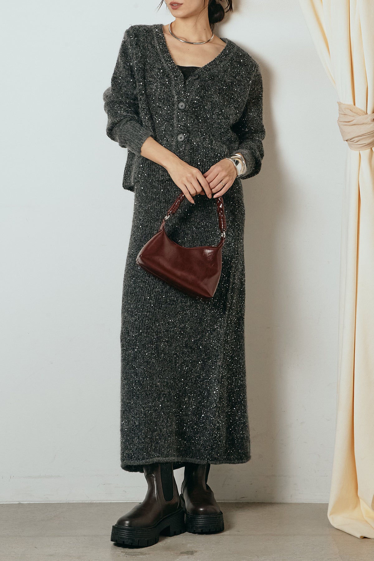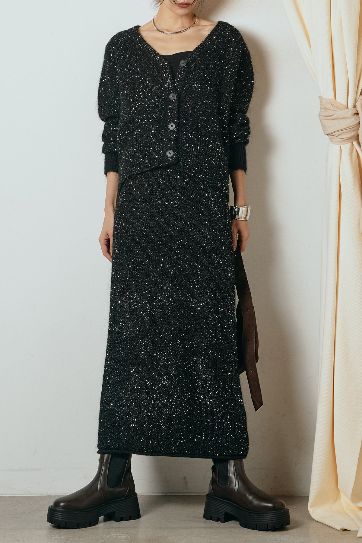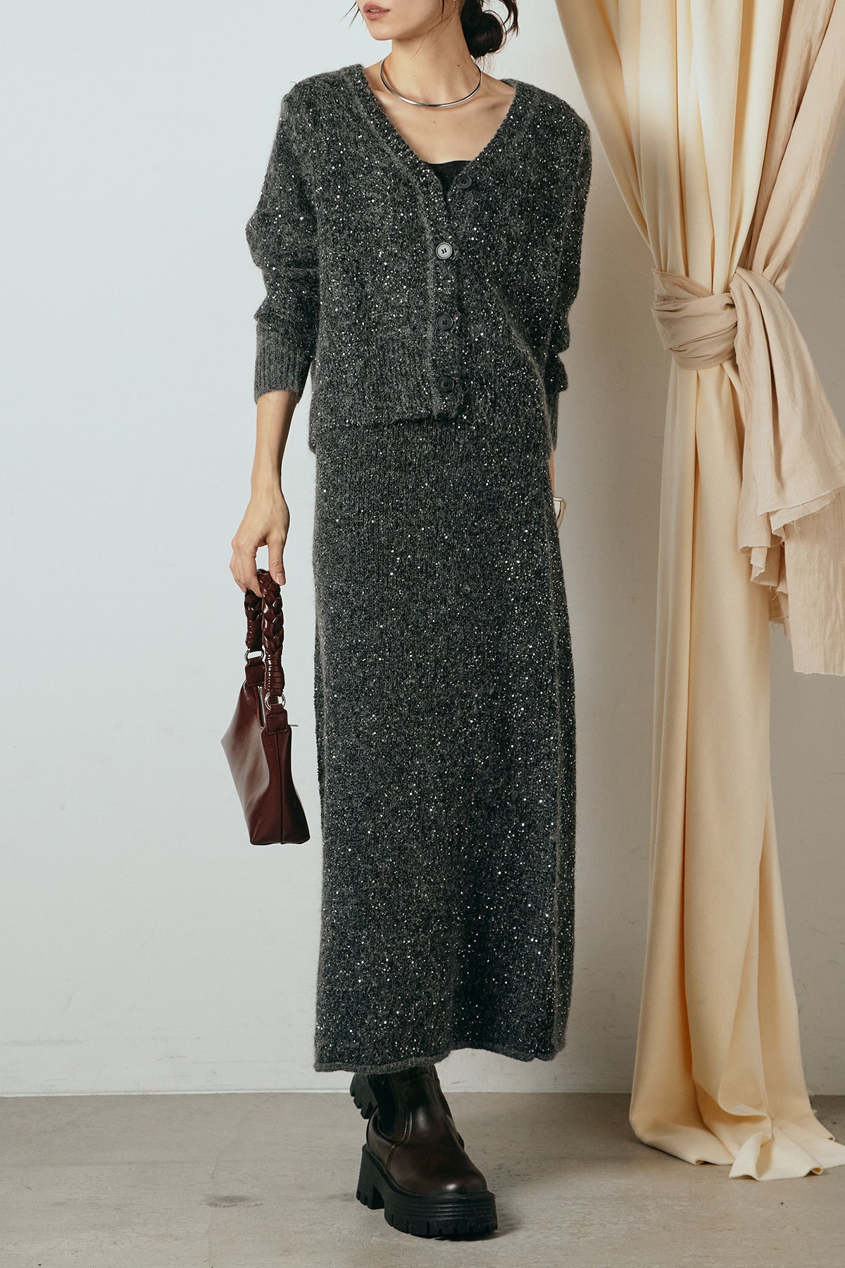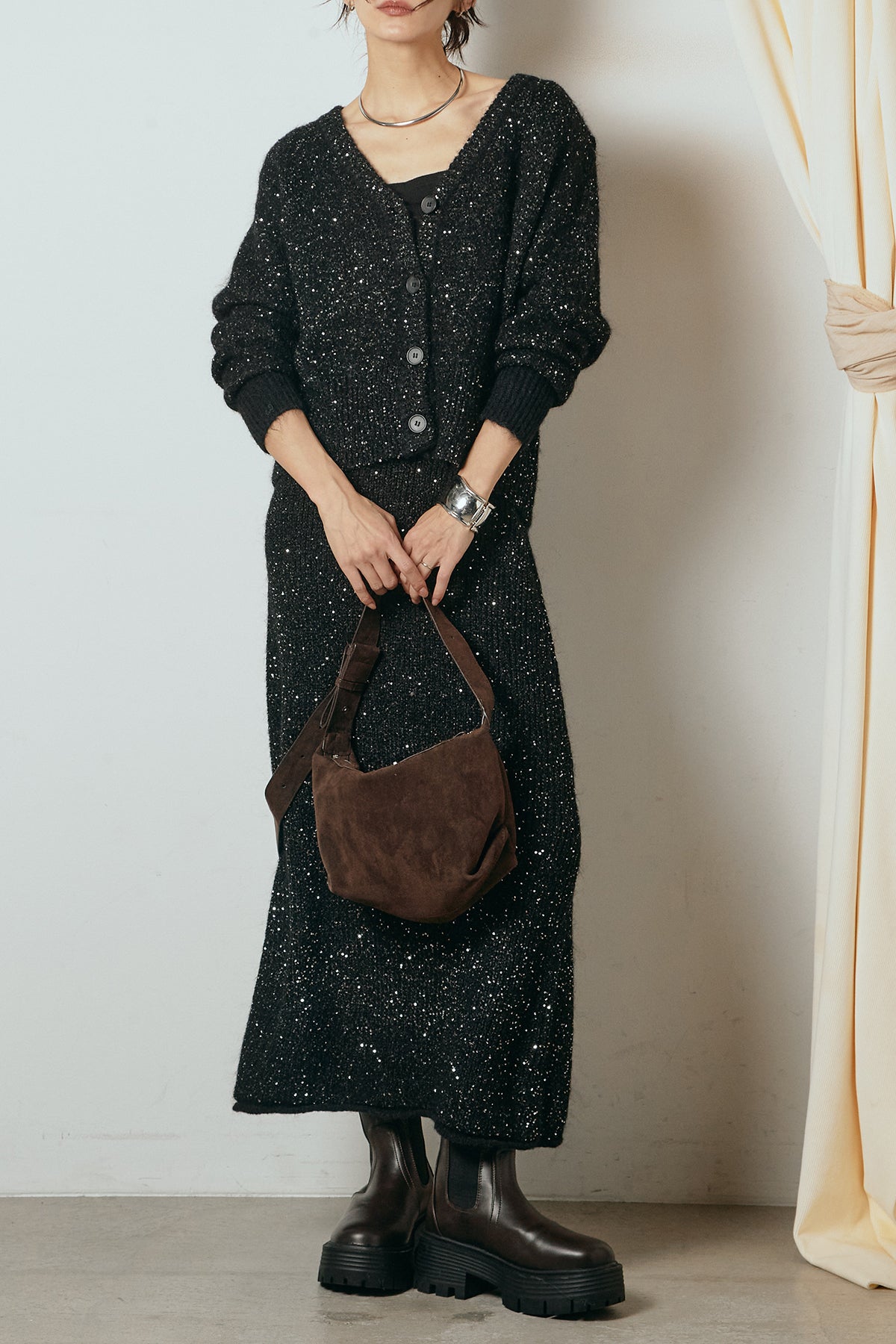 [SET]ミニラメニットカーディガン+ミニラメニットスカート(2set)