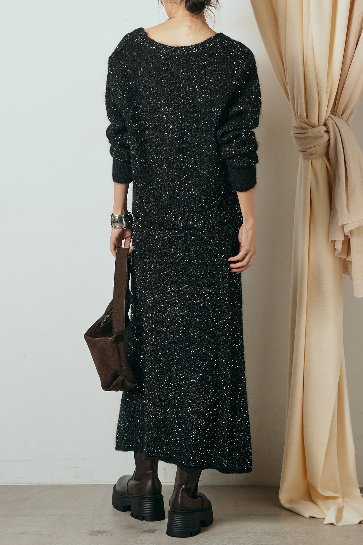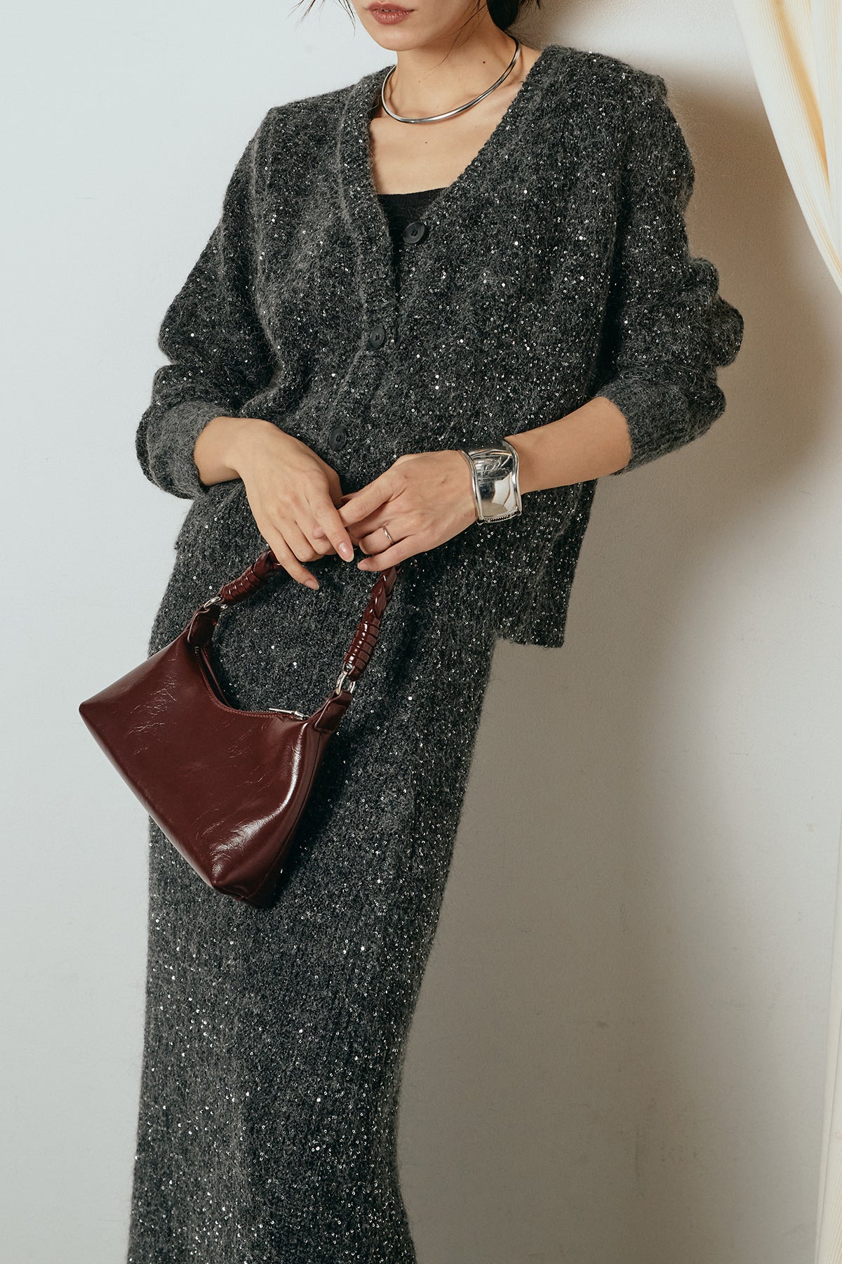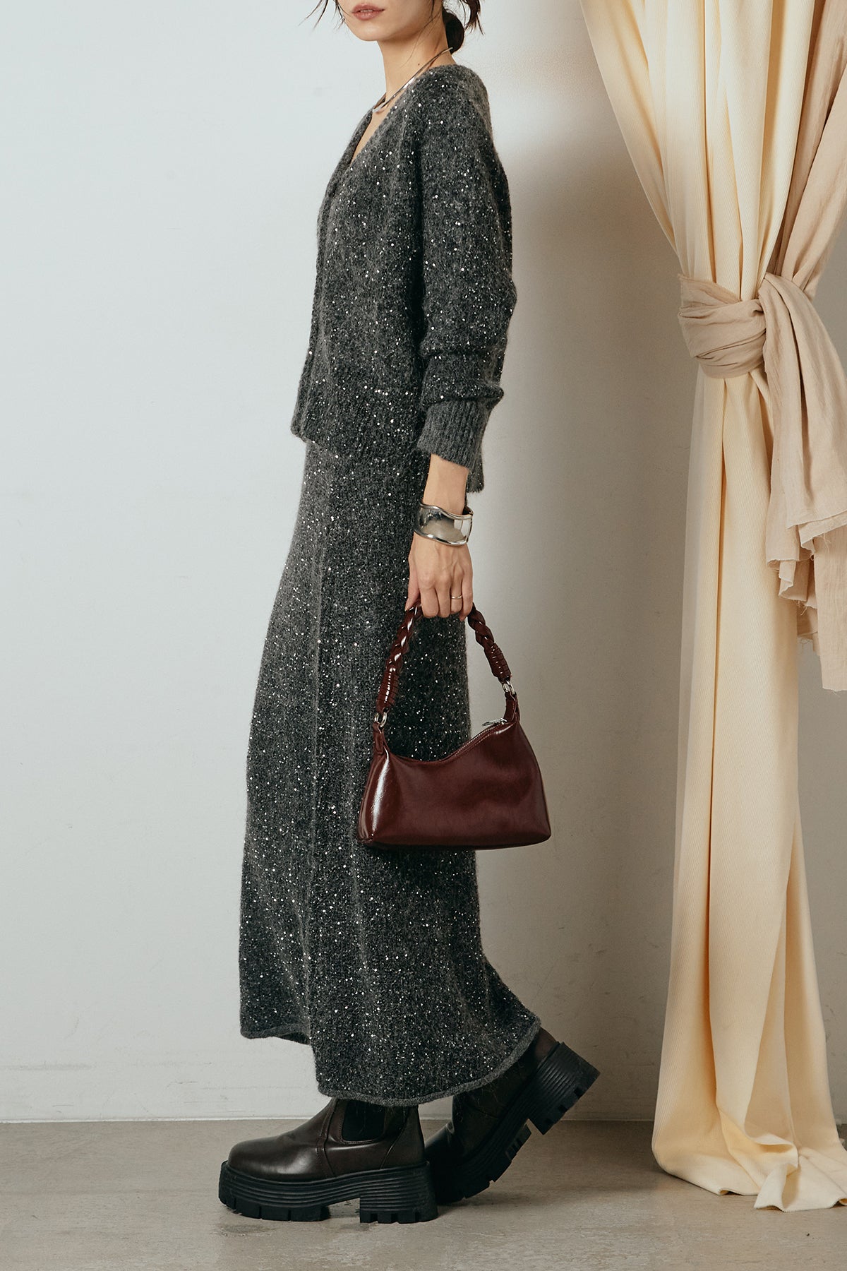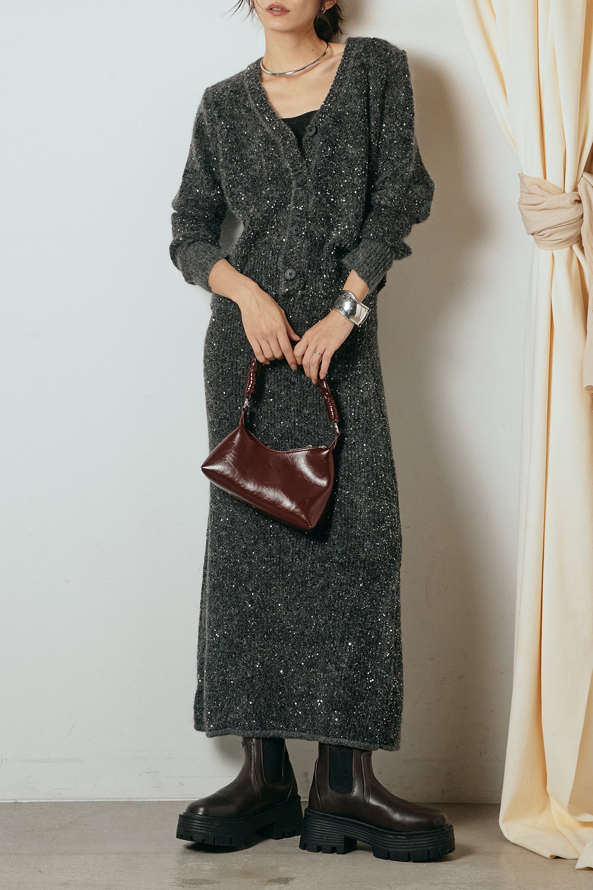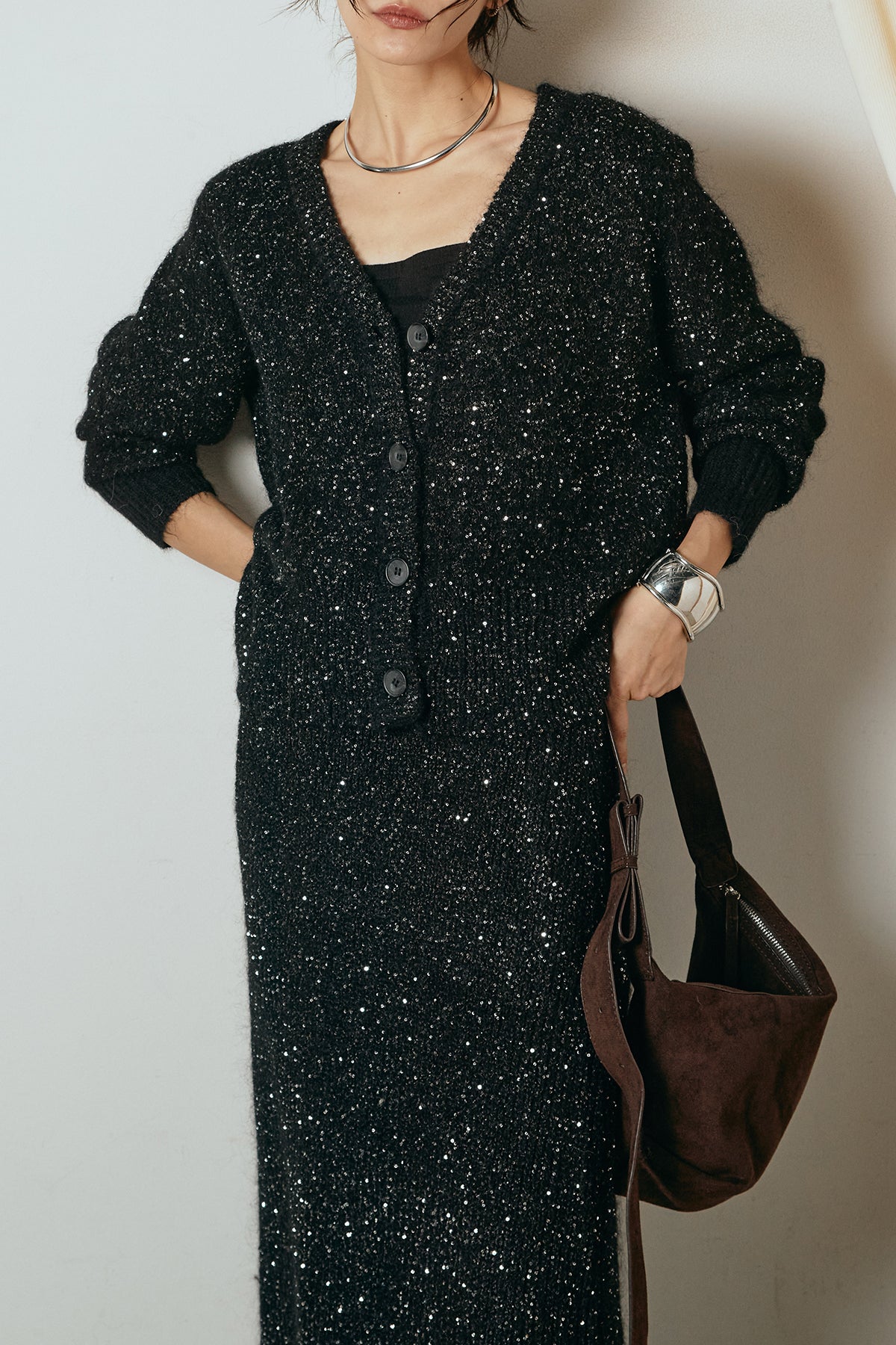 [SET]ミニラメニットカーディガン+ミニラメニットスカート(2set)