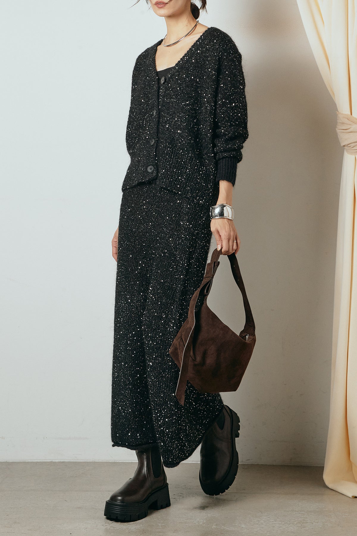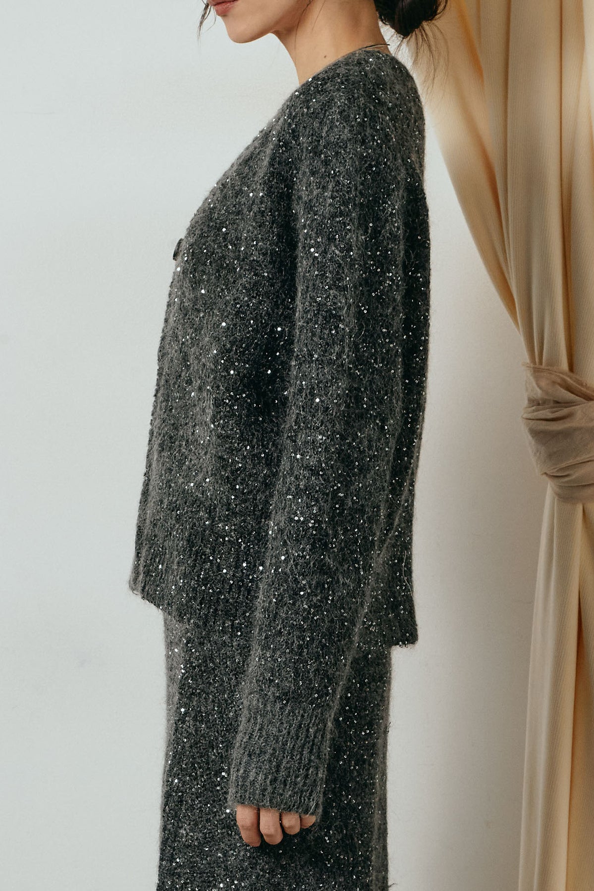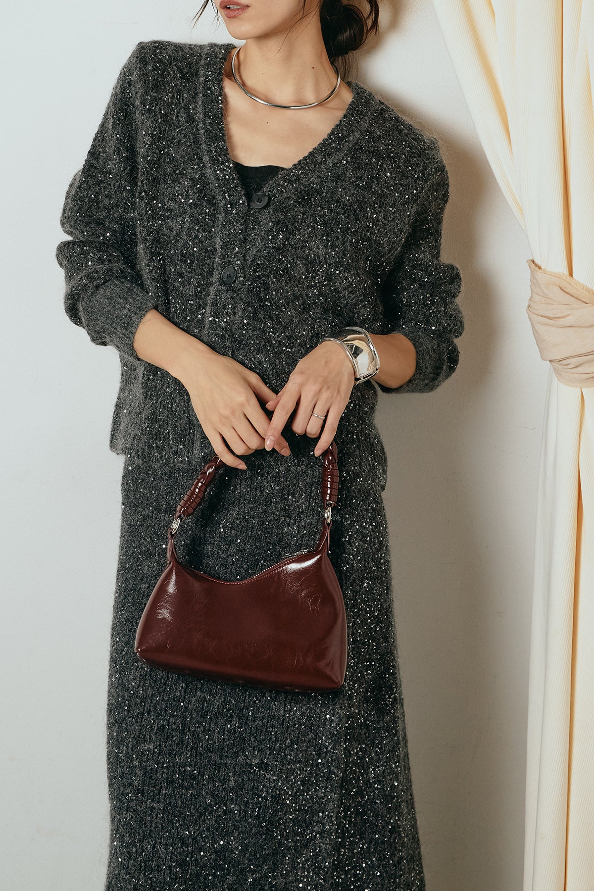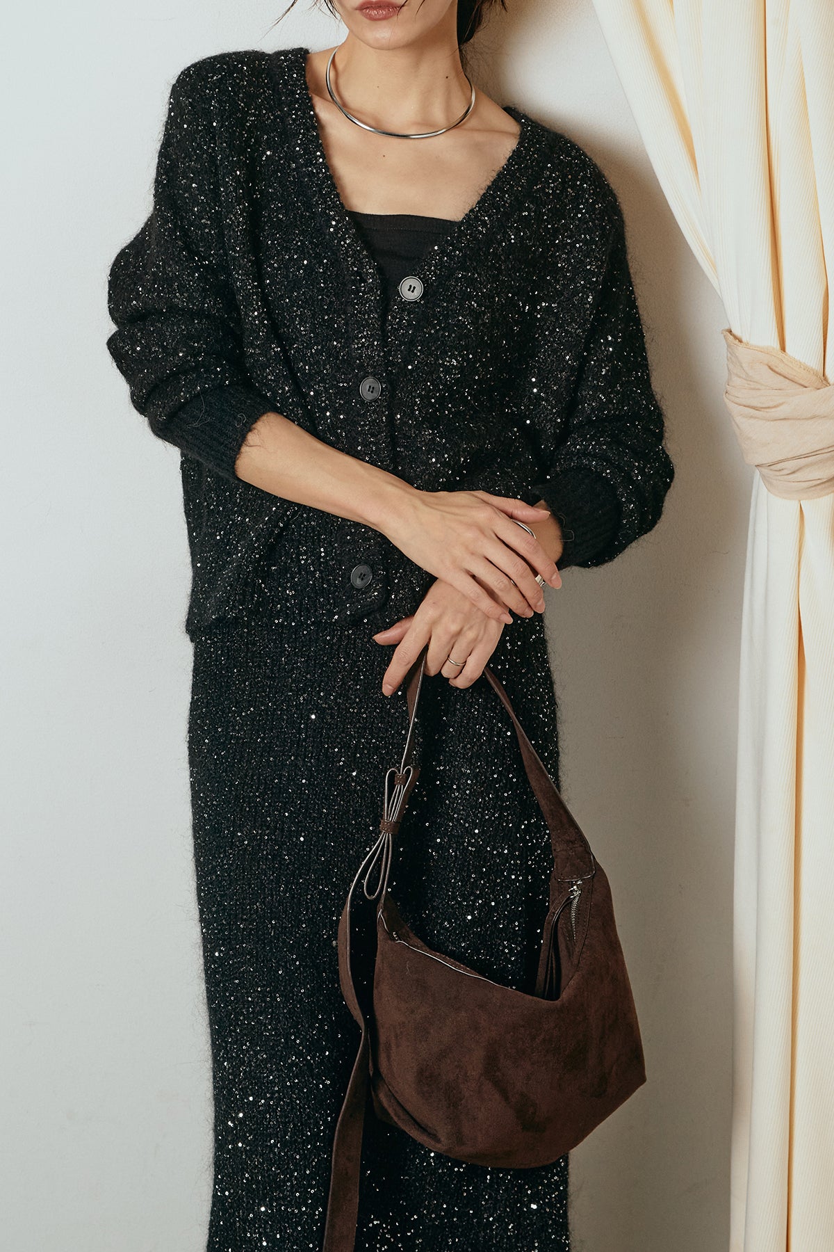 [SET]ミニラメニットカーディガン+ミニラメニットスカート(2set)