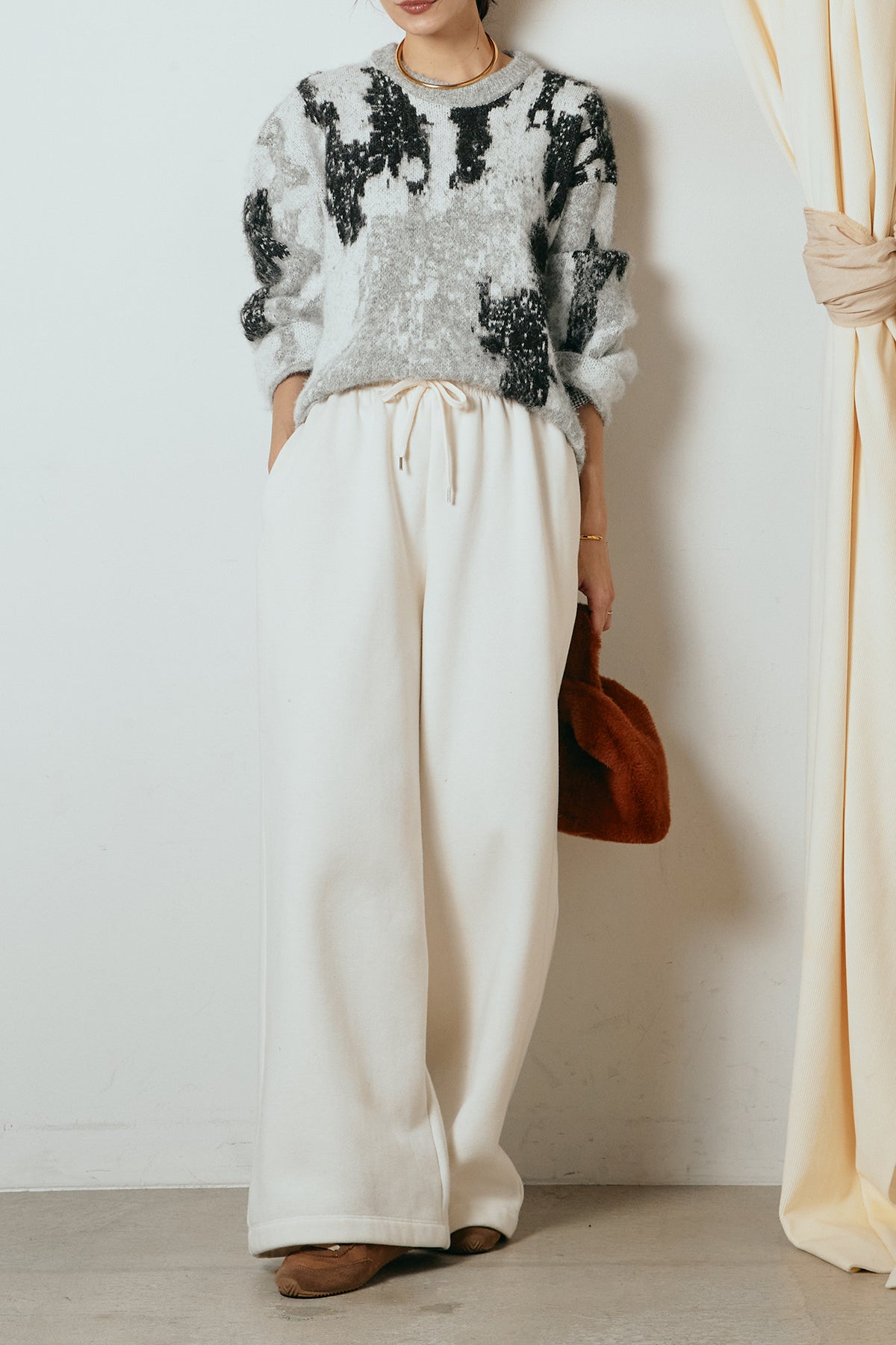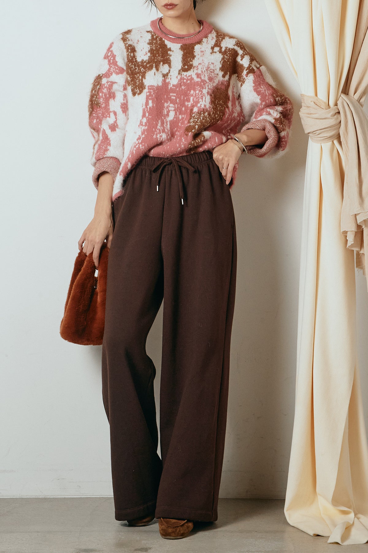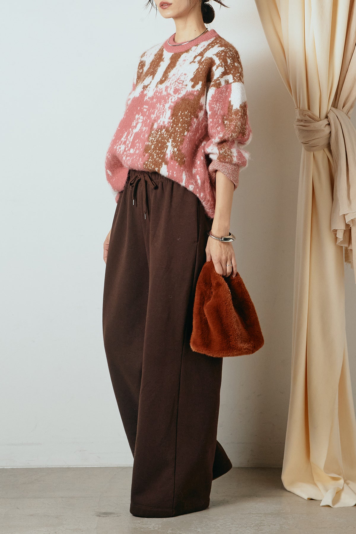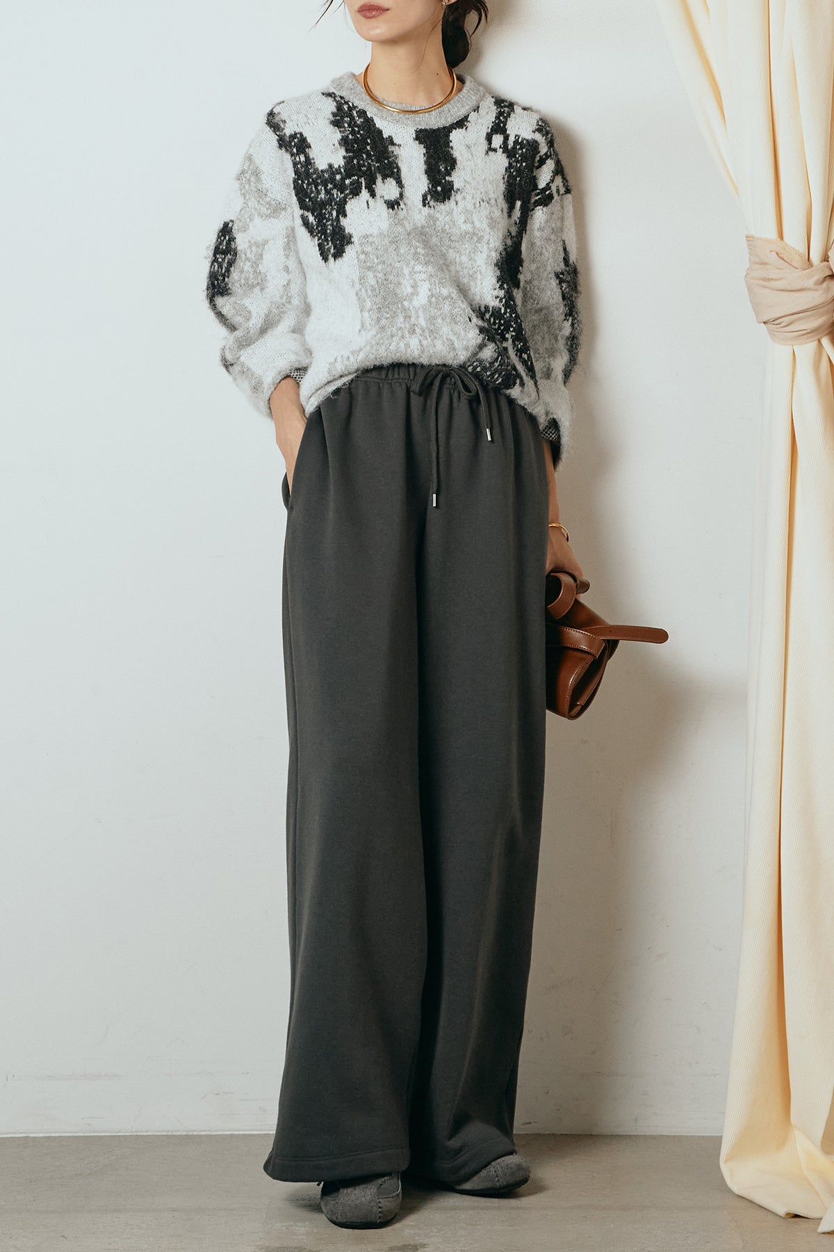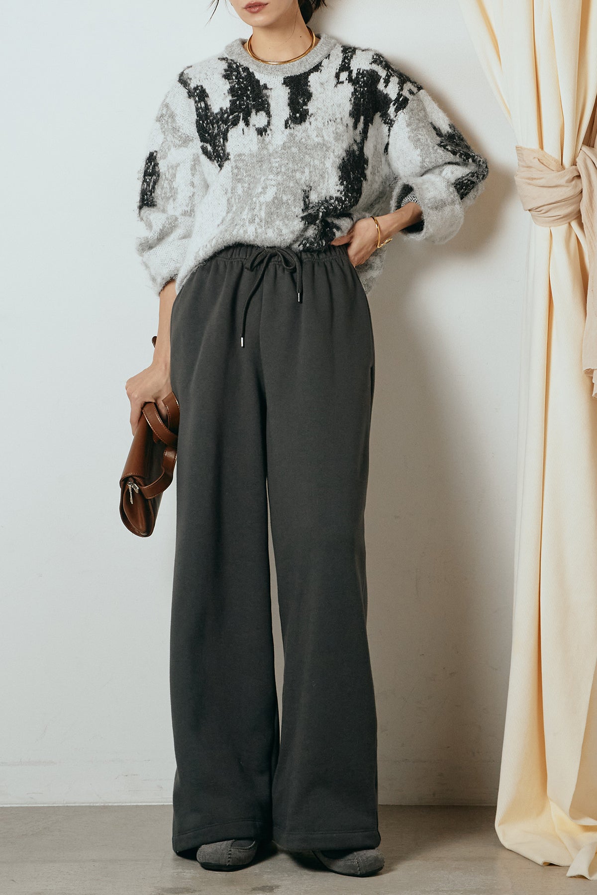 [SET]起毛ニュアンス柄ニットプルオーバー+裏起毛スウェットワイドパンツ(2set)