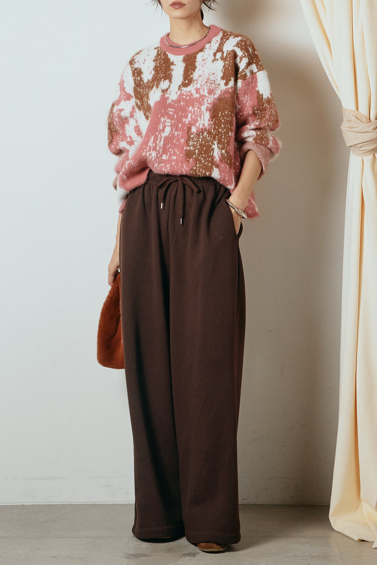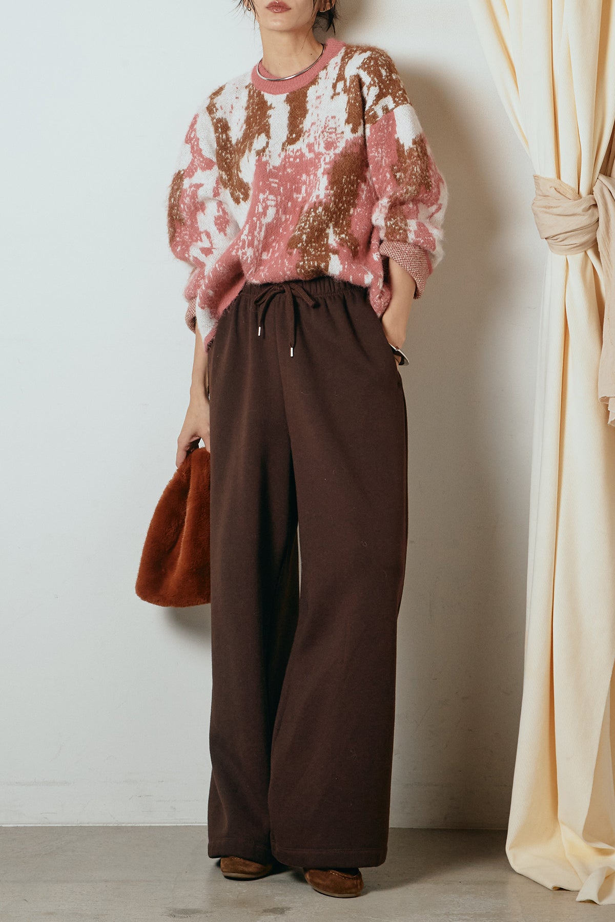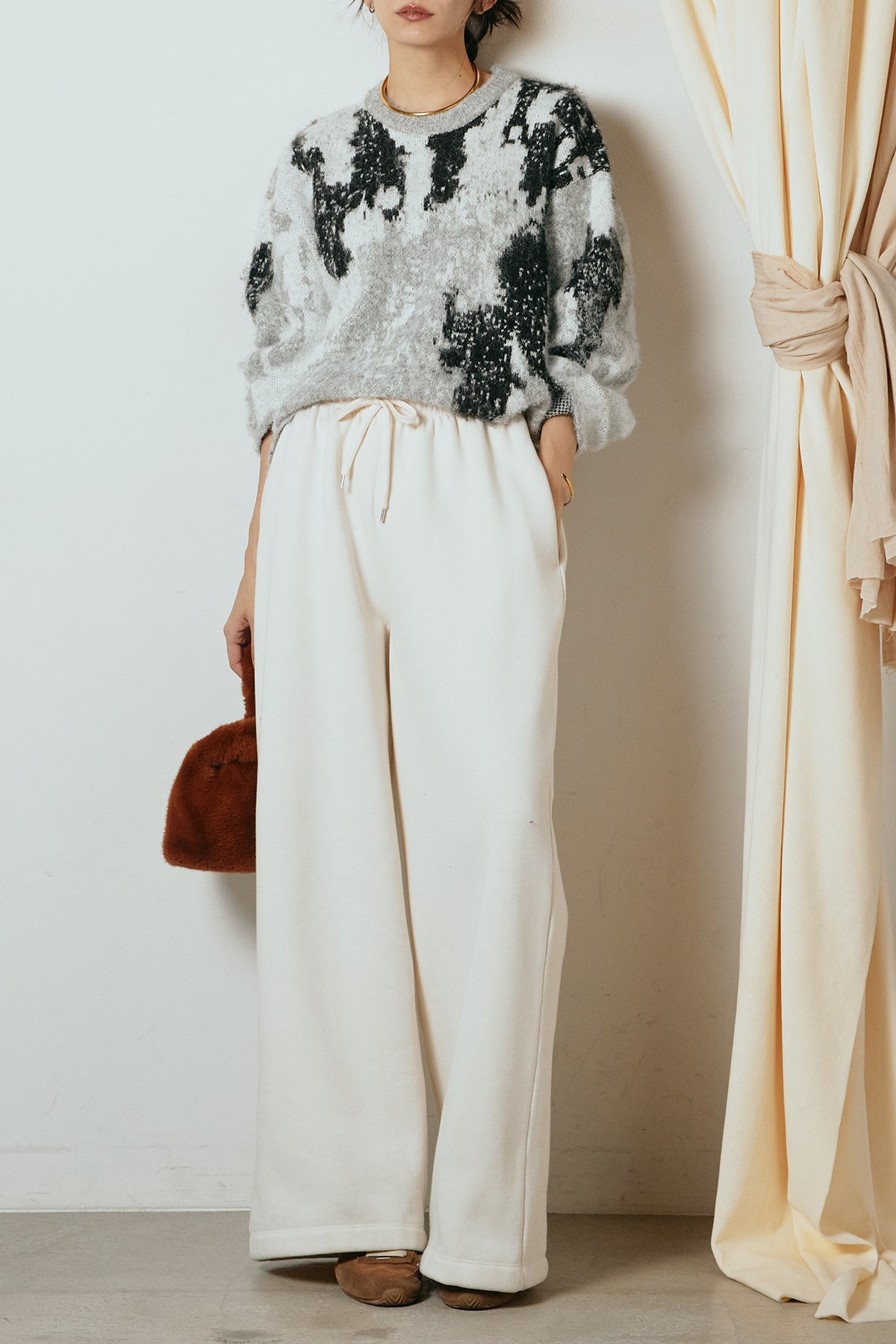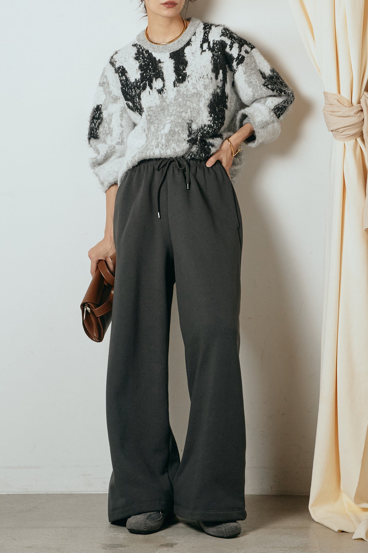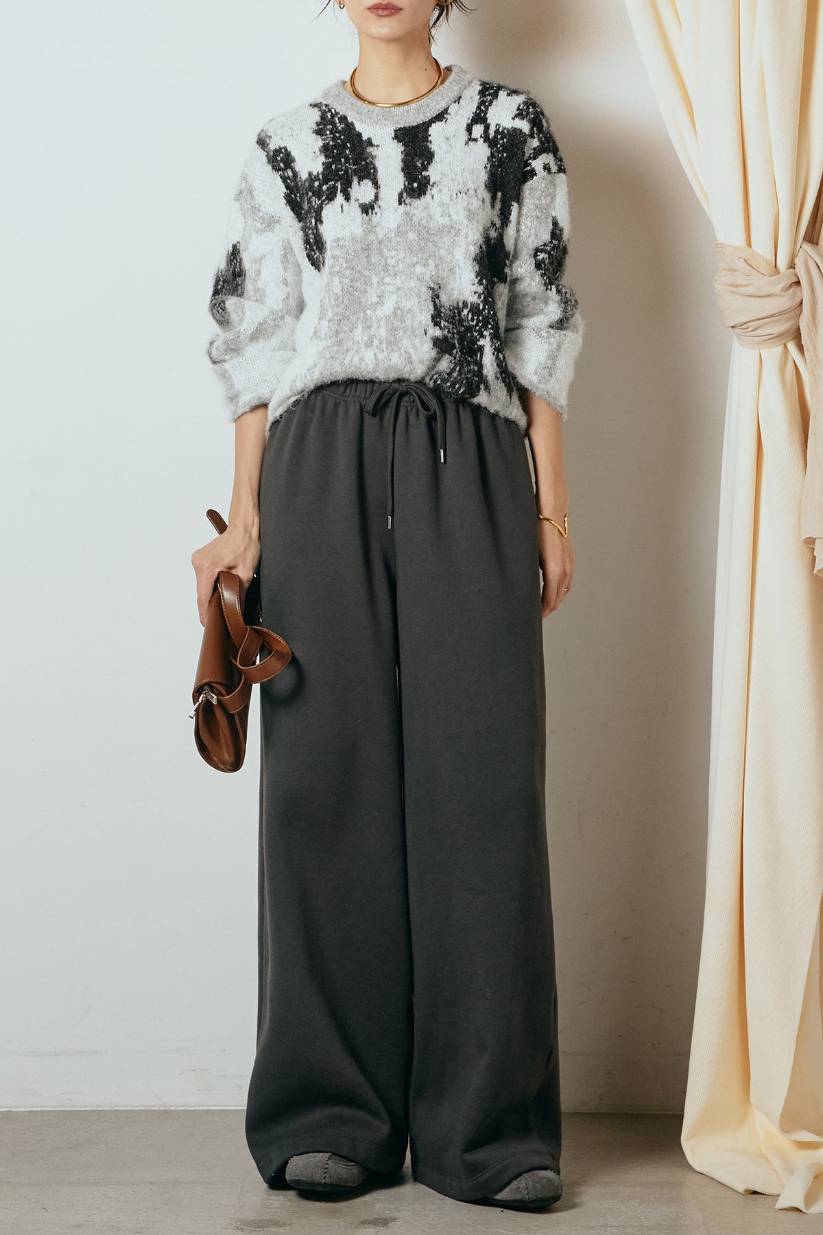 [SET]起毛ニュアンス柄ニットプルオーバー+裏起毛スウェットワイドパンツ(2set)