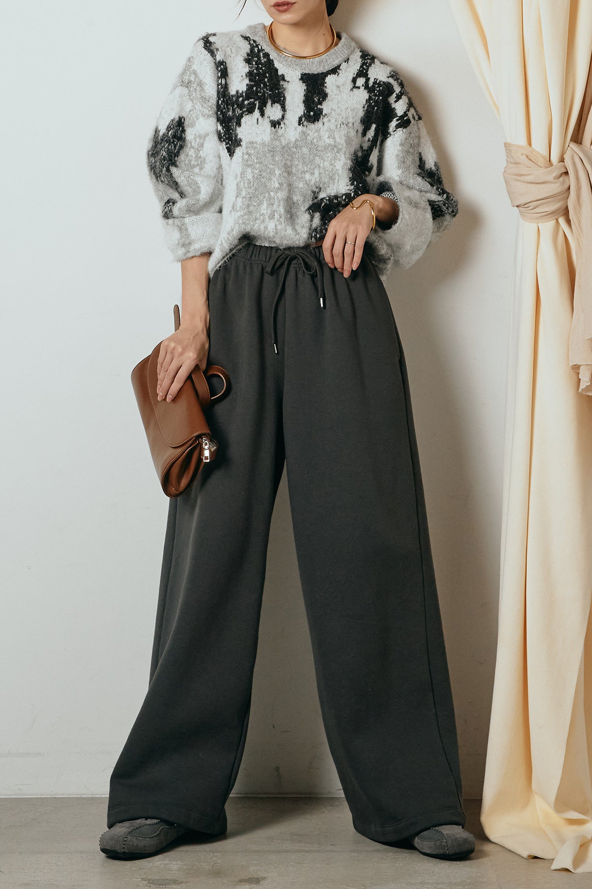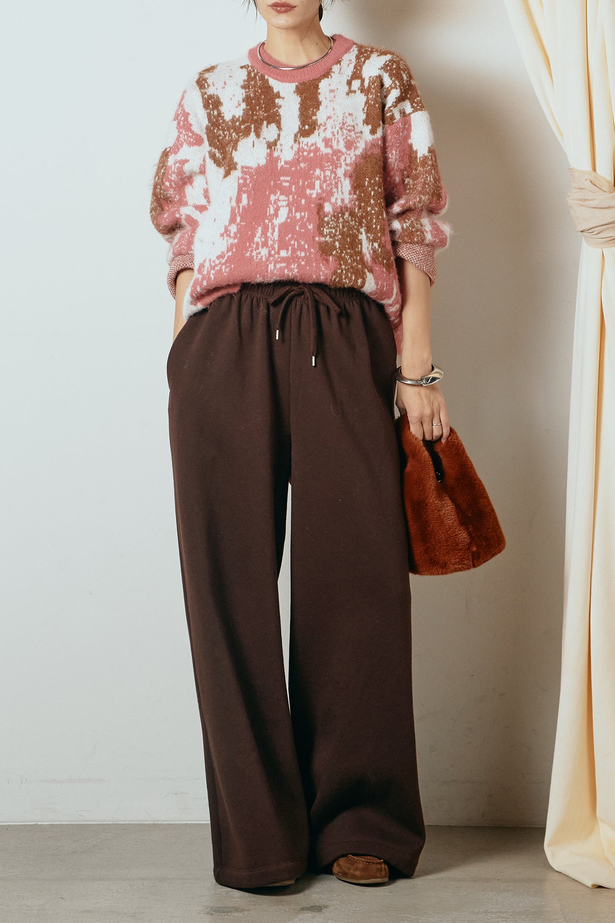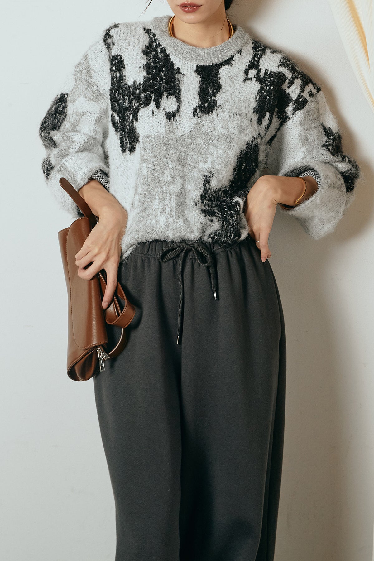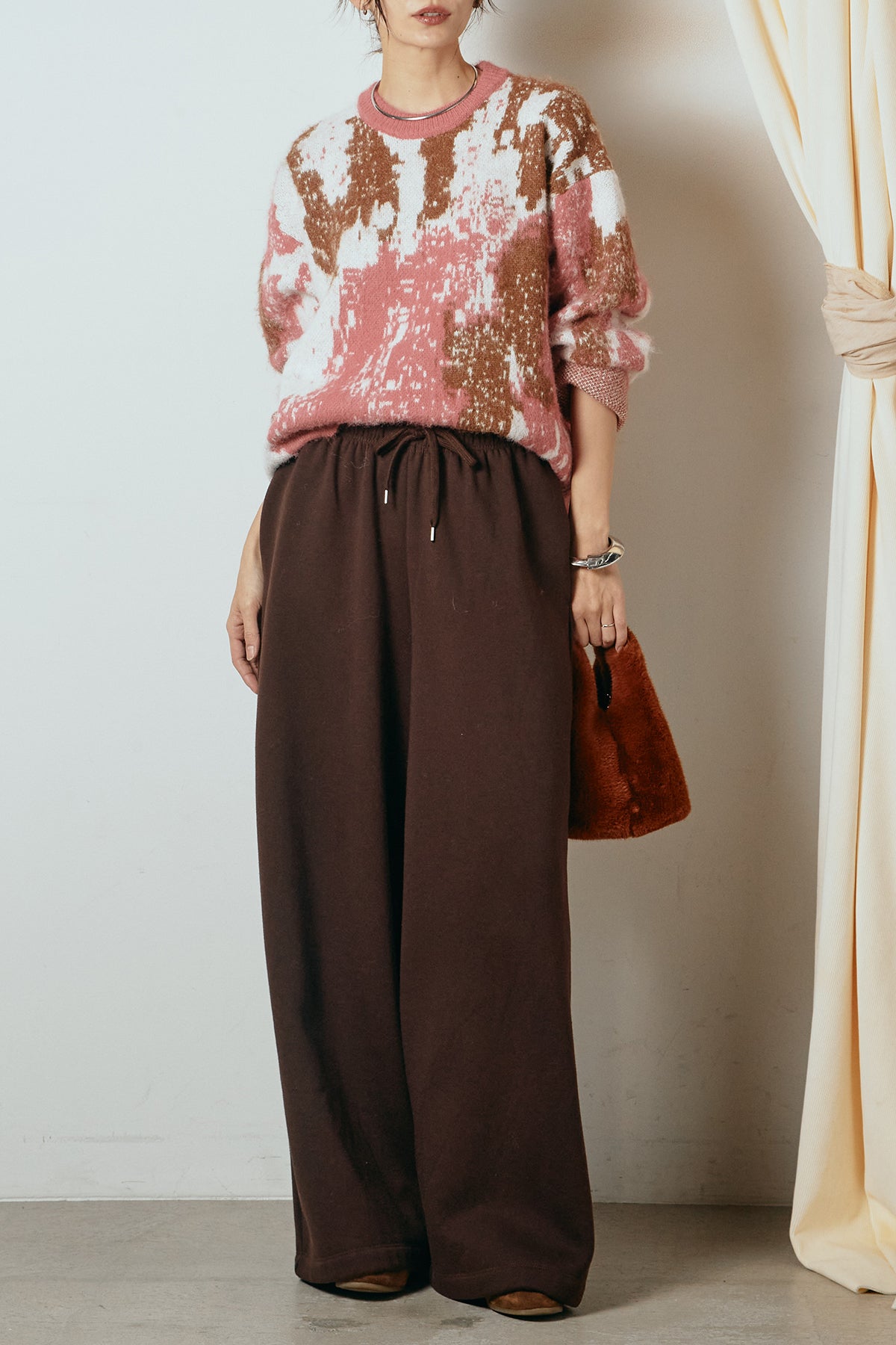 [SET]起毛ニュアンス柄ニットプルオーバー+裏起毛スウェットワイドパンツ(2set)