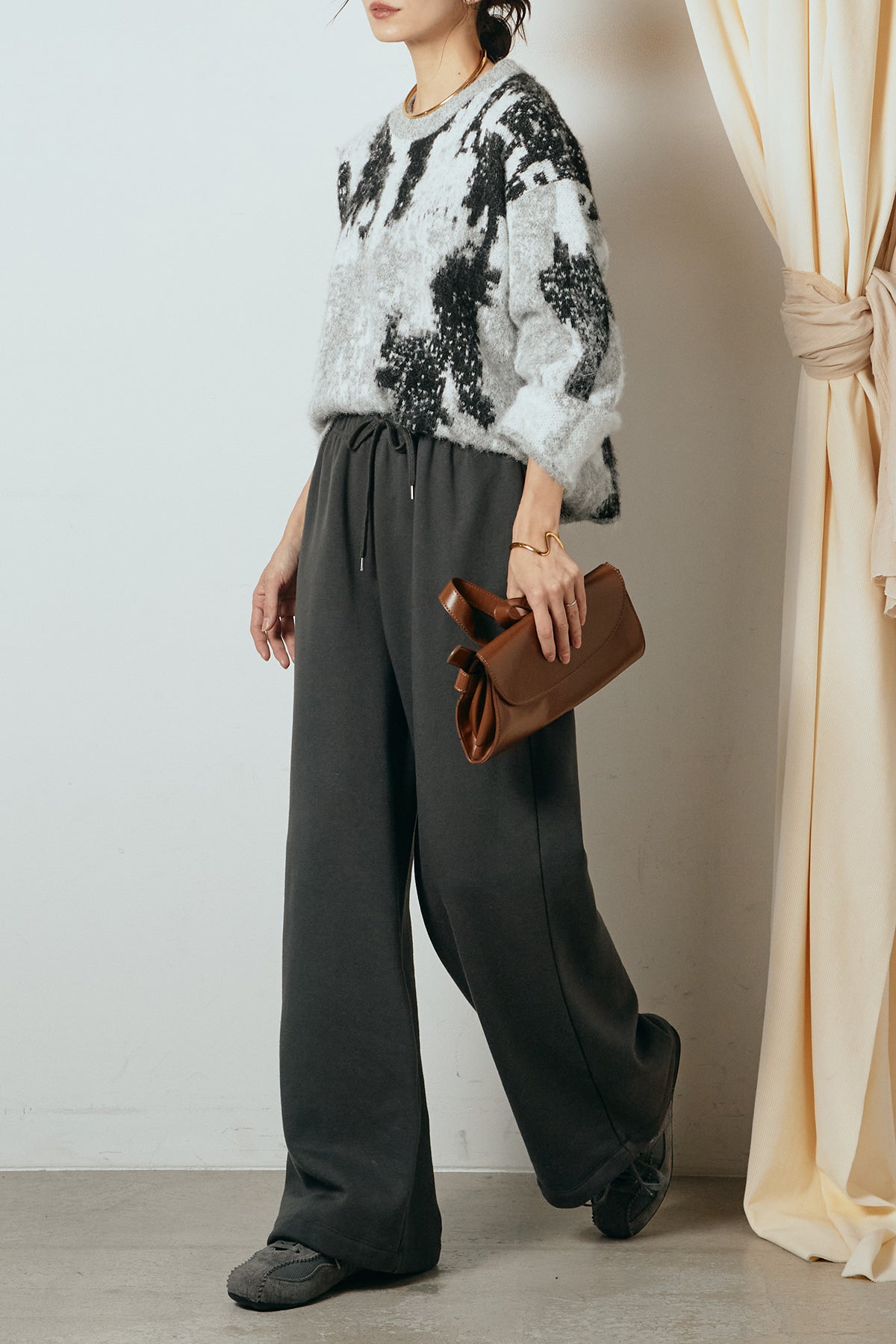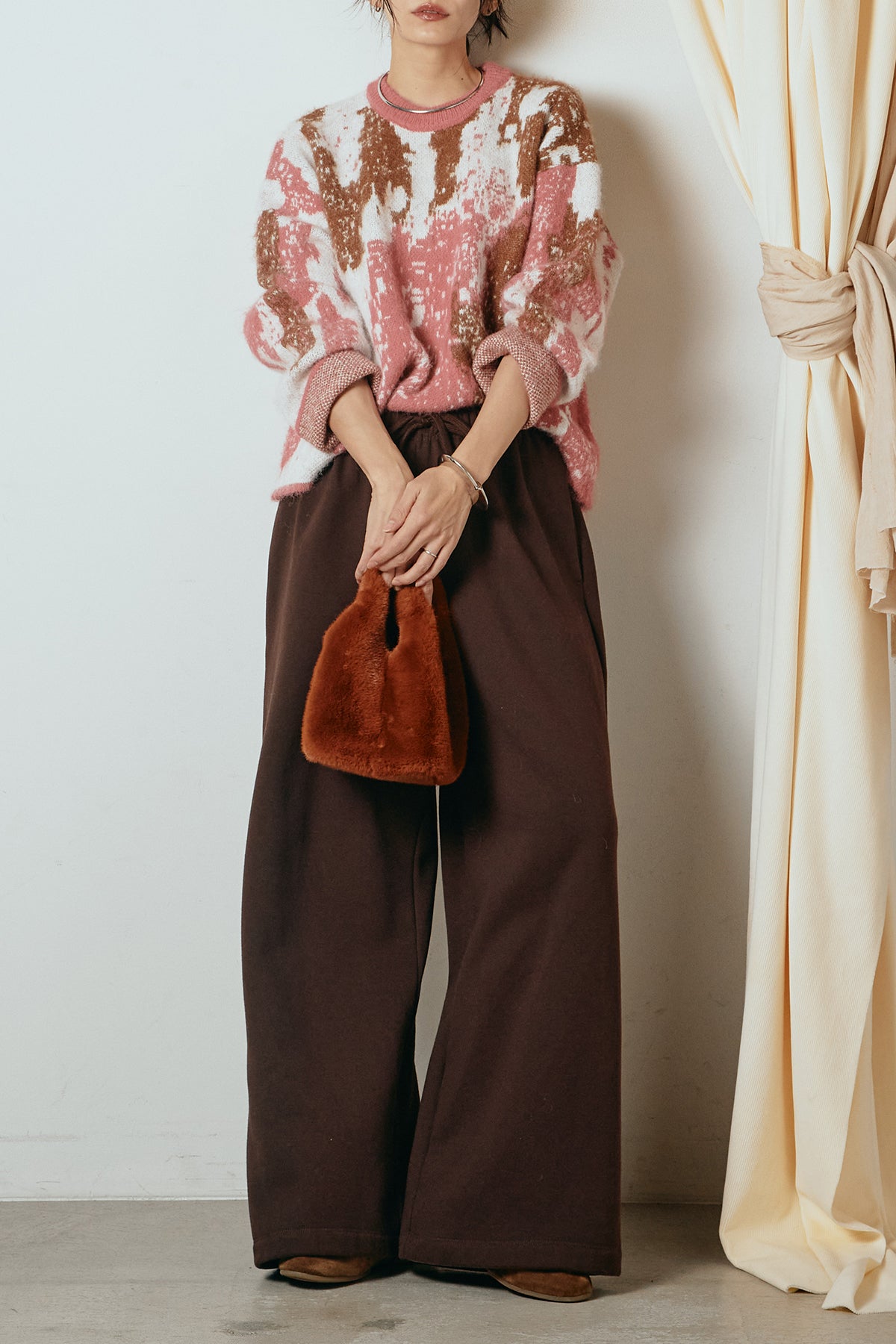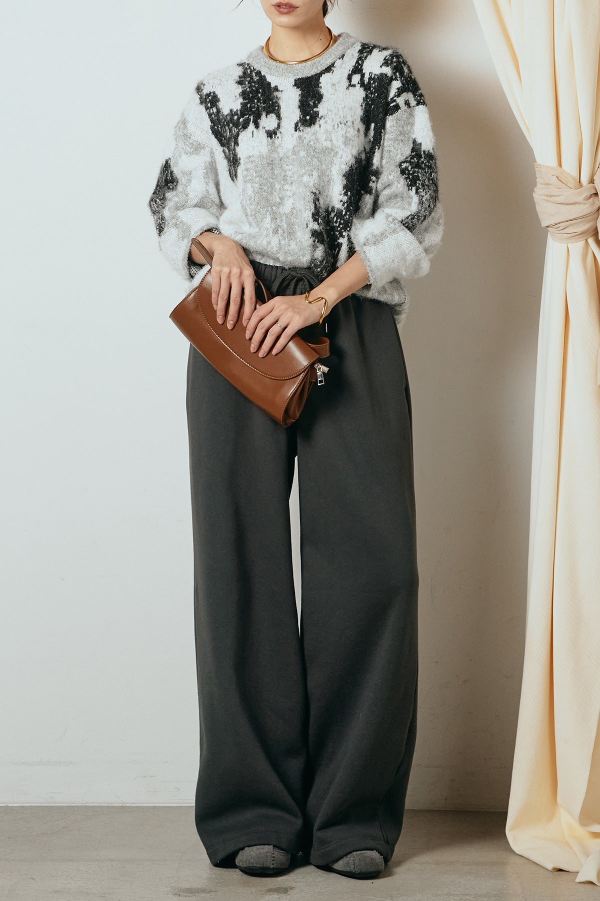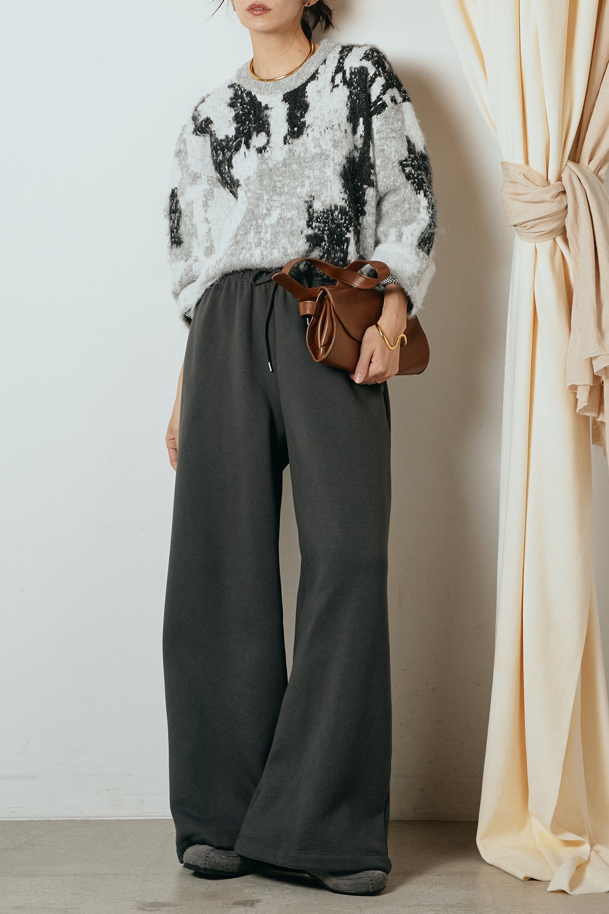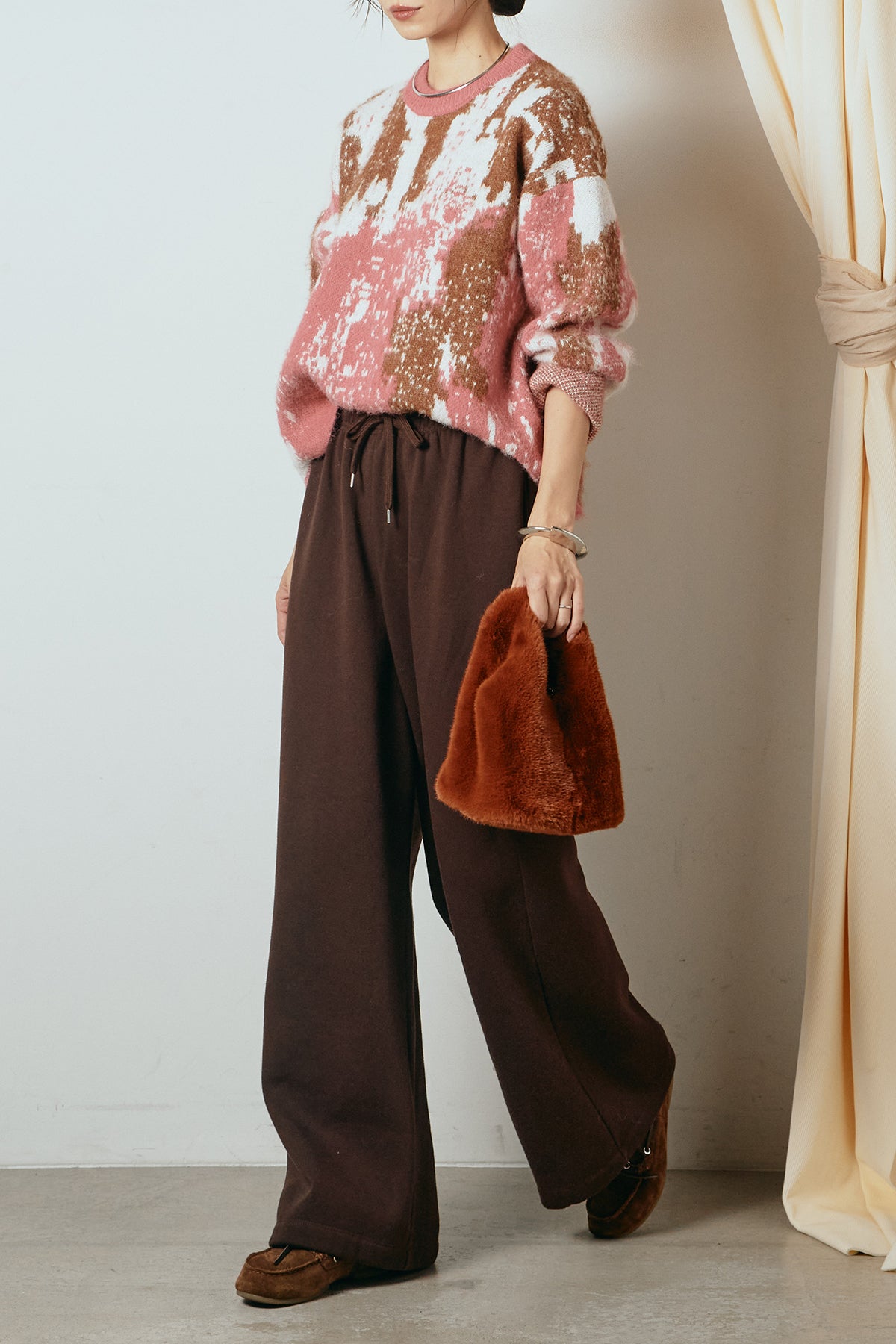 [SET]起毛ニュアンス柄ニットプルオーバー+裏起毛スウェットワイドパンツ(2set)