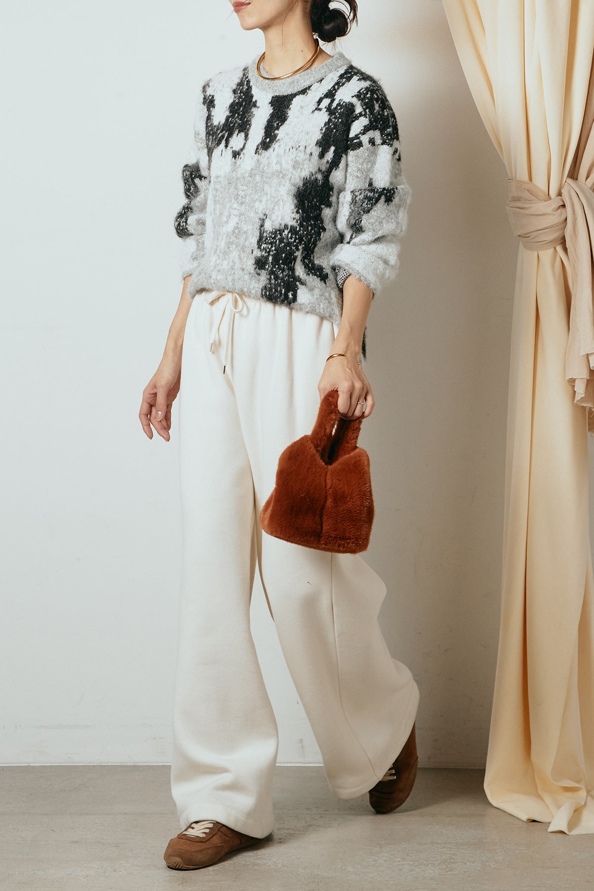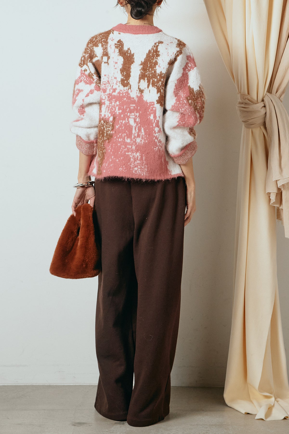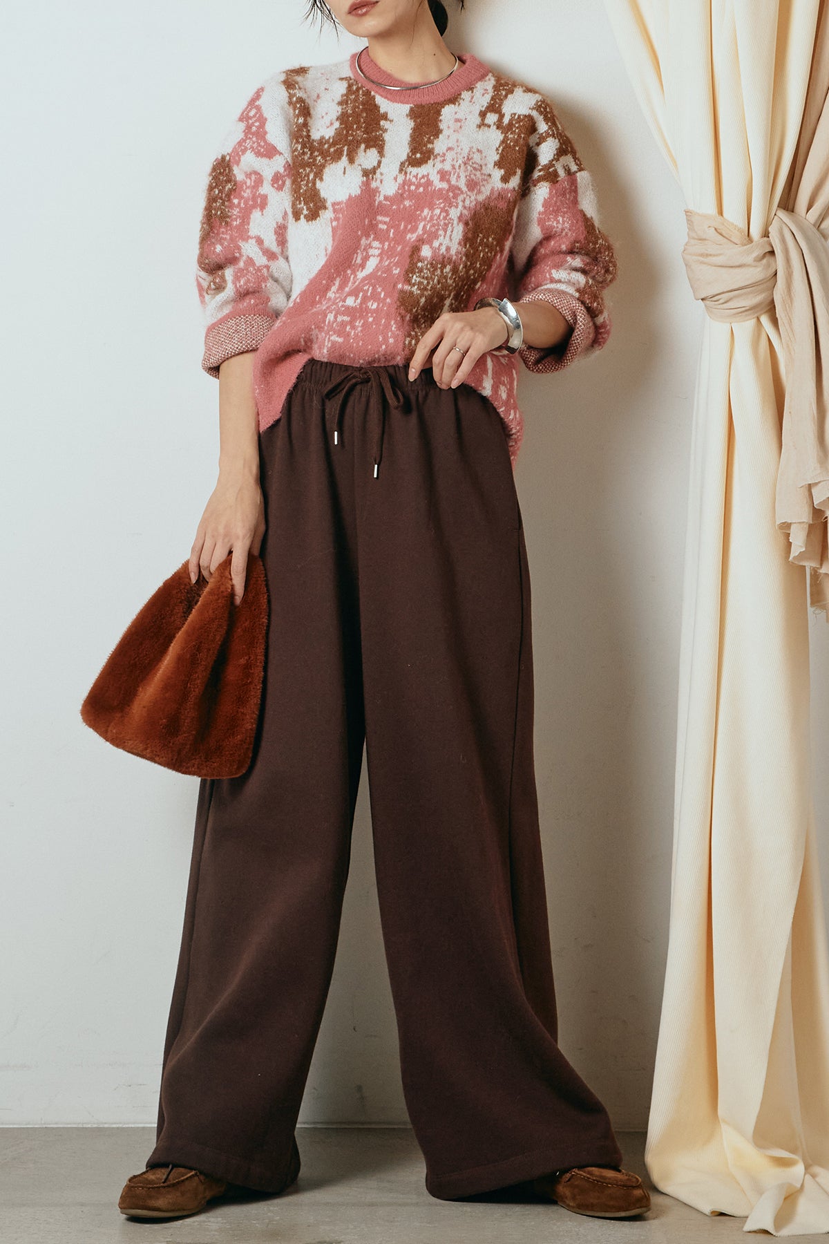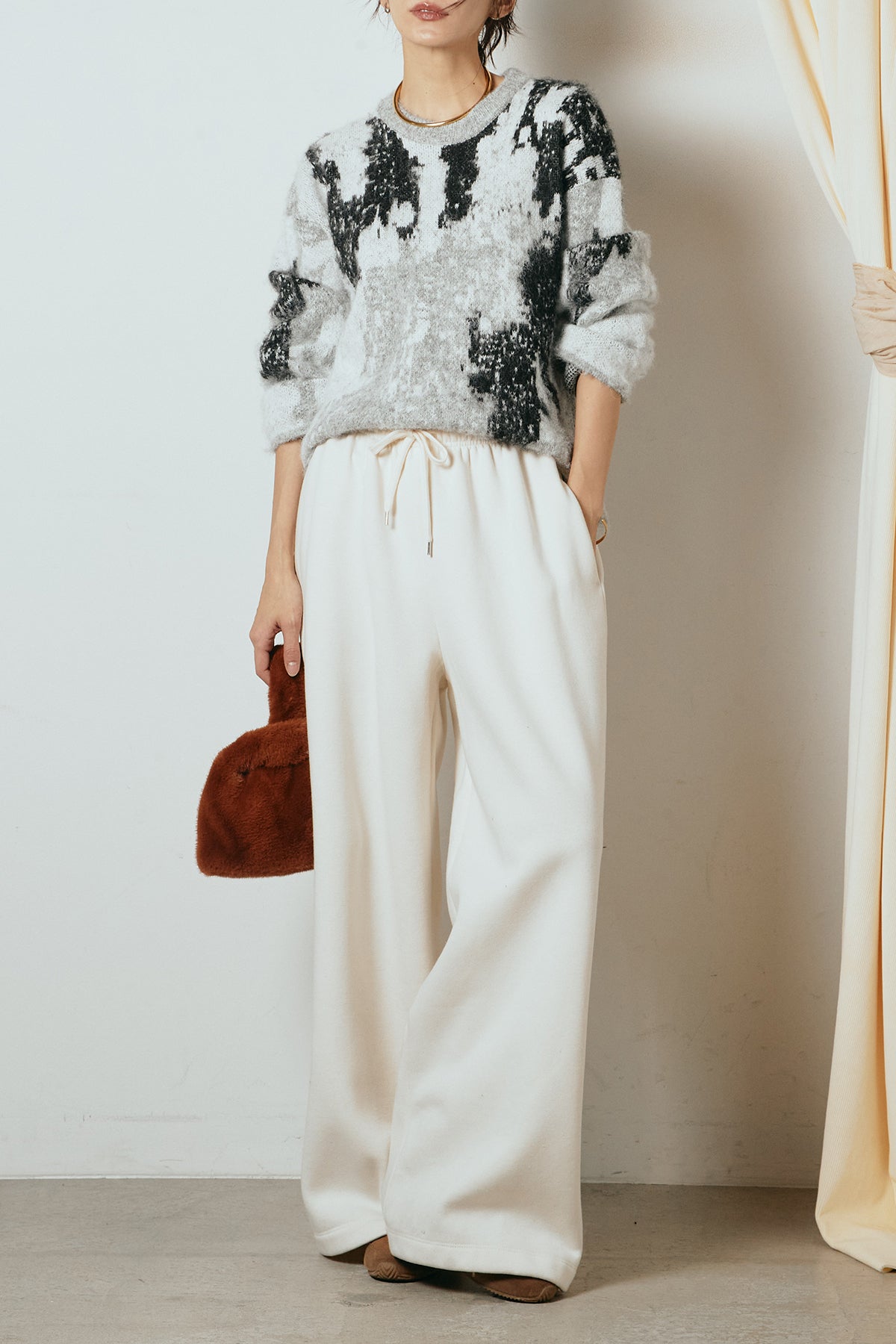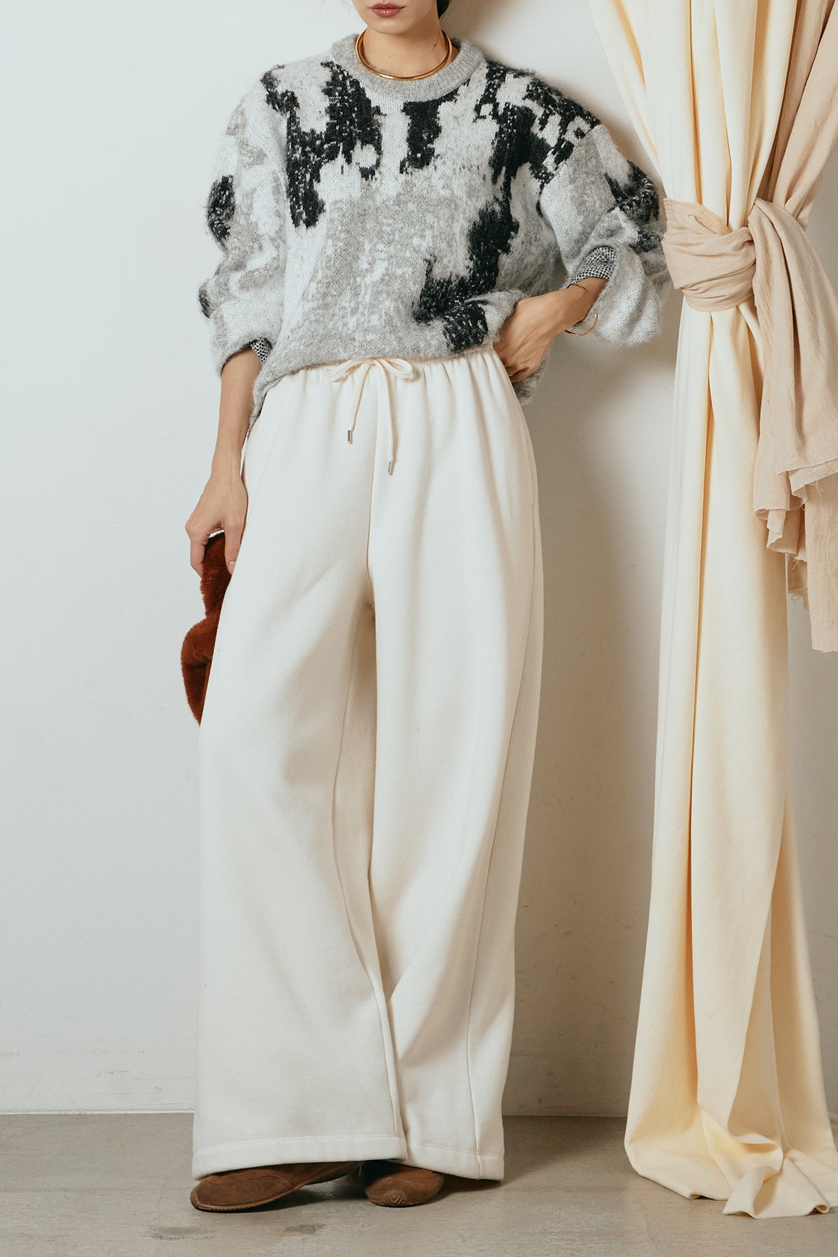 [SET]起毛ニュアンス柄ニットプルオーバー+裏起毛スウェットワイドパンツ(2set)