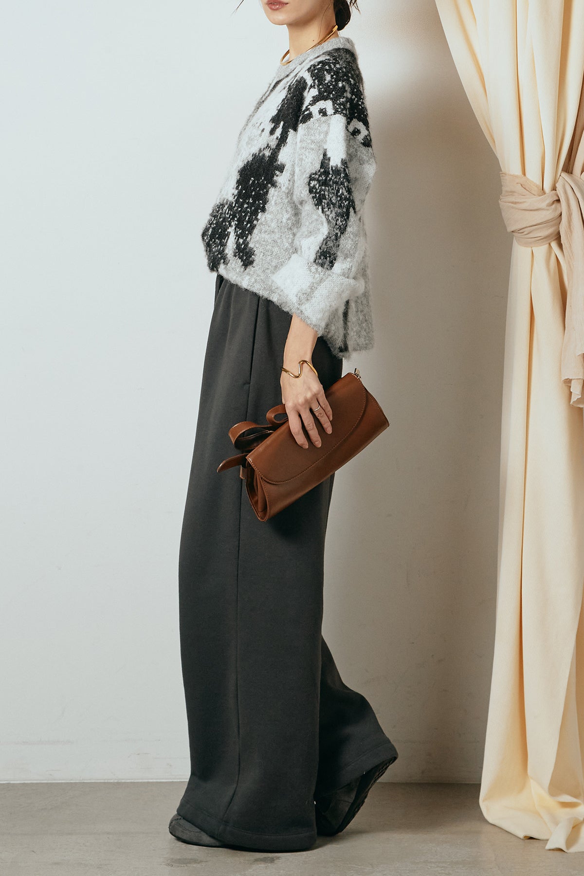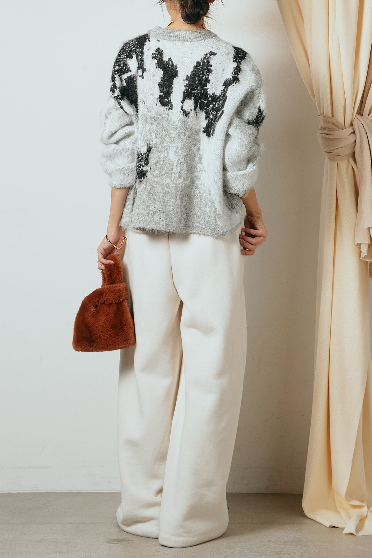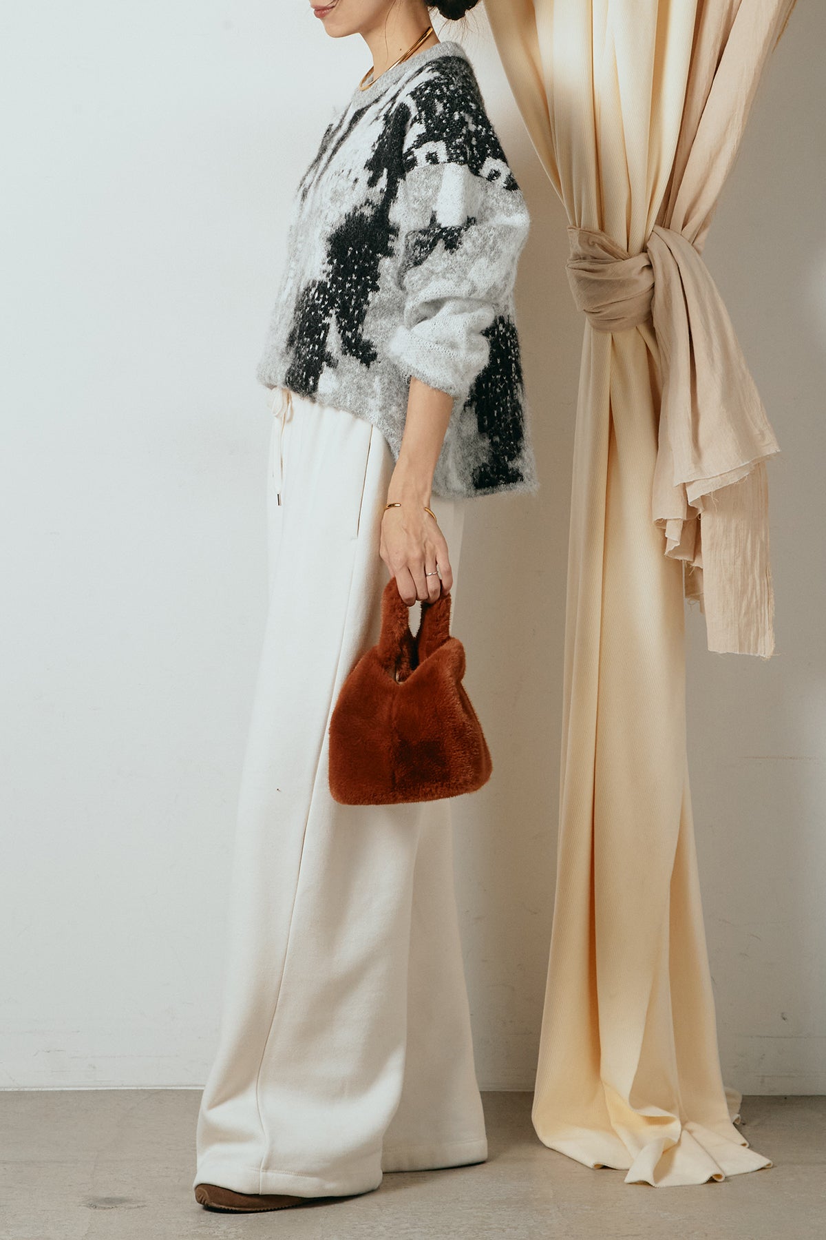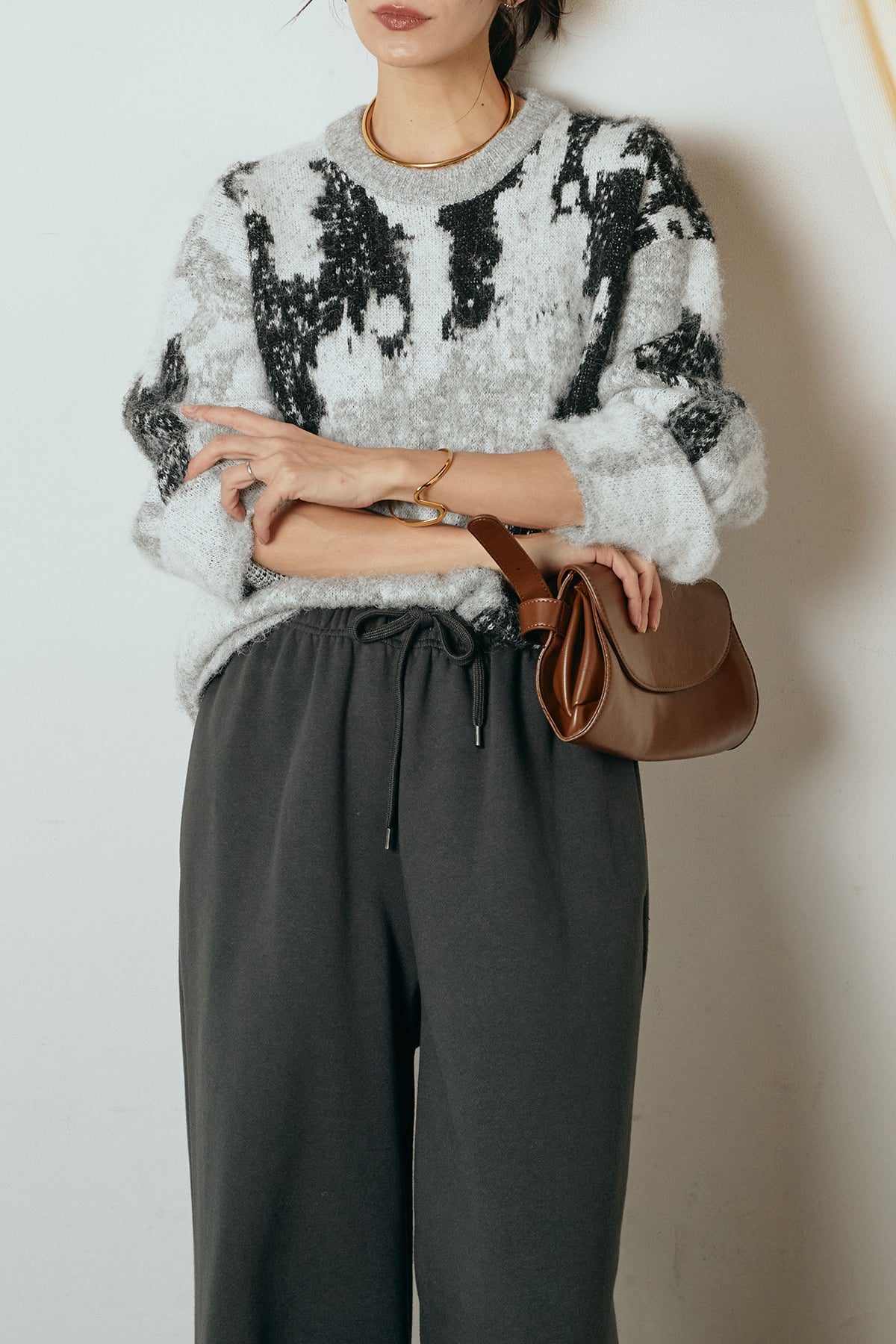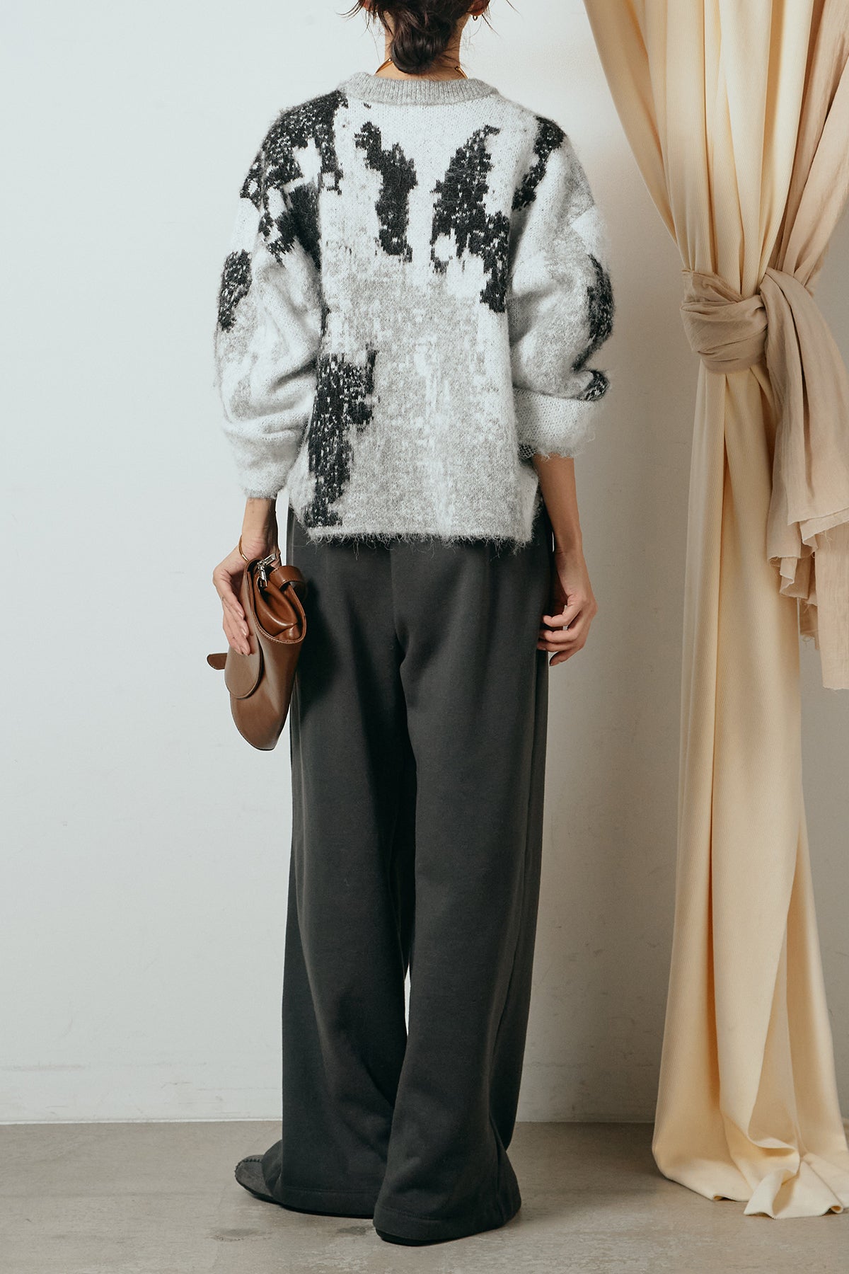 [SET]起毛ニュアンス柄ニットプルオーバー+裏起毛スウェットワイドパンツ(2set)