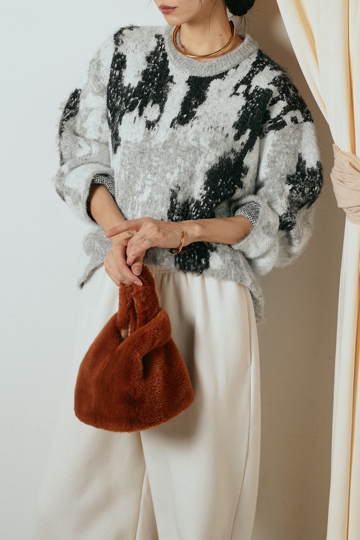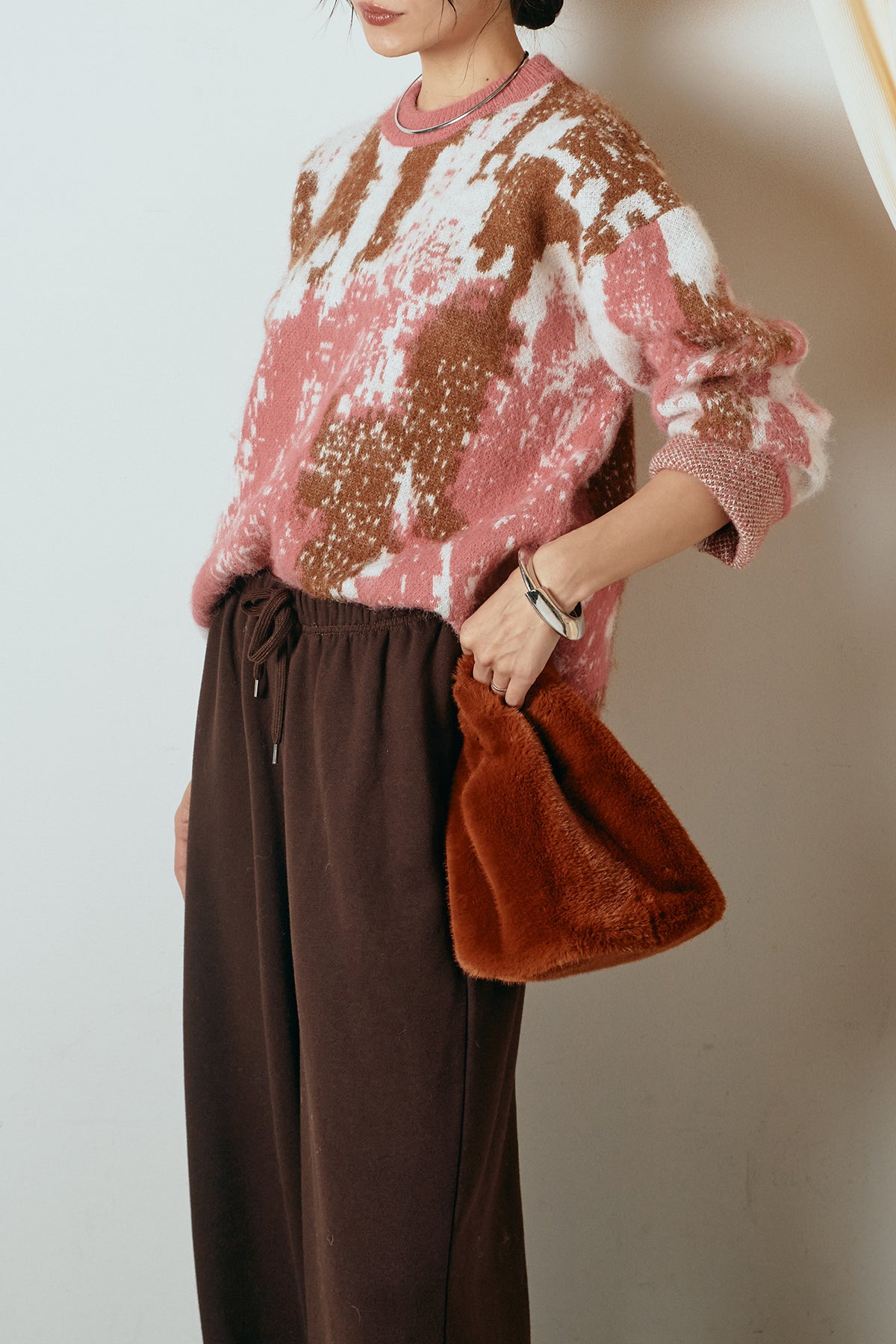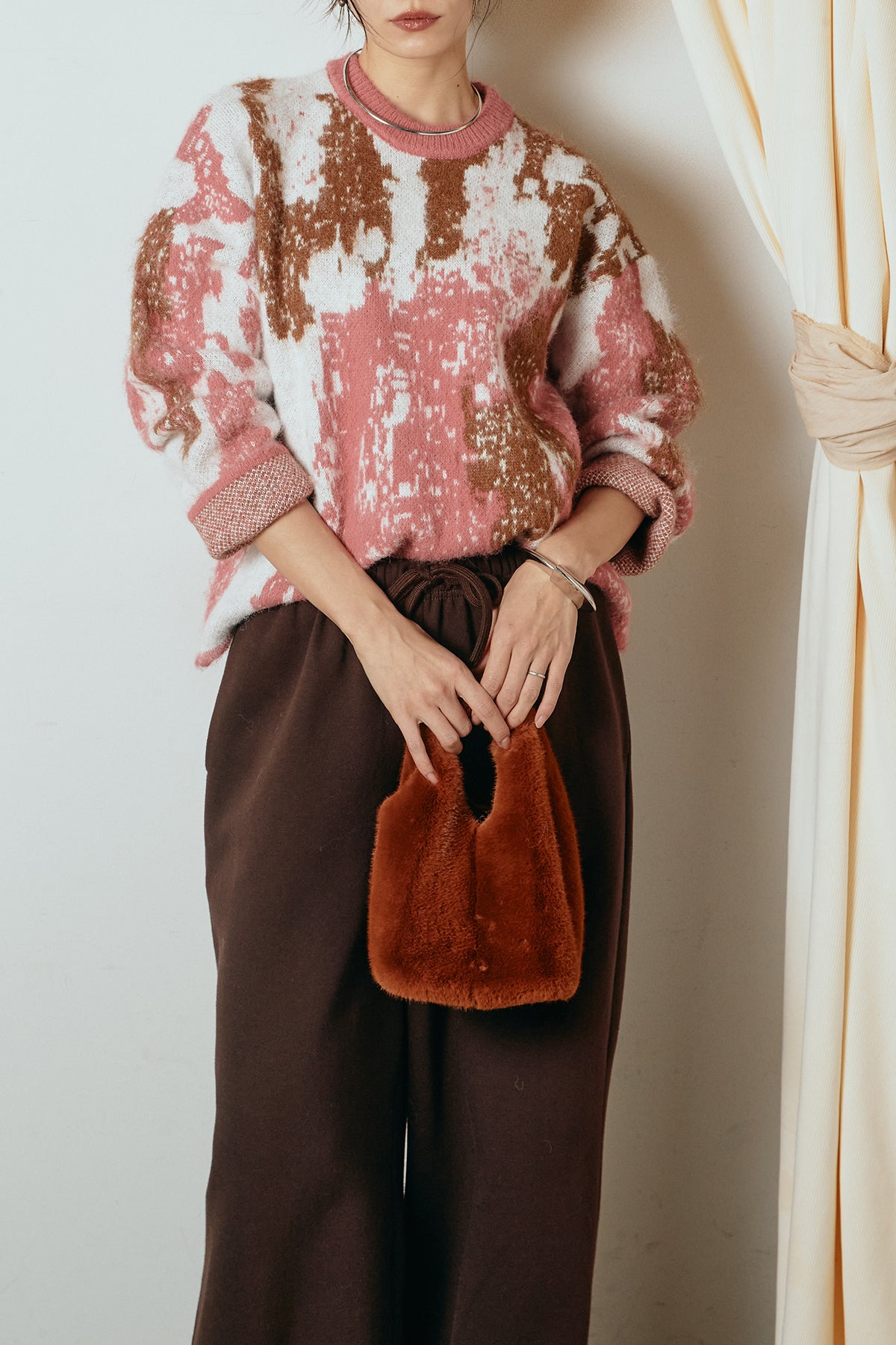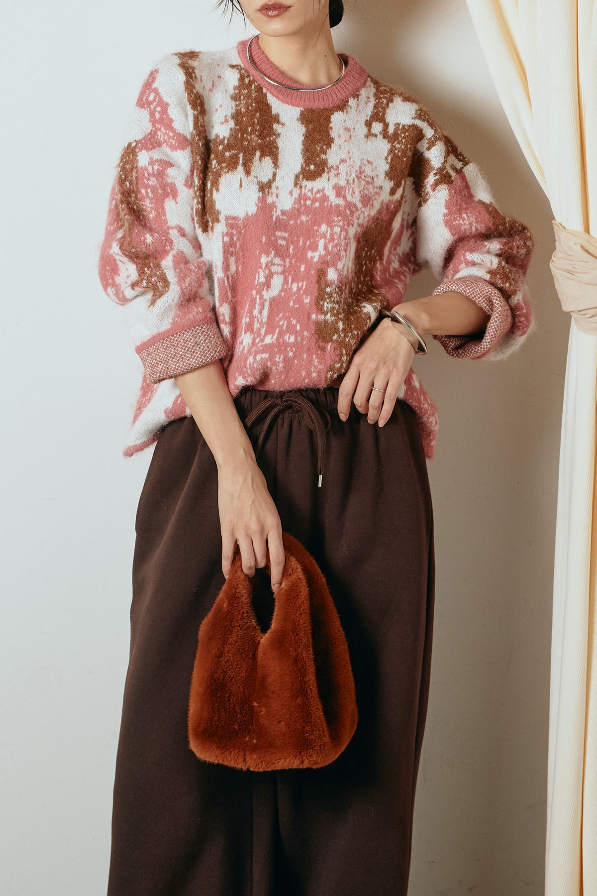 ◆ 起毛ニュアンス柄ニットプルオーバー