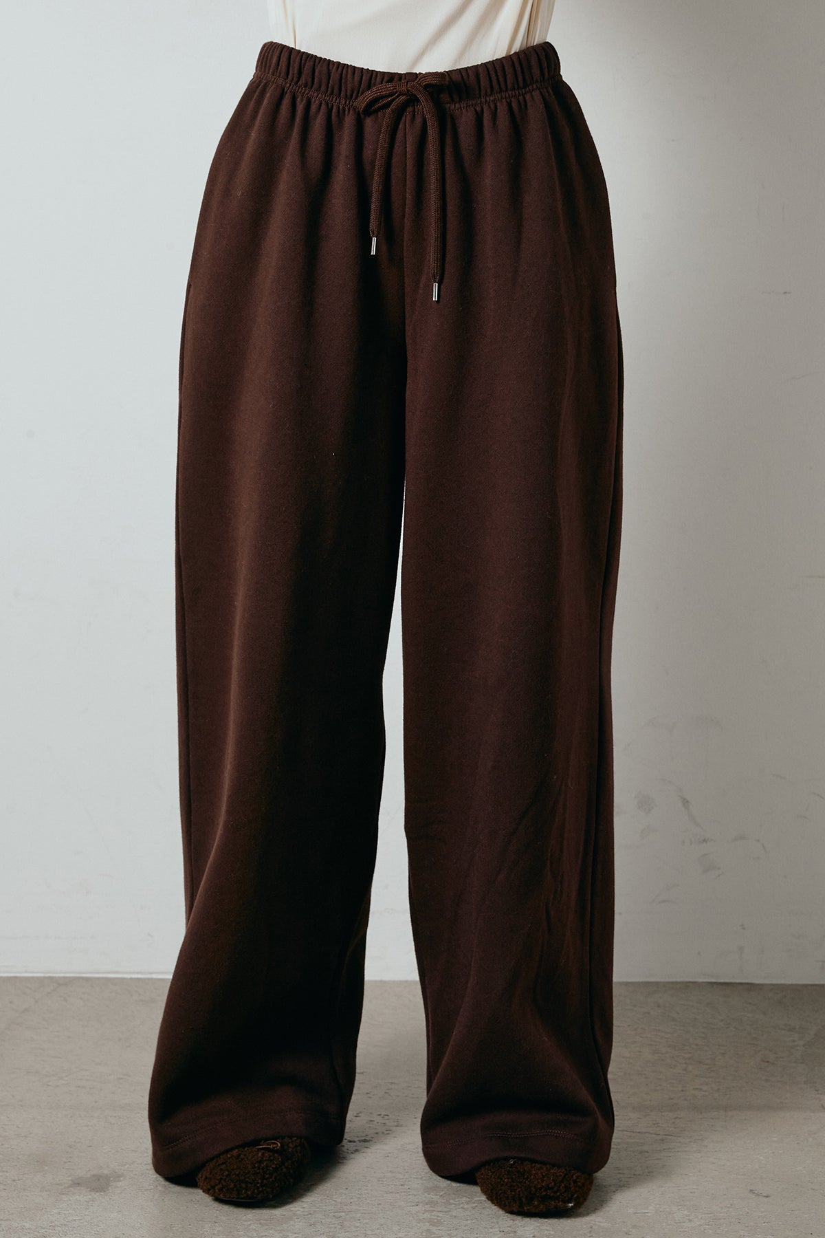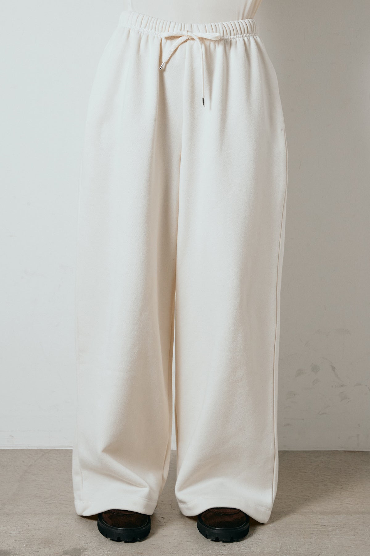 滑らかな裏起毛素材で暖かく着られるスウェットロングボトムは、ゆるやかなワイドシルエットで脚のラインを拾わずリラックス感ある穿き心地が魅力。ウエストはドロスト仕様でフィット調整ができ、ラフながら洗練された雰囲気に仕上がります。シンプルなデザインでデイリーに取り入れやすく、ニットやスウェットなど幅広いトップスと好バランスにまとまる一本です。