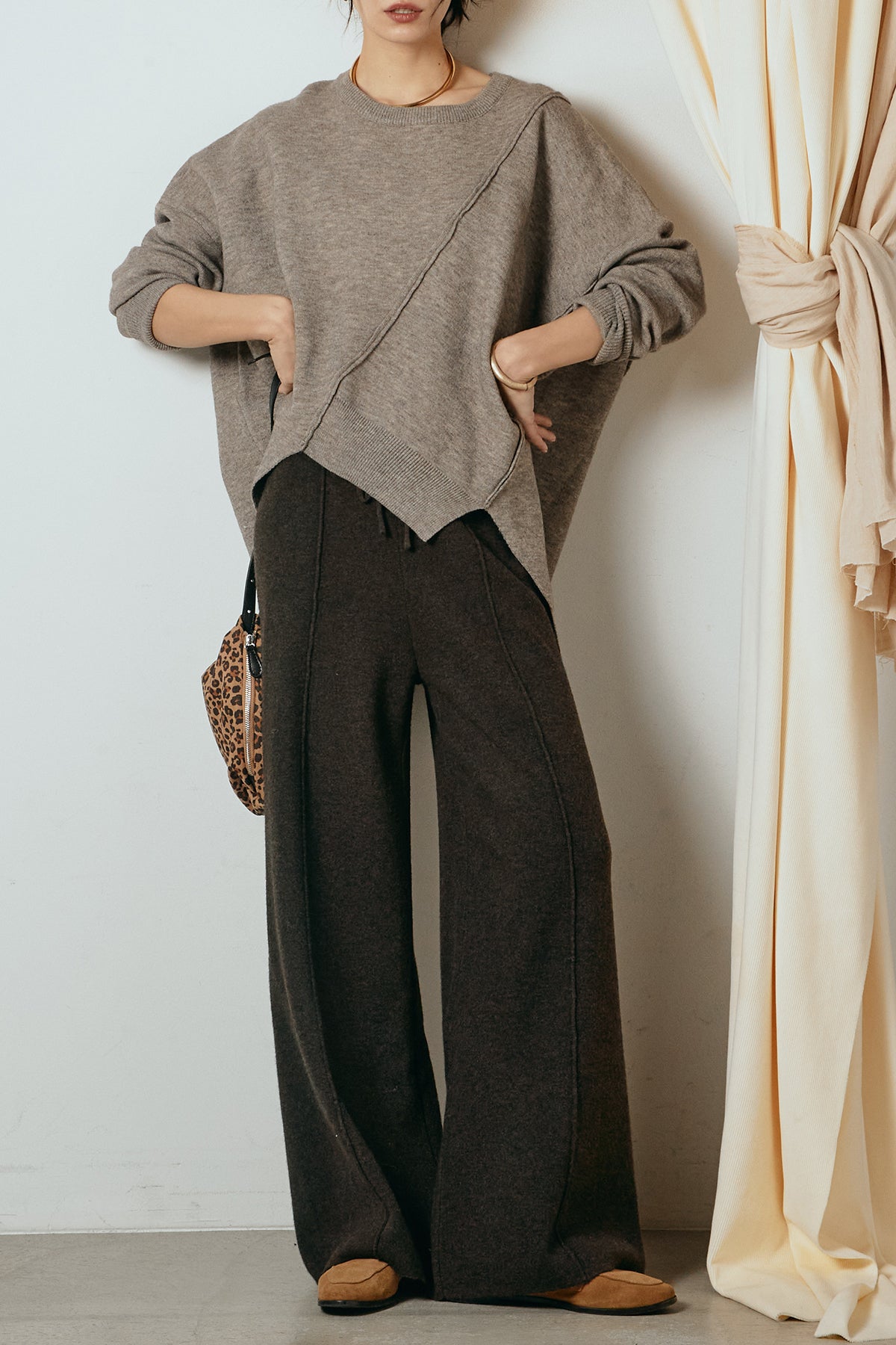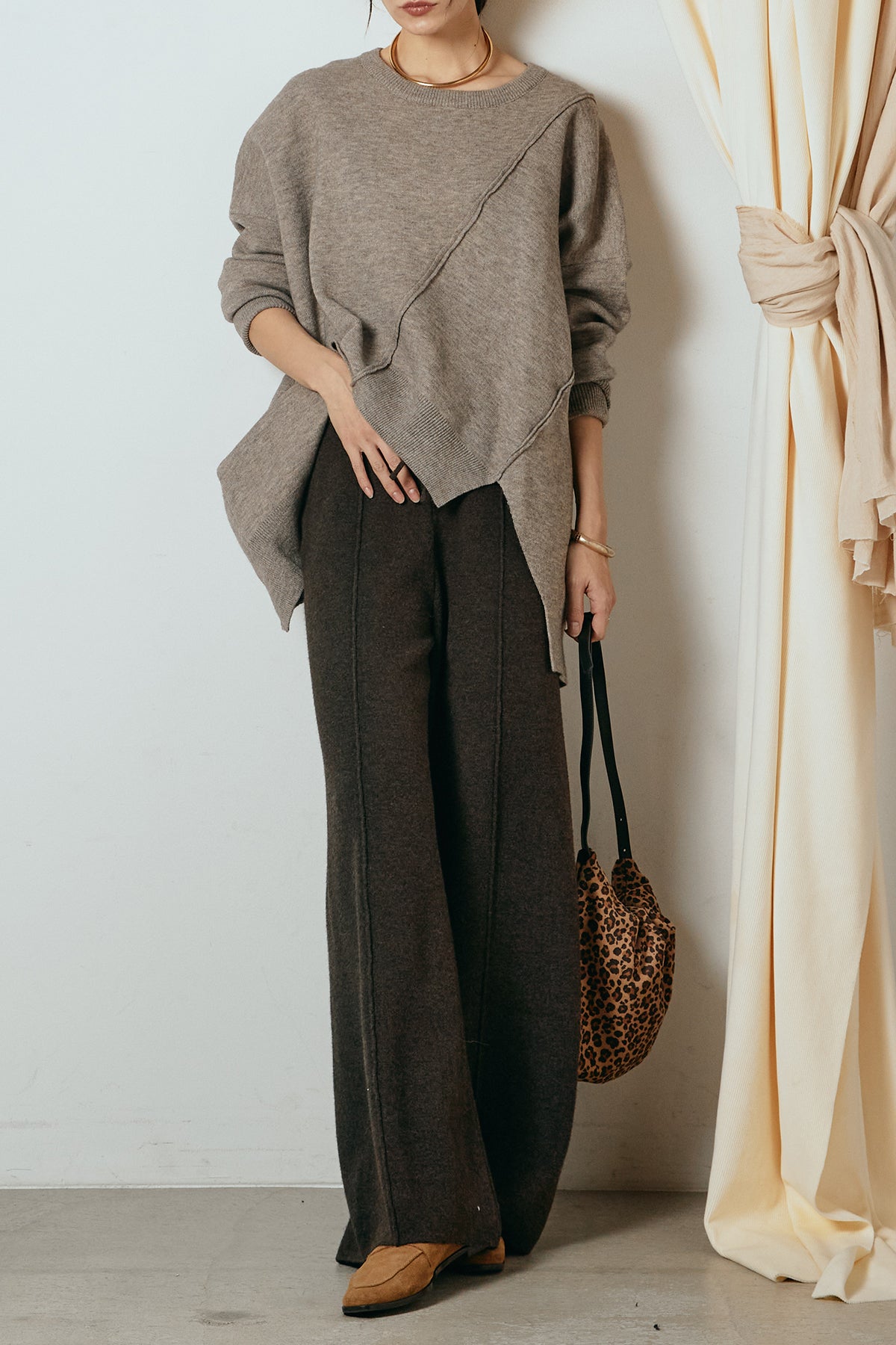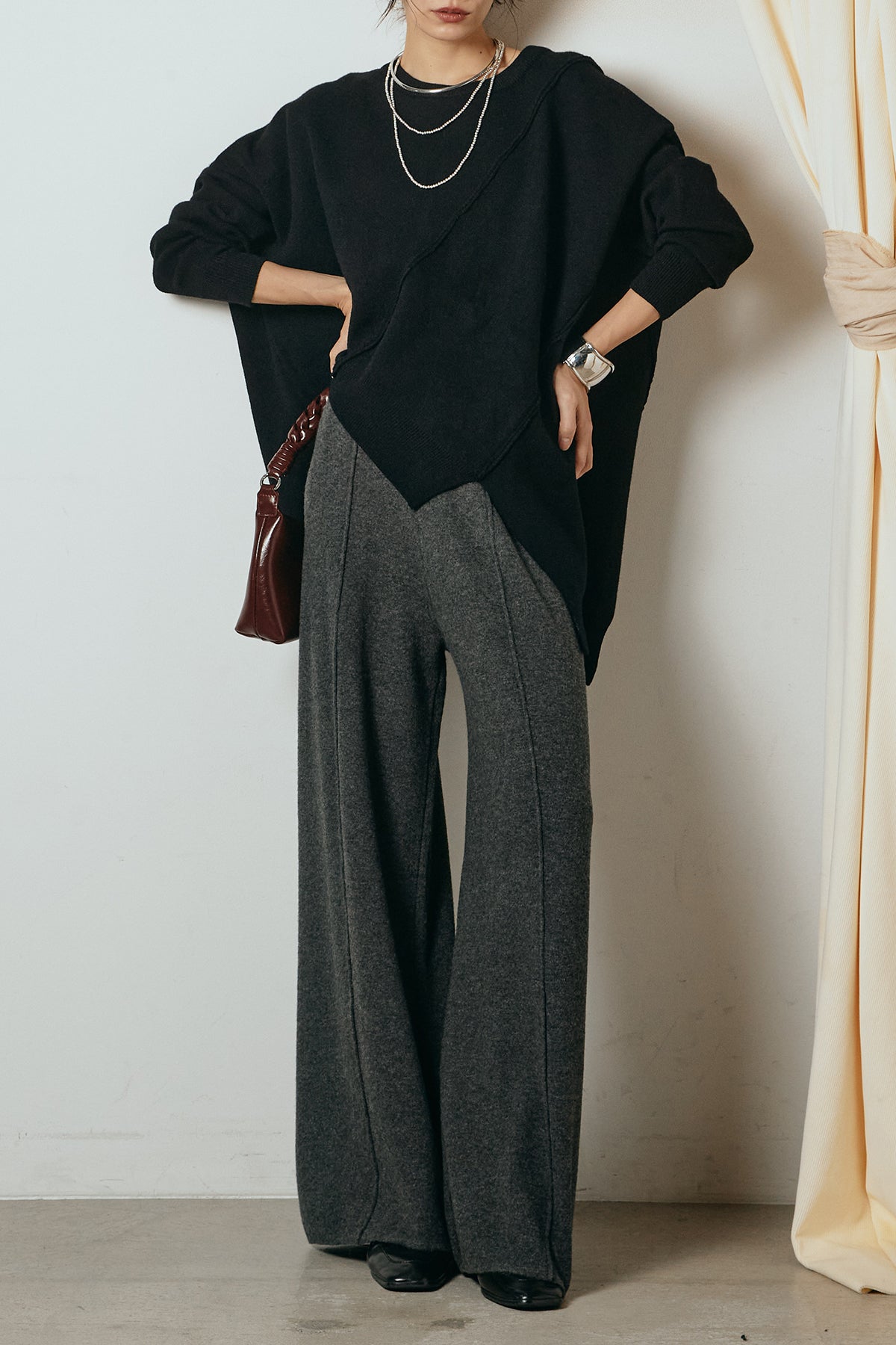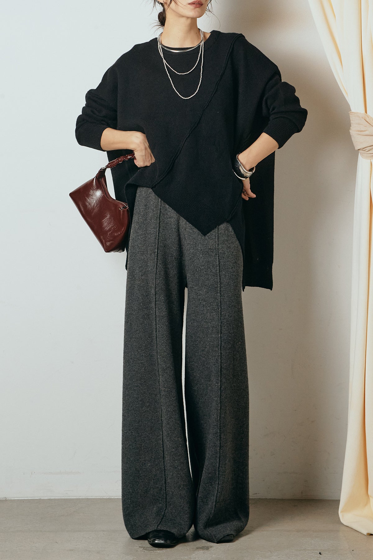 [SET]アシンメトリーデザインニットトップス+センターラインニットパンツ(2set)