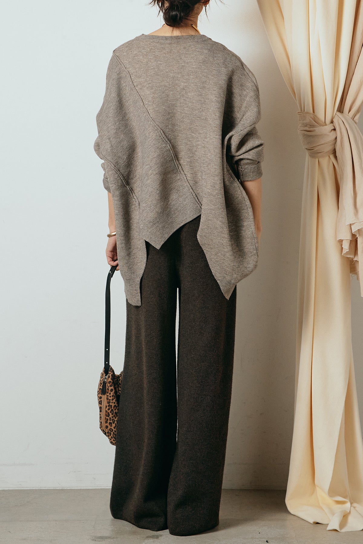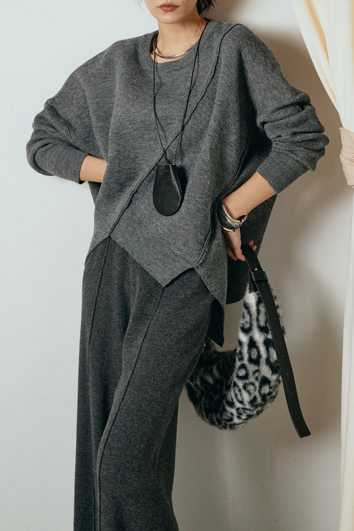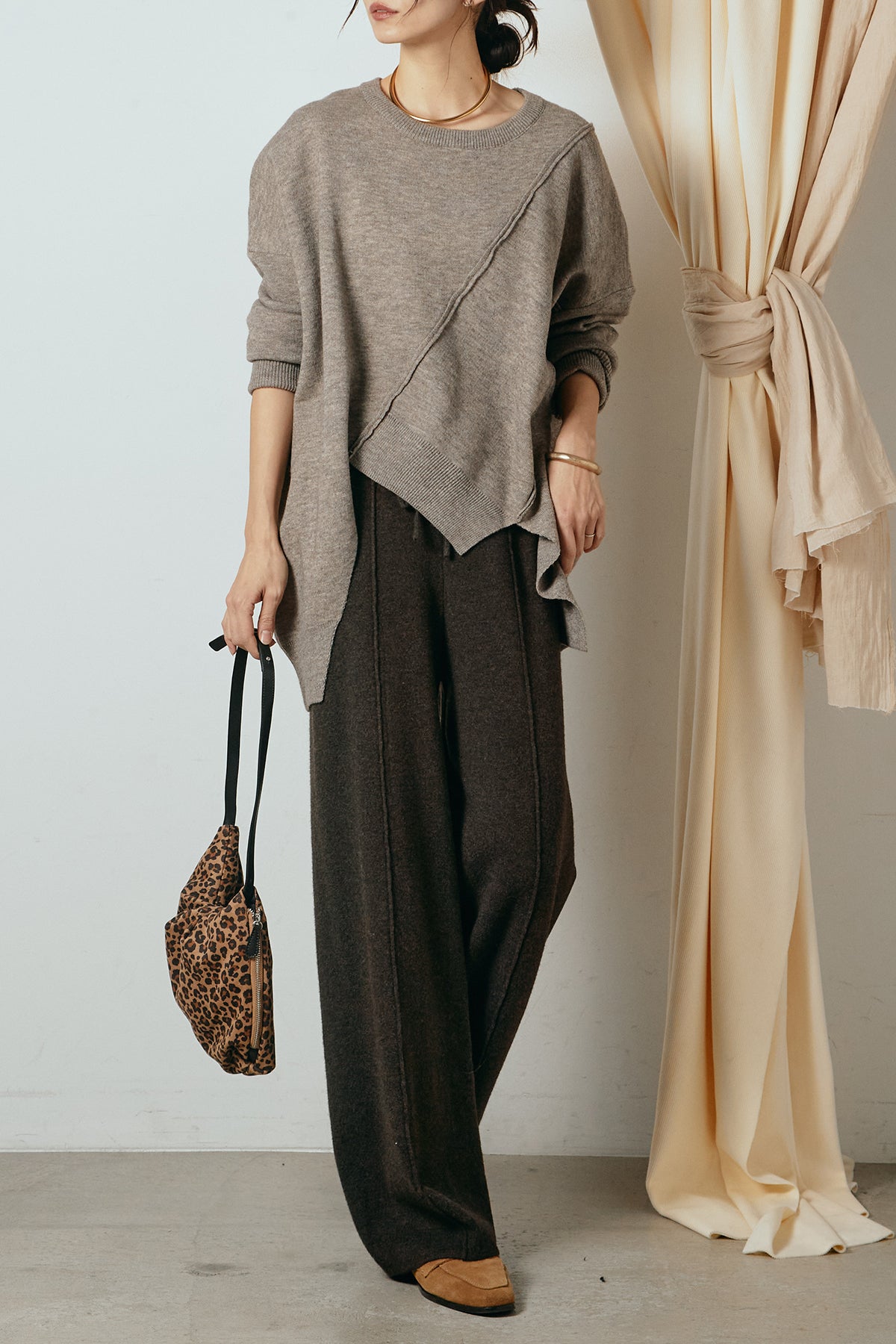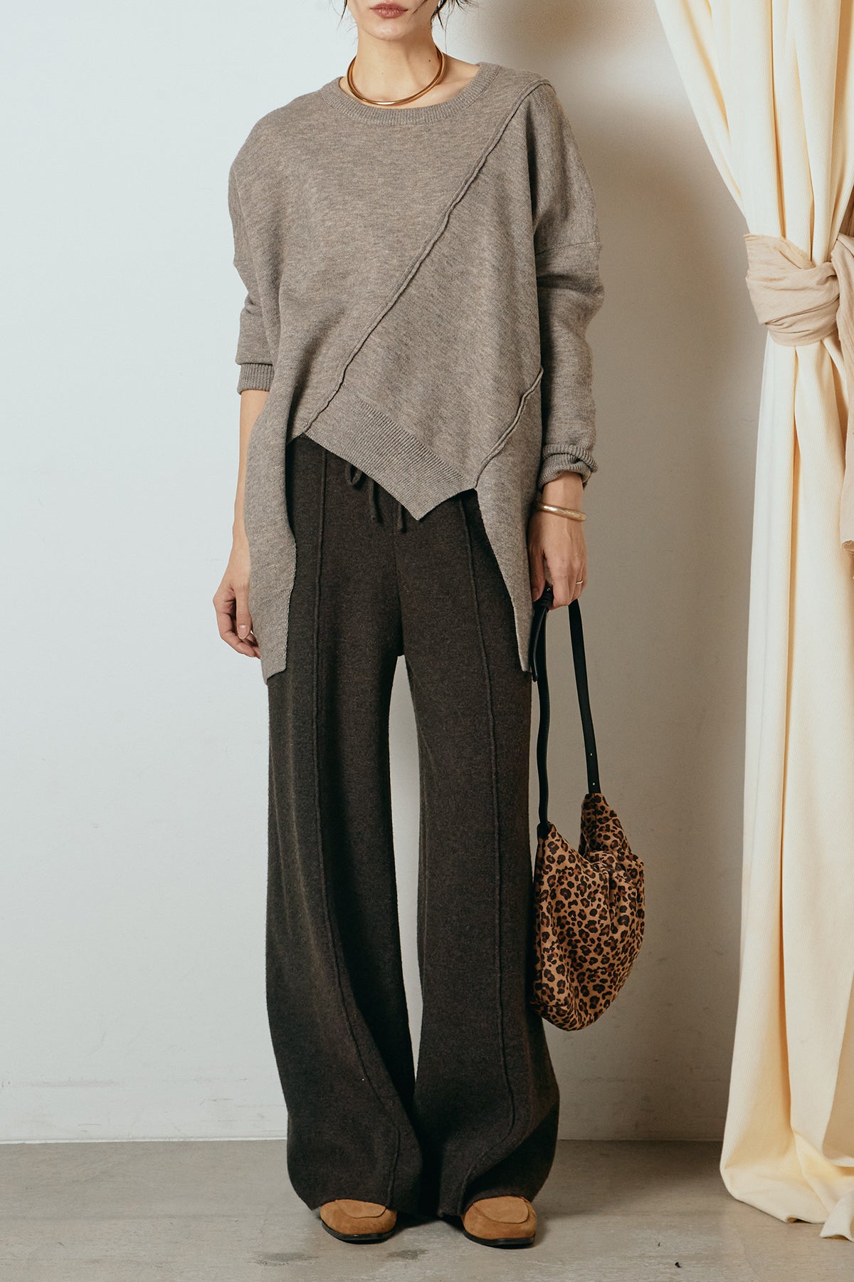 [SET]アシンメトリーデザインニットトップス+センターラインニットパンツ(2set)