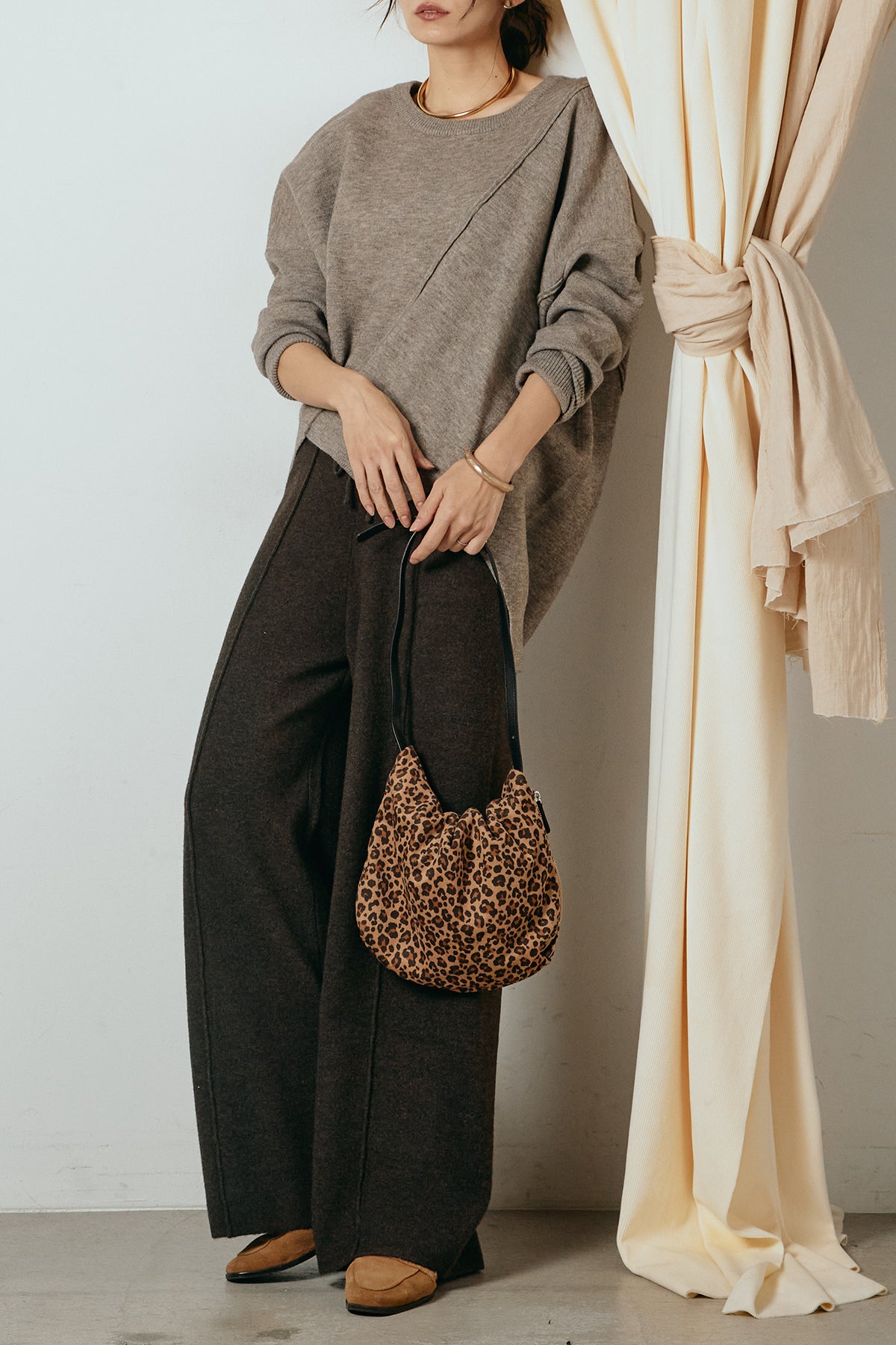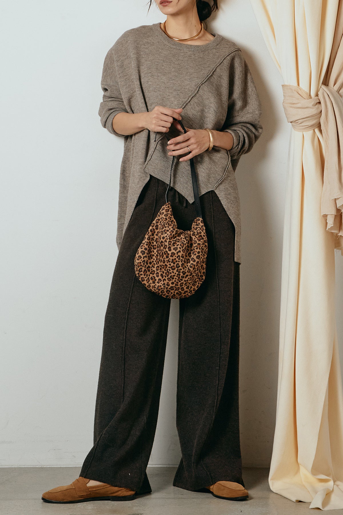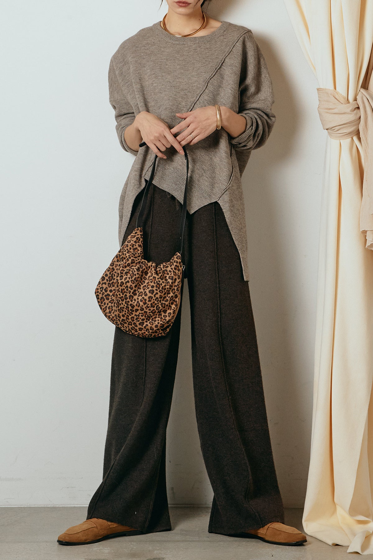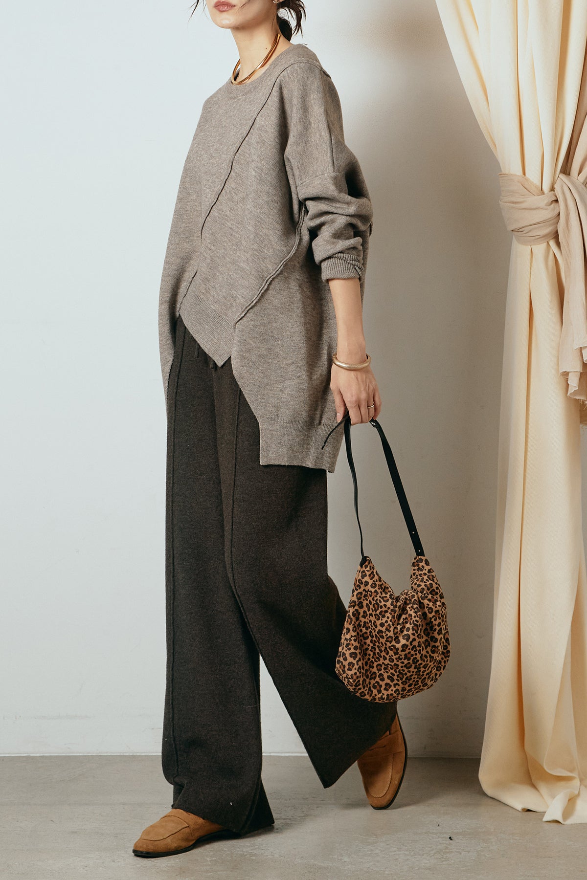 [SET]アシンメトリーデザインニットトップス+センターラインニットパンツ(2set)