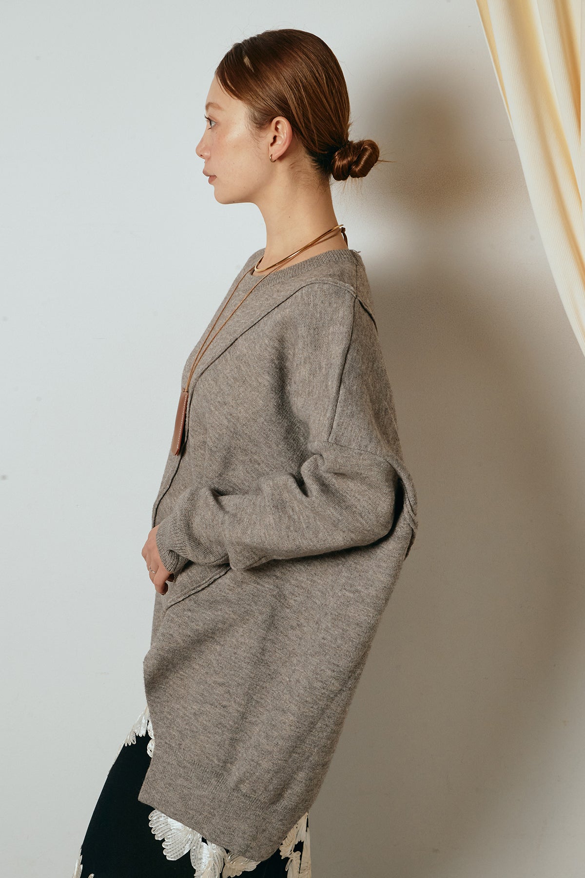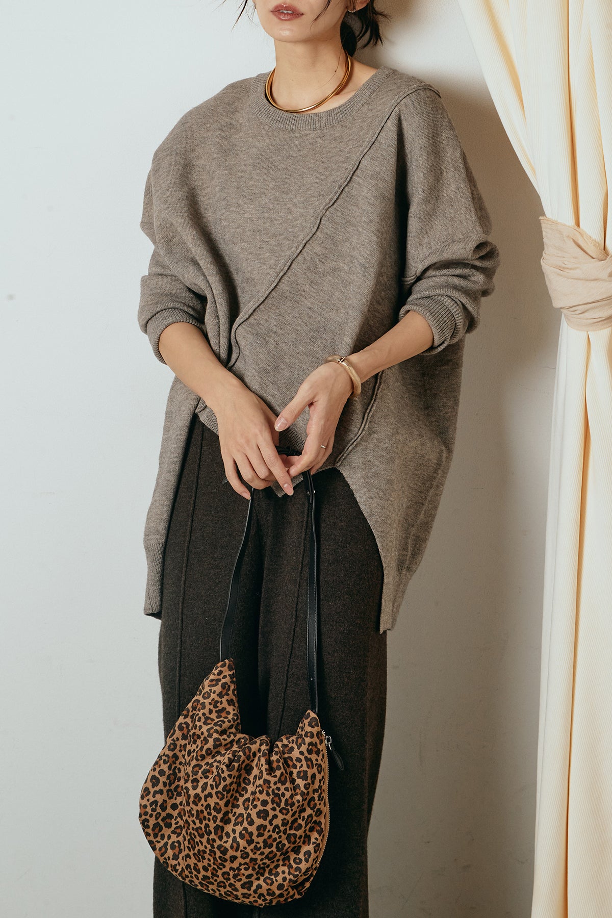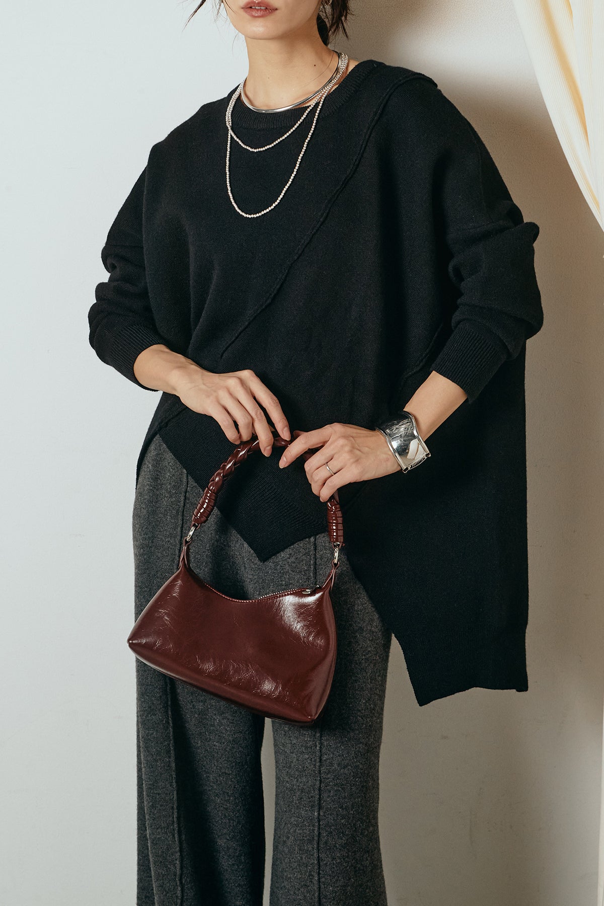 アシンメトリーな切り替えデザインが、さりげない個性を添えるニットトップス。斜めに入ったラインが動きを生み、シンプルな中にも立体感のある表情を演出します。程よくゆとりのあるシルエットで、リラックス感がありながらもすっきりとした印象に。パンツにもスカートにも合わせやすく、デイリーに取り入れやすい一枚です。