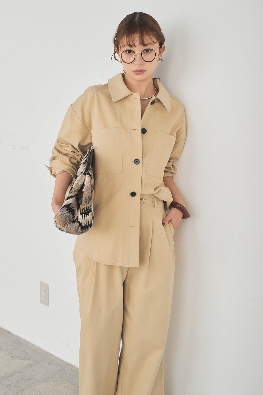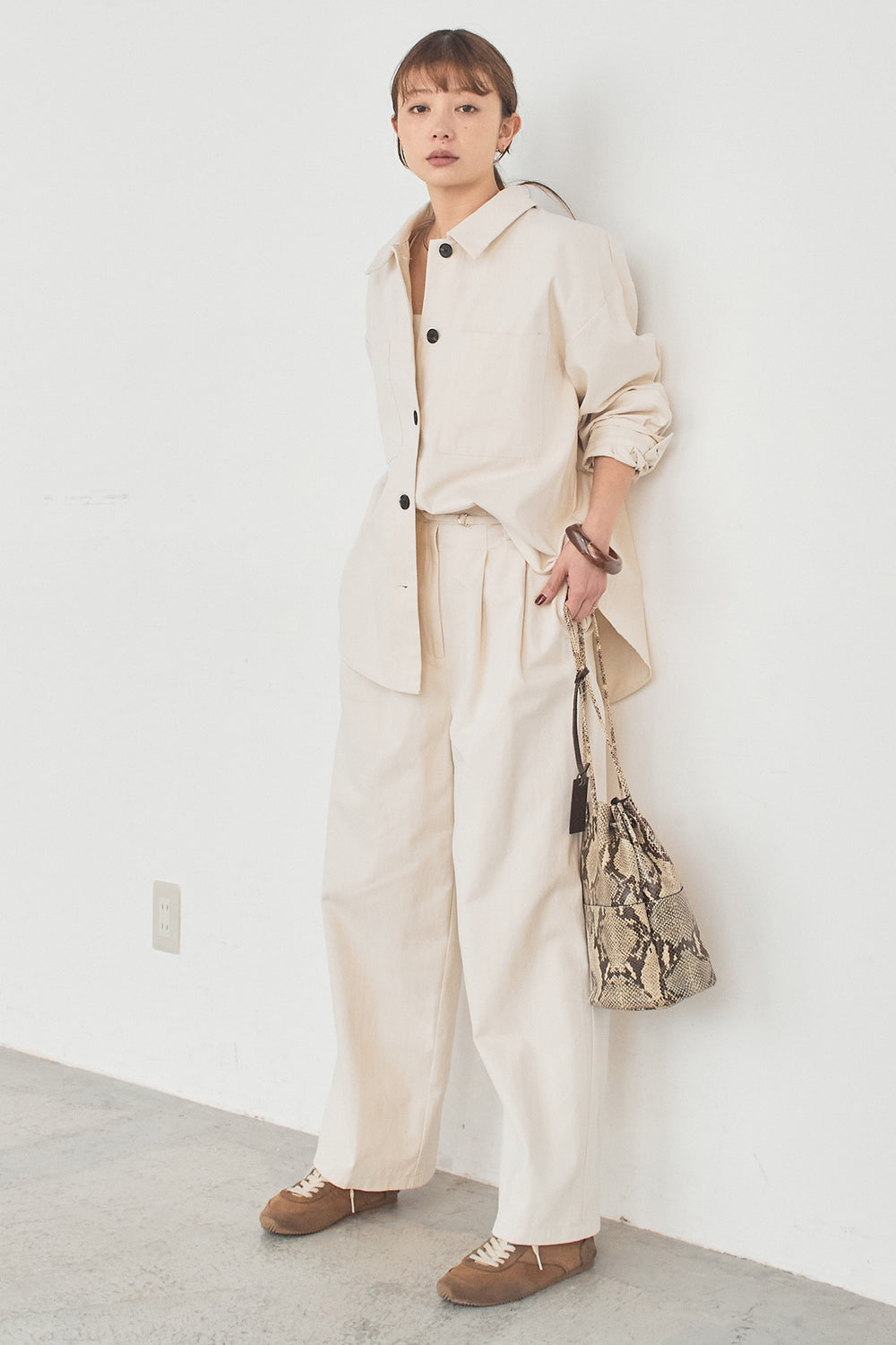 [SET]ツイルシャツジャケット+ツイルハイウエストタックパンツ(2set)