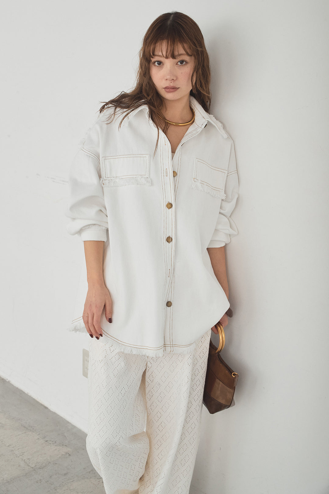 [SET]フリンジデニムジャケット+ダイヤ柄レースロングイージーパンツ(2set)