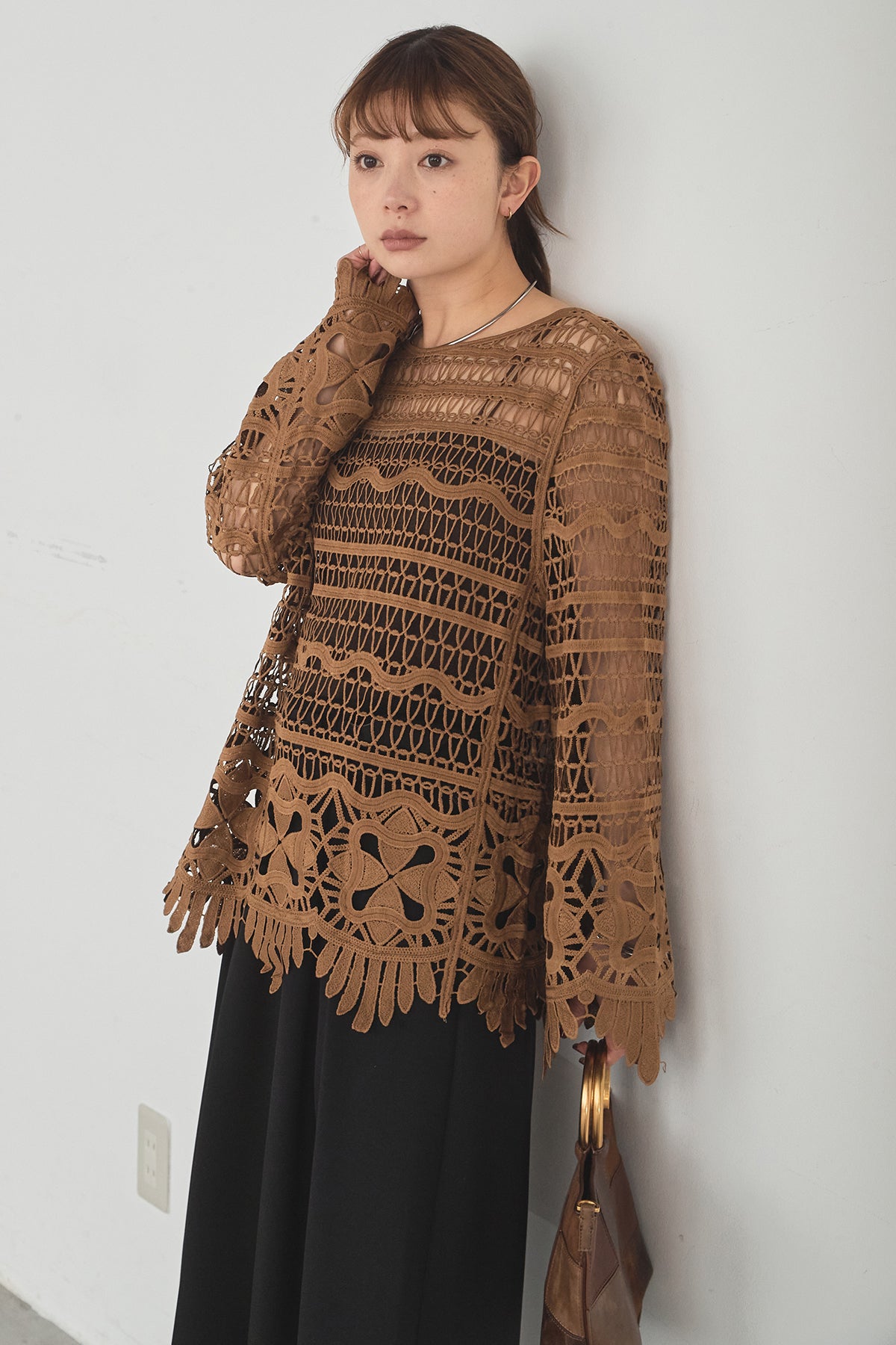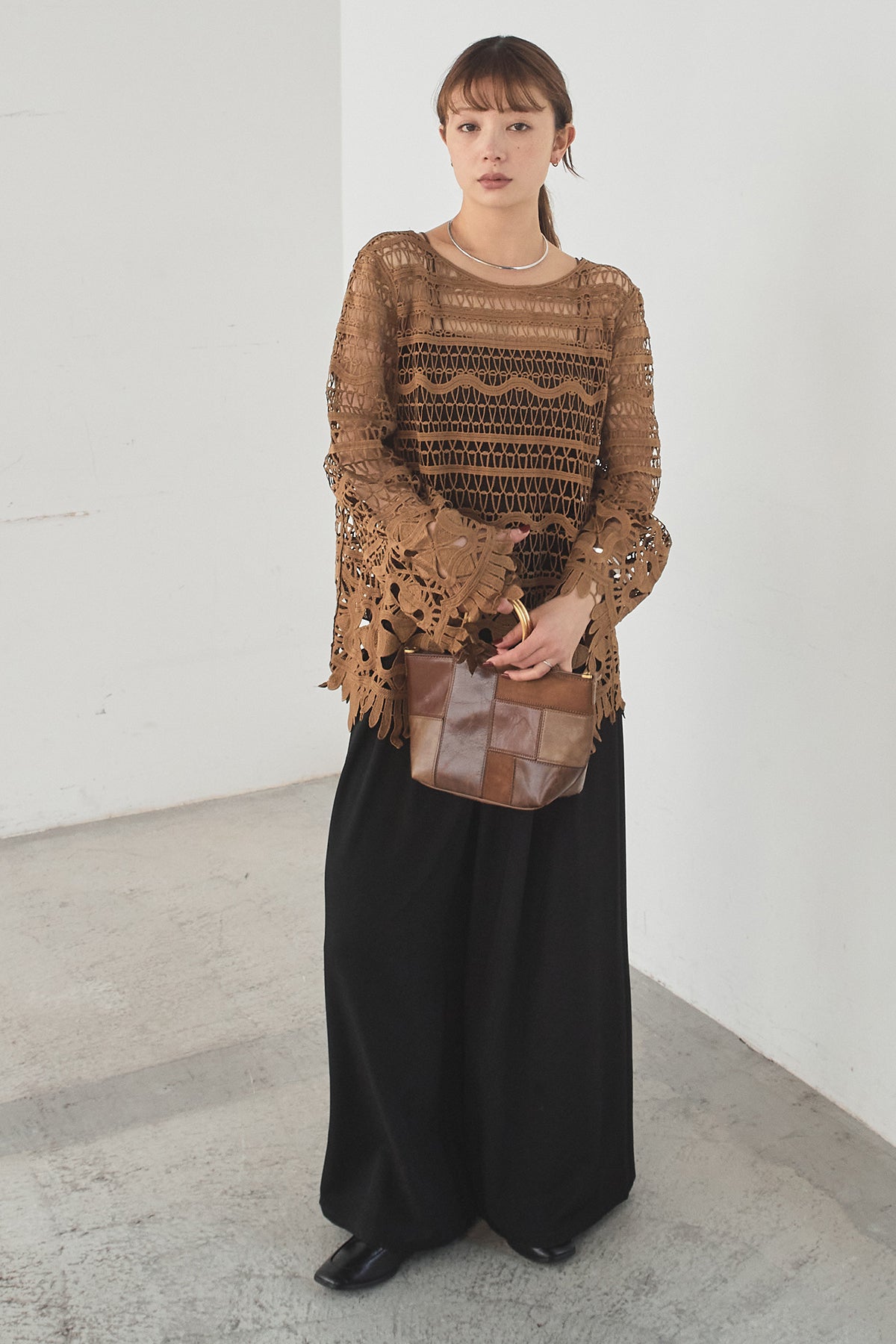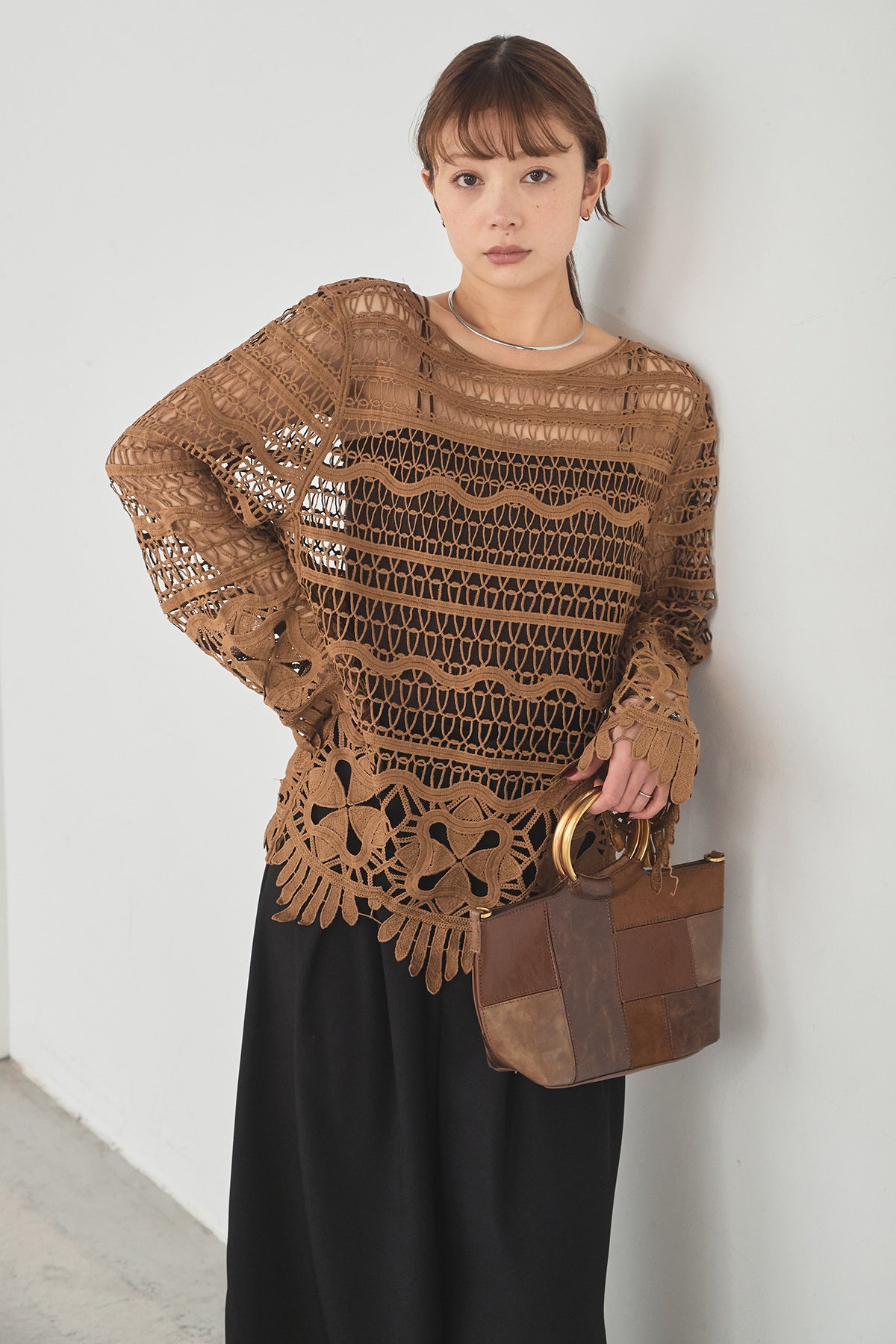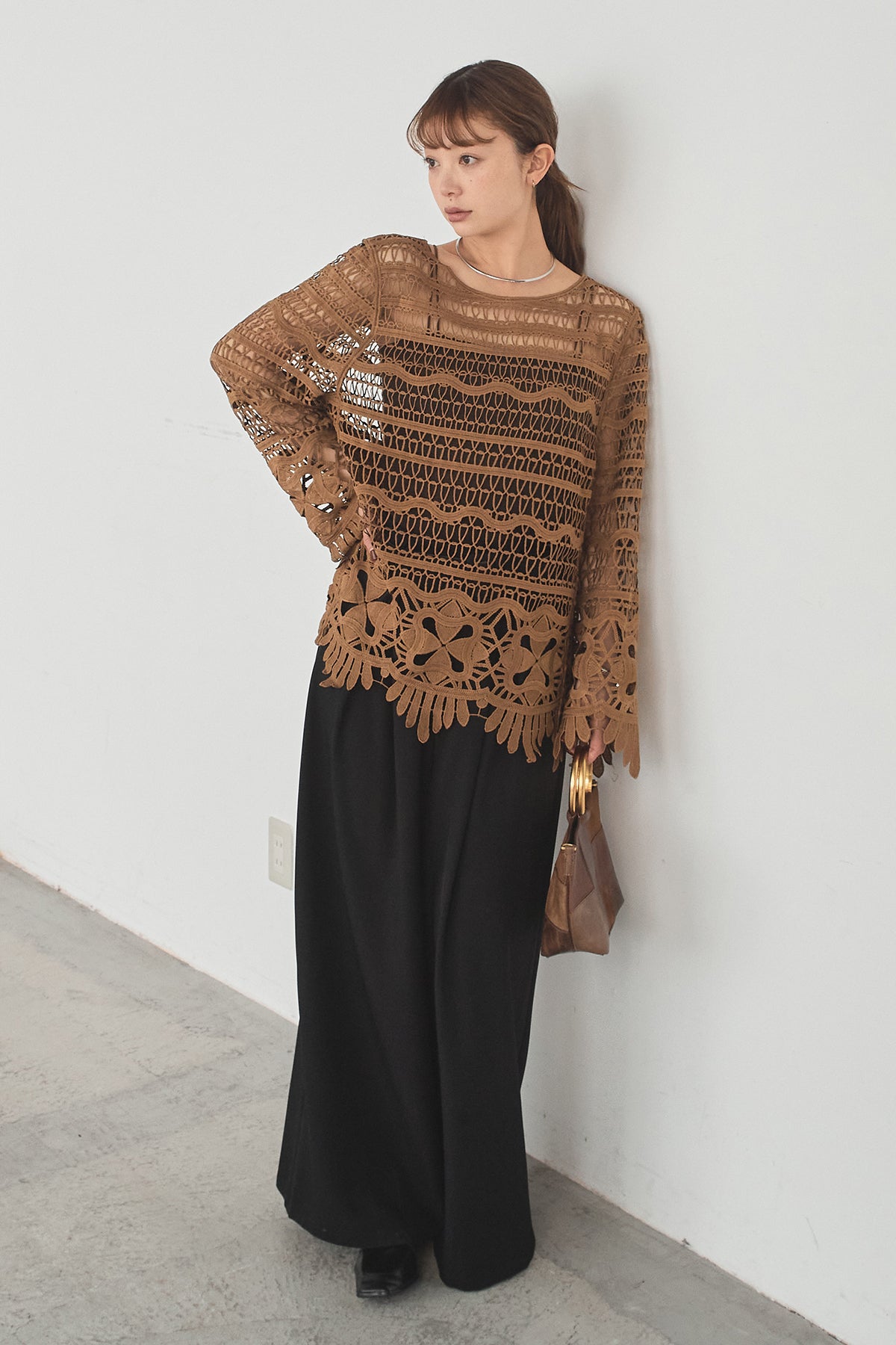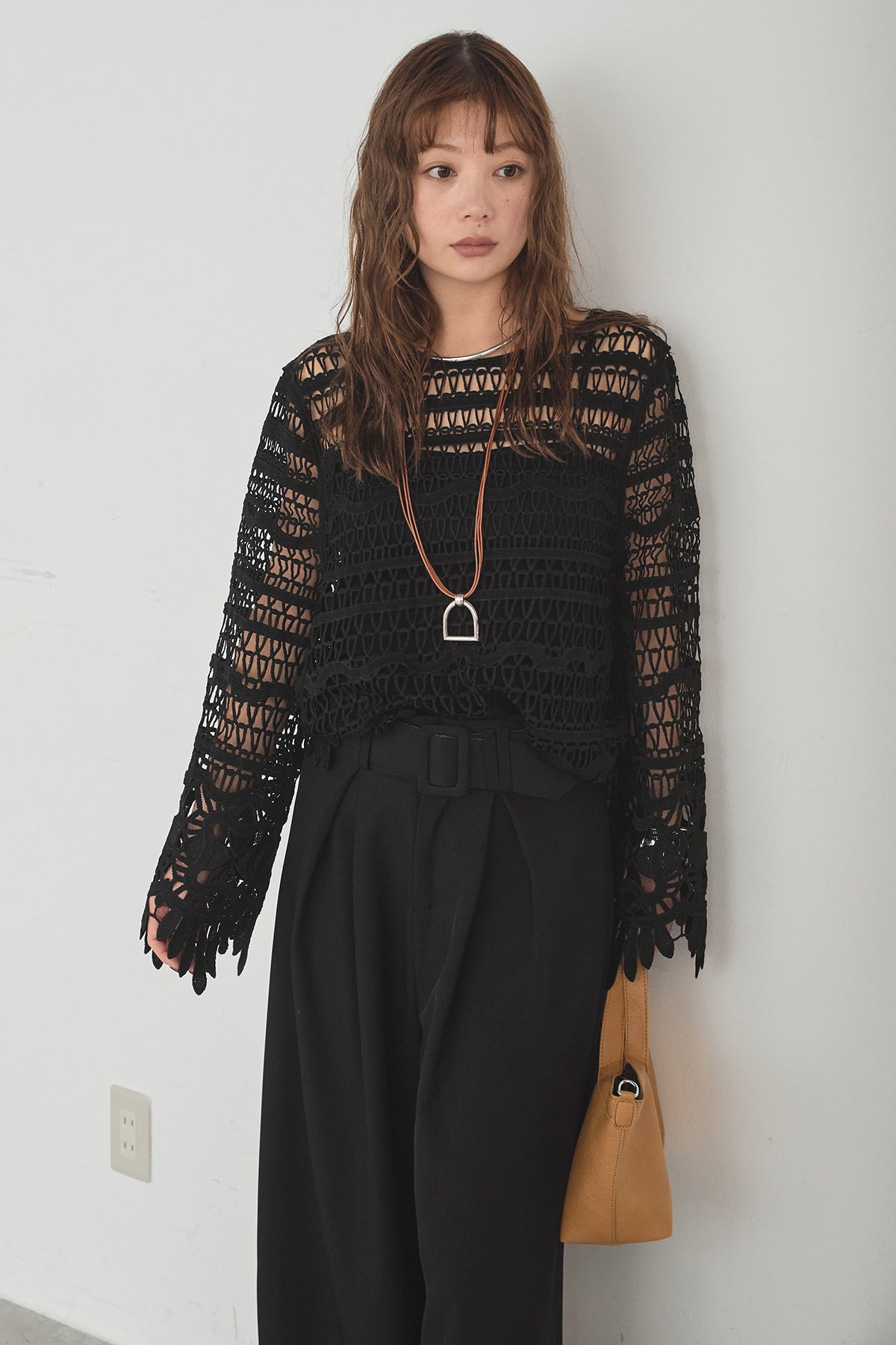 繊細なメッシュ素材に、裾のデザインを効かせたプルオーバー。透け感のある編み地が軽やかな印象を与え、スタイリングに抜け感と奥行きをプラスします。裾部分の切り替えデザインがさりげないアクセントとなり、一枚で着映えする仕上がりに。インナーとのレイヤードを楽しみながら、パンツにもスカートにも合わせやすいアイテムです。