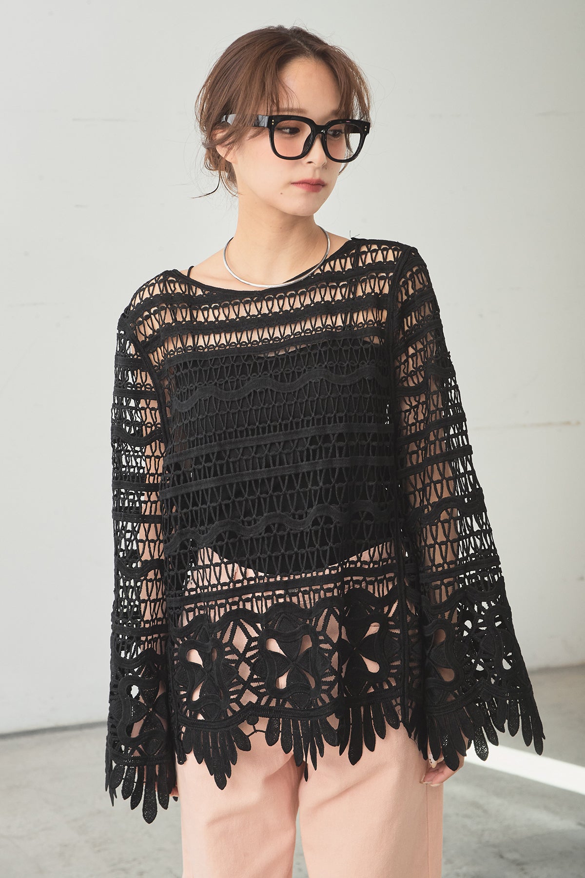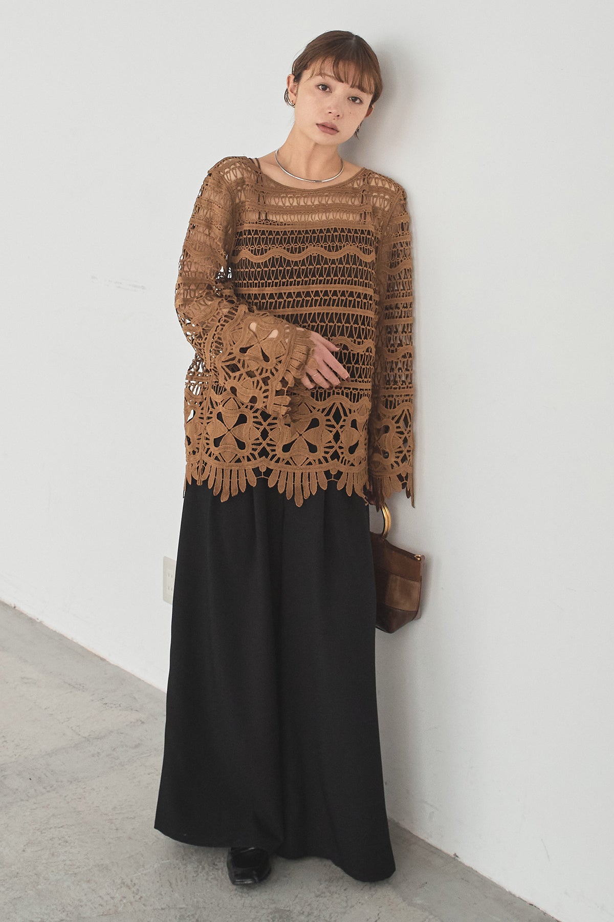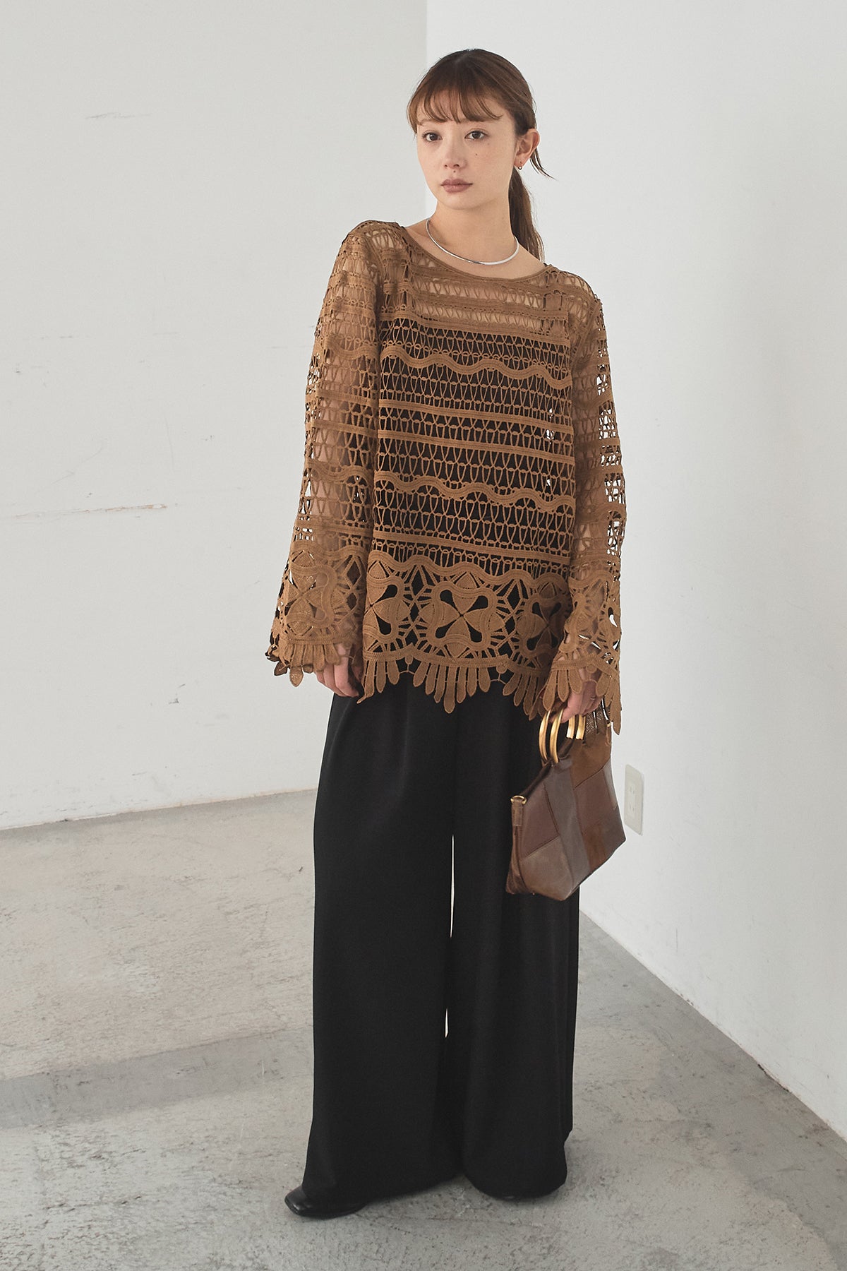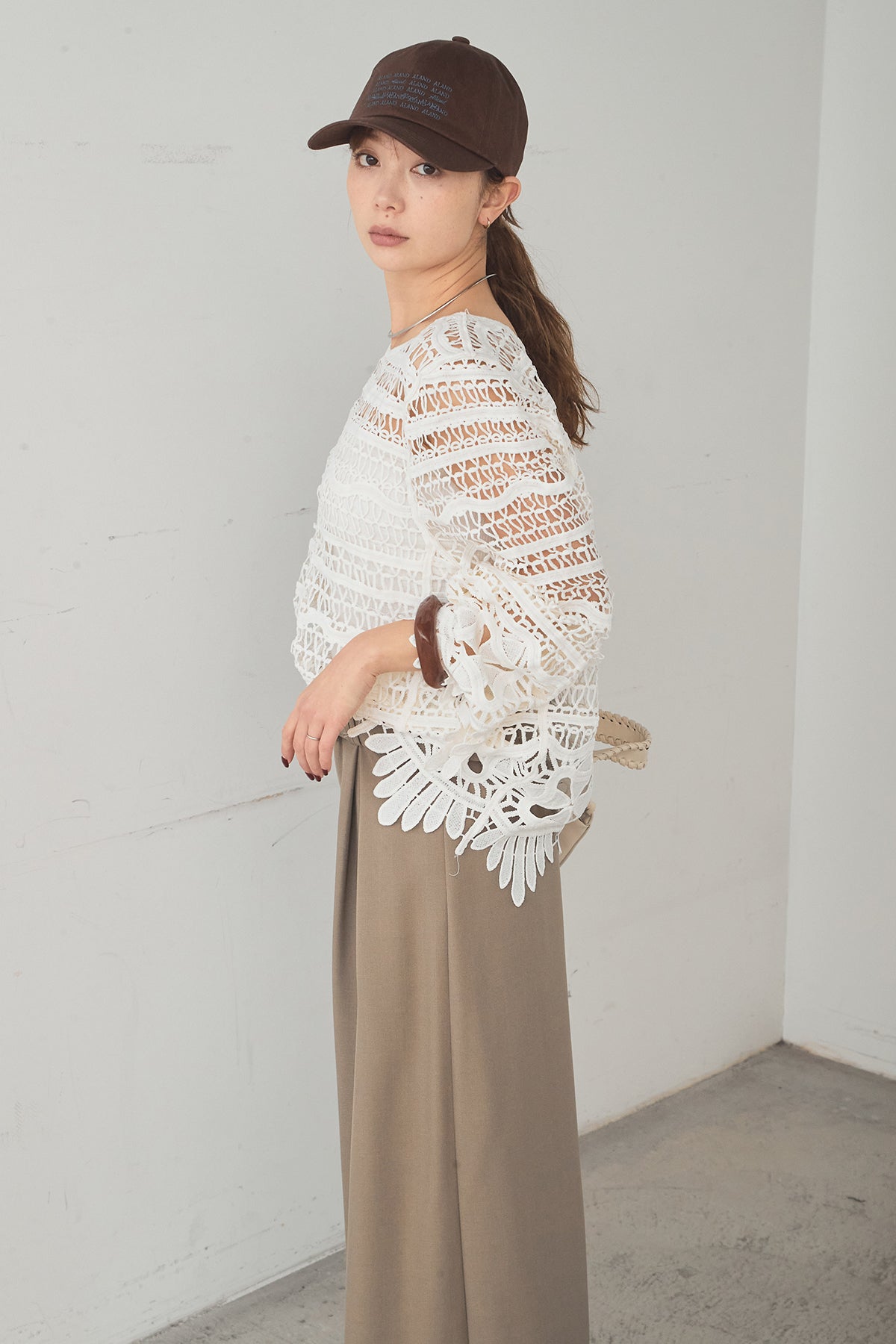 繊細なメッシュ素材に、裾のデザインを効かせたプルオーバー。透け感のある編み地が軽やかな印象を与え、スタイリングに抜け感と奥行きをプラスします。裾部分の切り替えデザインがさりげないアクセントとなり、一枚で着映えする仕上がりに。インナーとのレイヤードを楽しみながら、パンツにもスカートにも合わせやすいアイテムです。