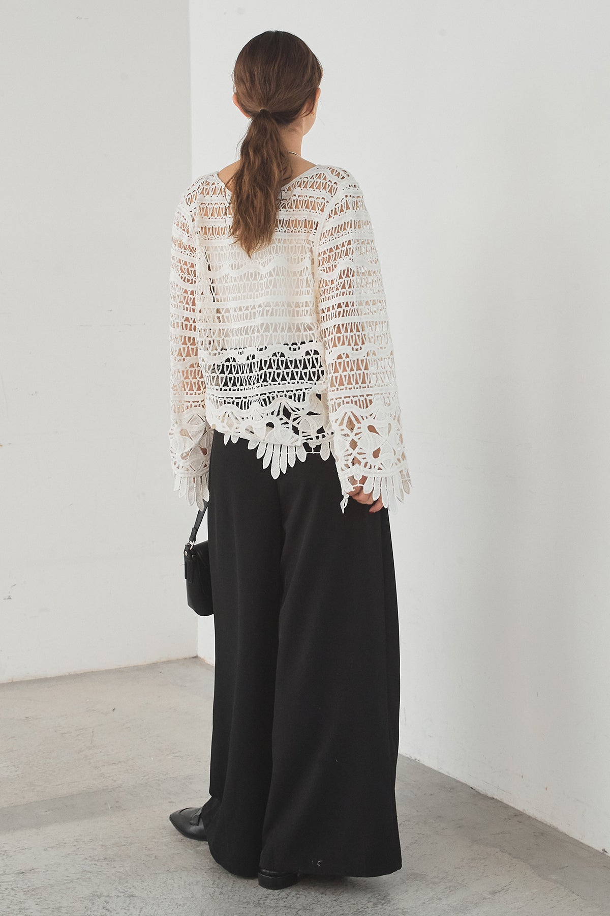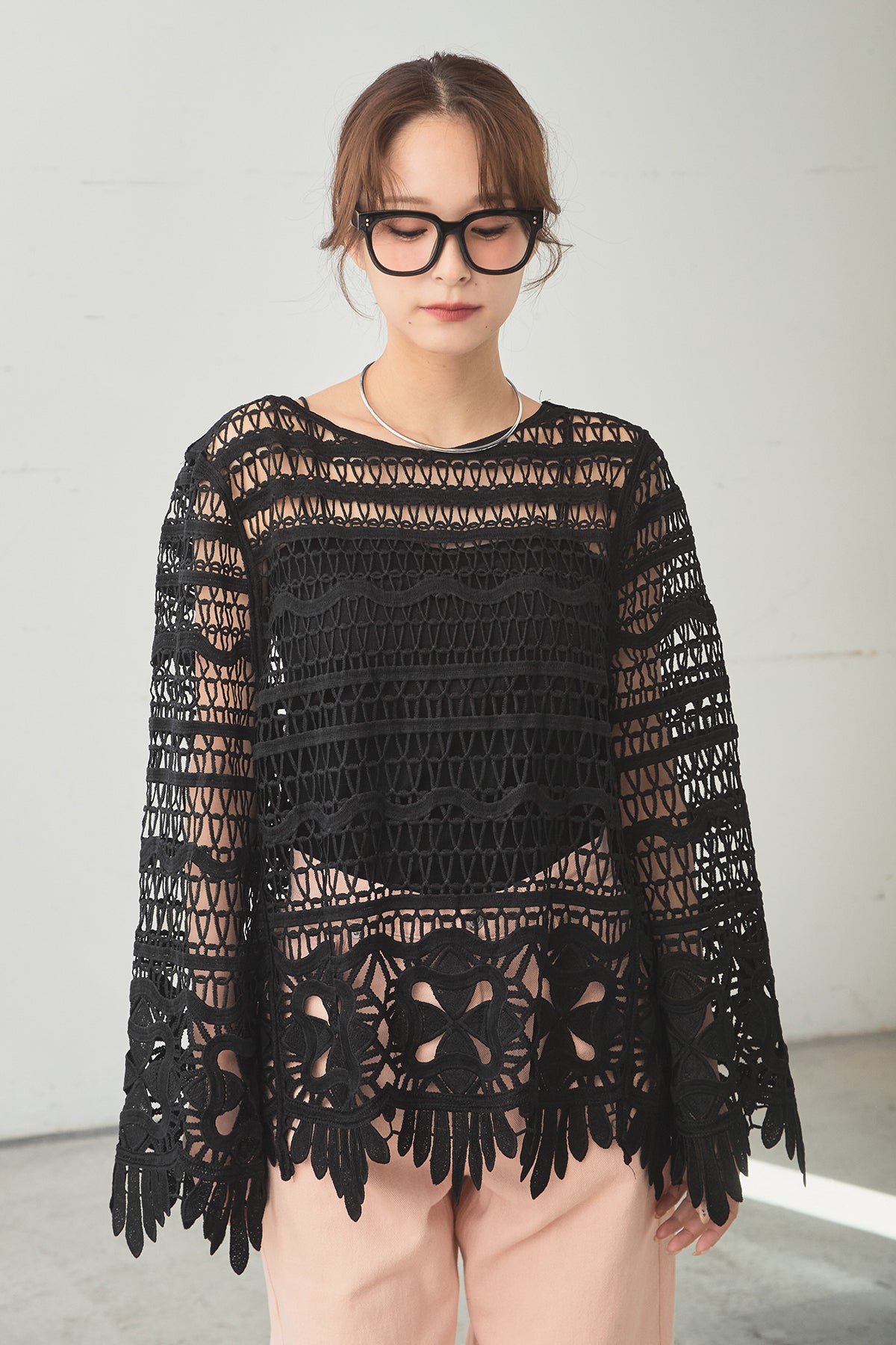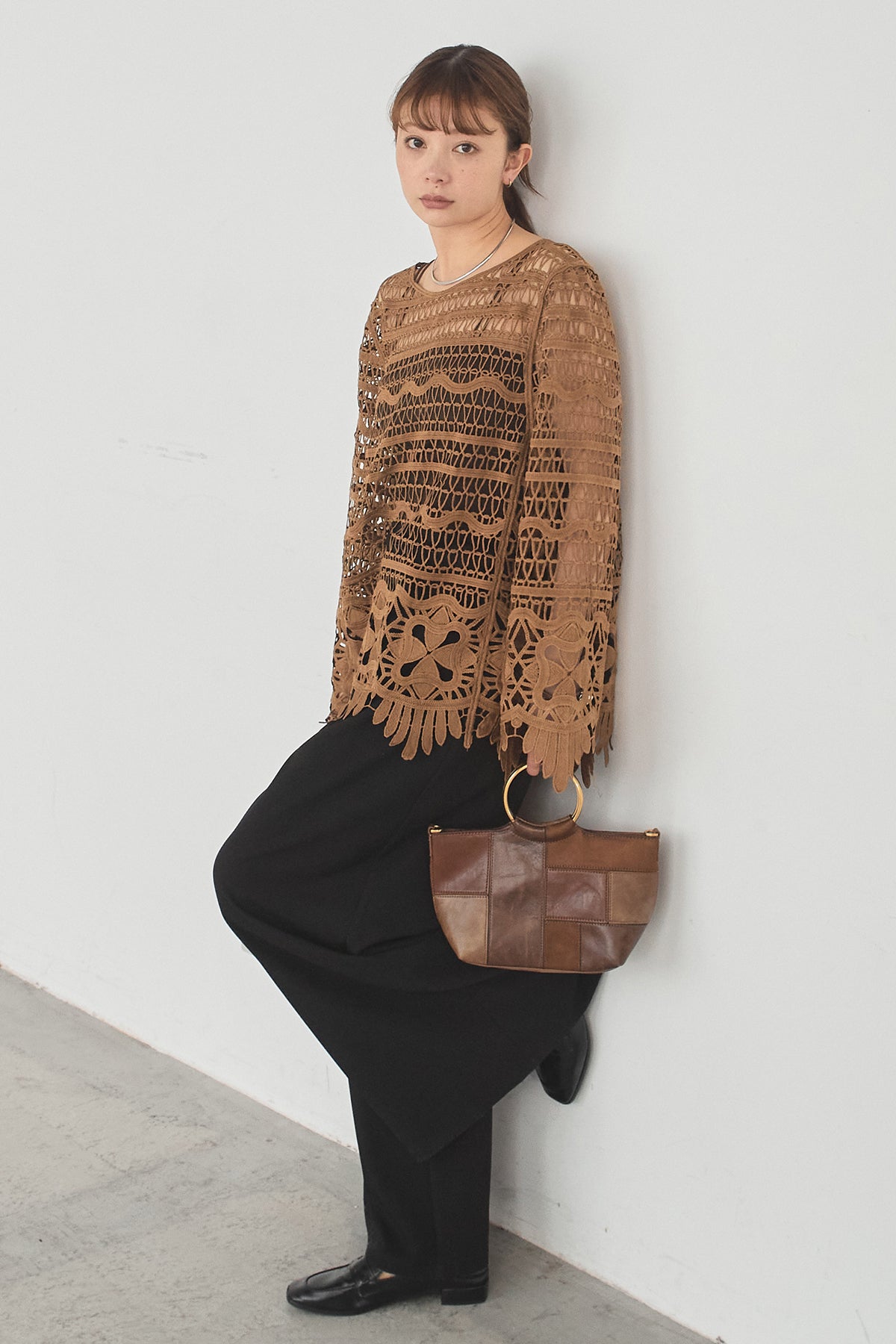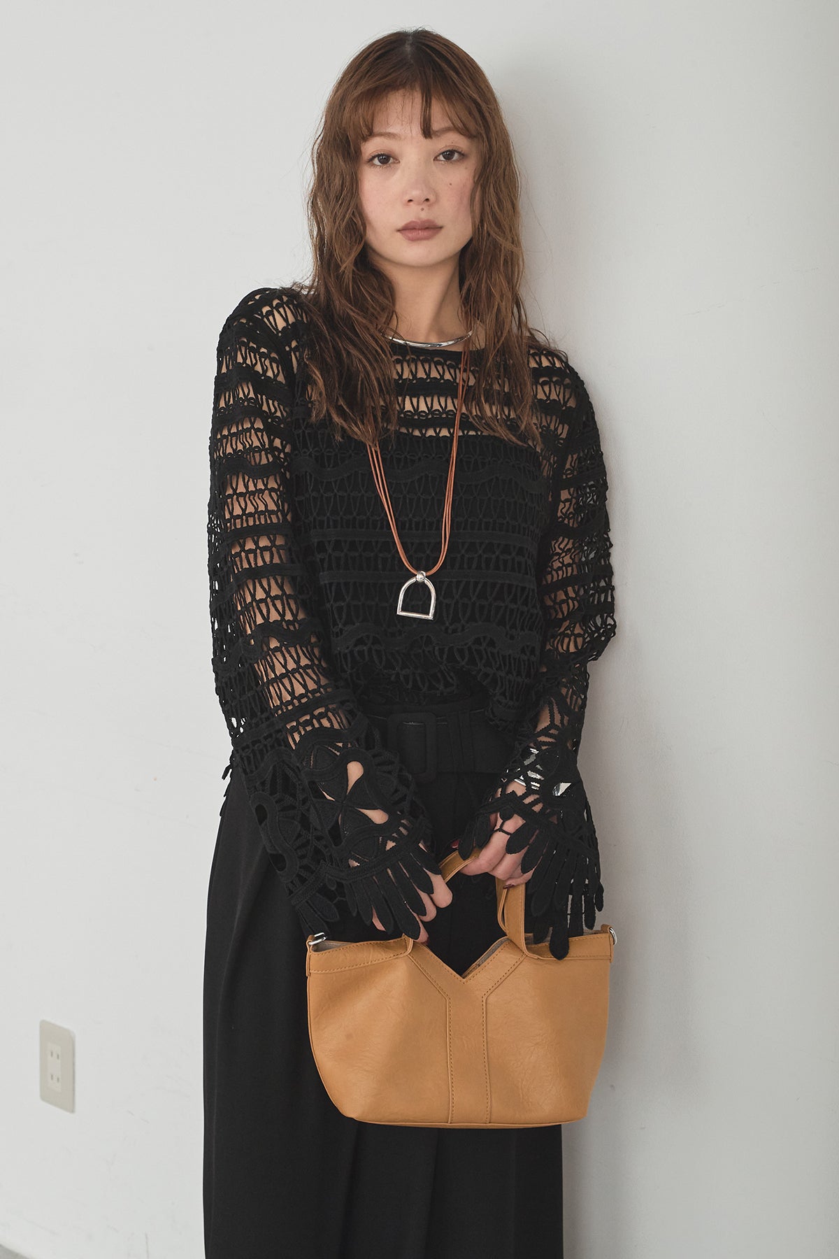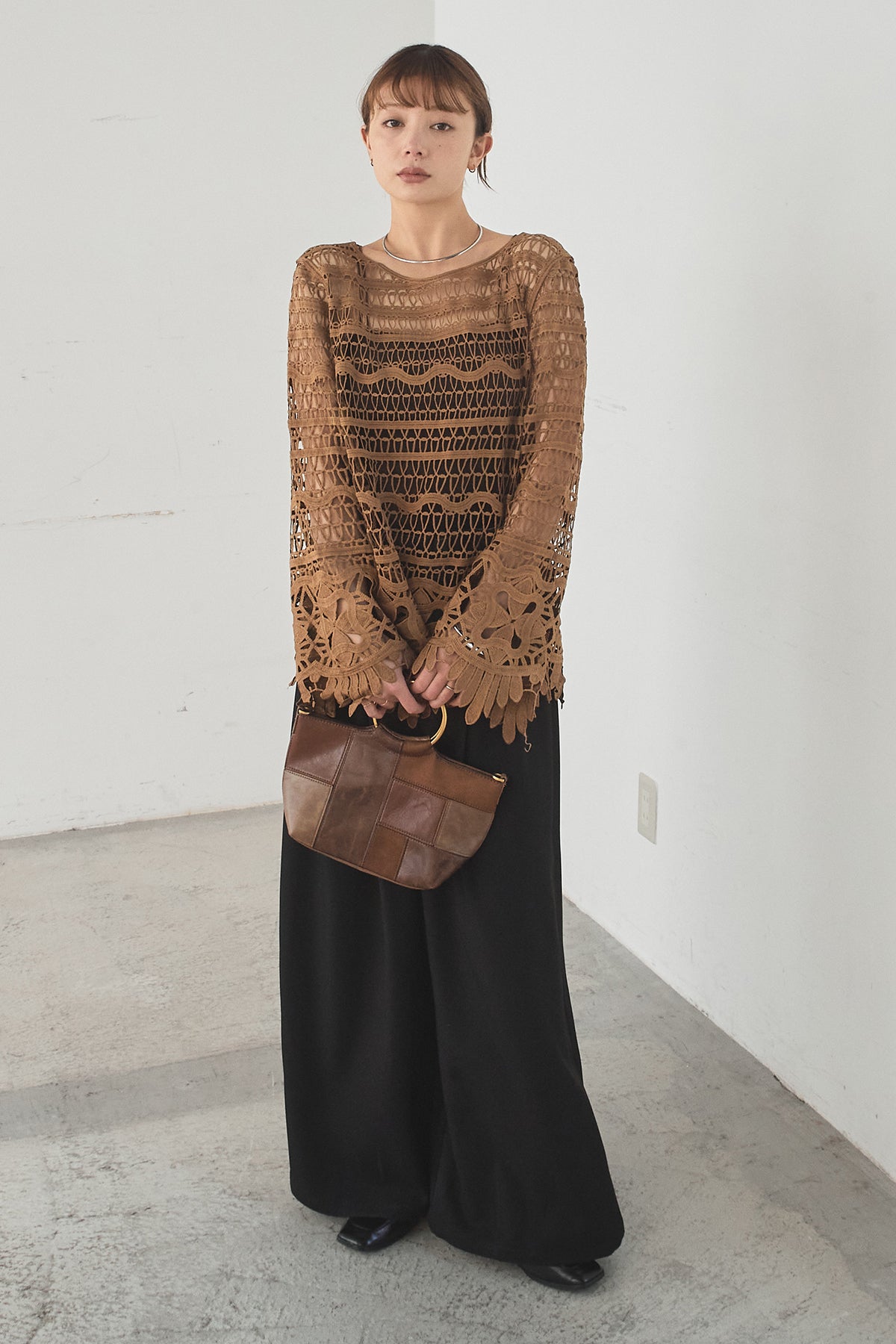 繊細なメッシュ素材に、裾のデザインを効かせたプルオーバー。透け感のある編み地が軽やかな印象を与え、スタイリングに抜け感と奥行きをプラスします。裾部分の切り替えデザインがさりげないアクセントとなり、一枚で着映えする仕上がりに。インナーとのレイヤードを楽しみながら、パンツにもスカートにも合わせやすいアイテムです。