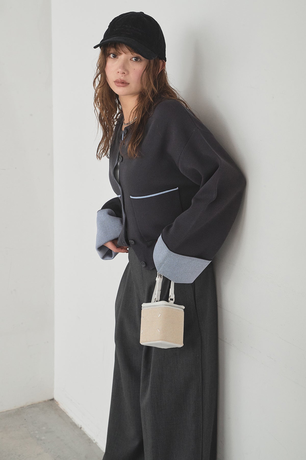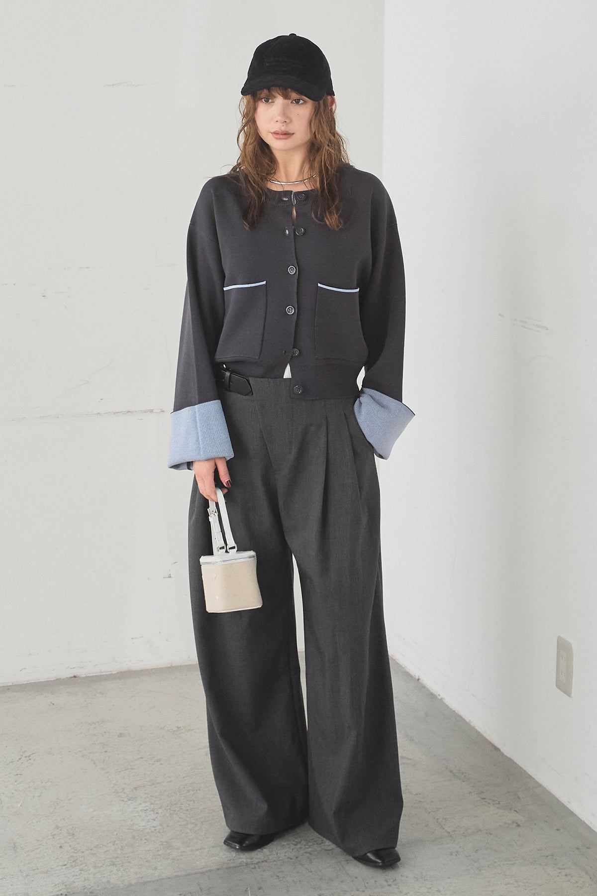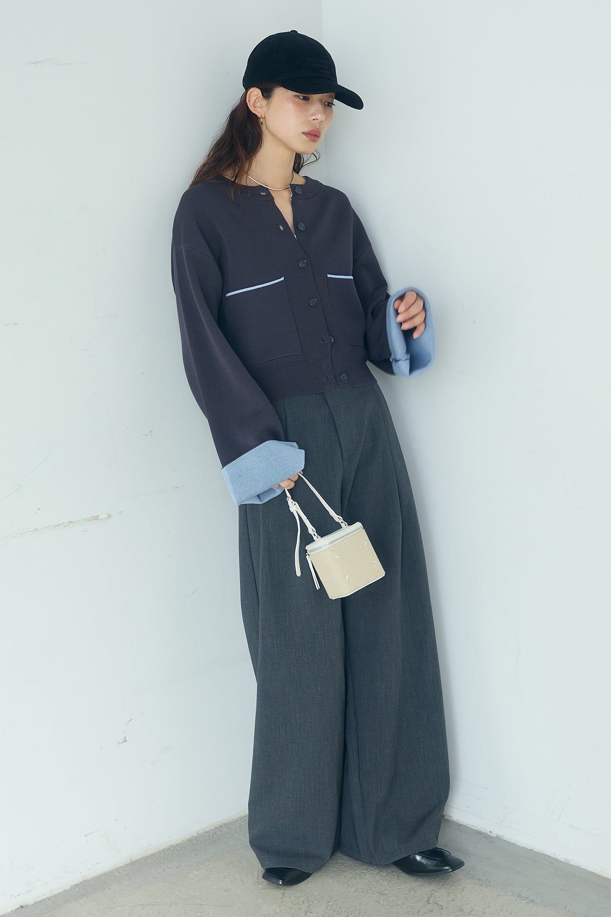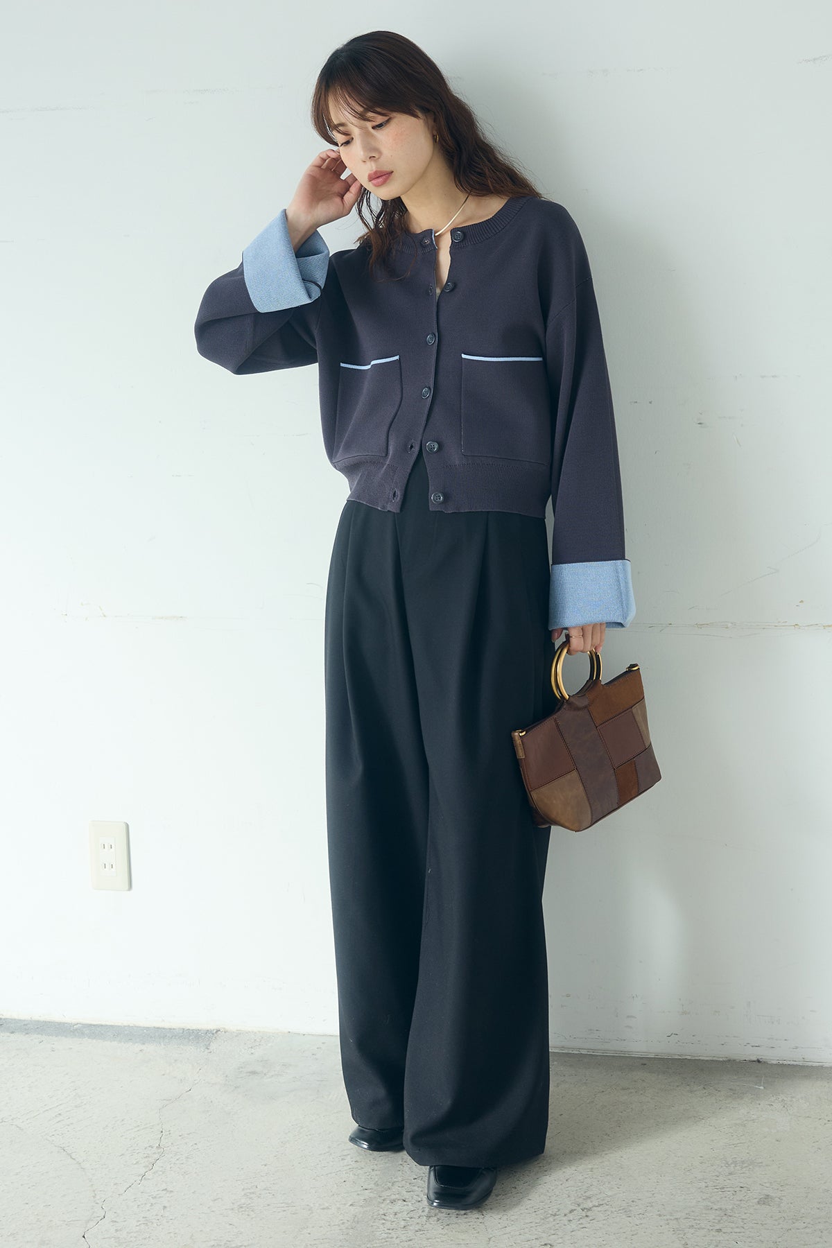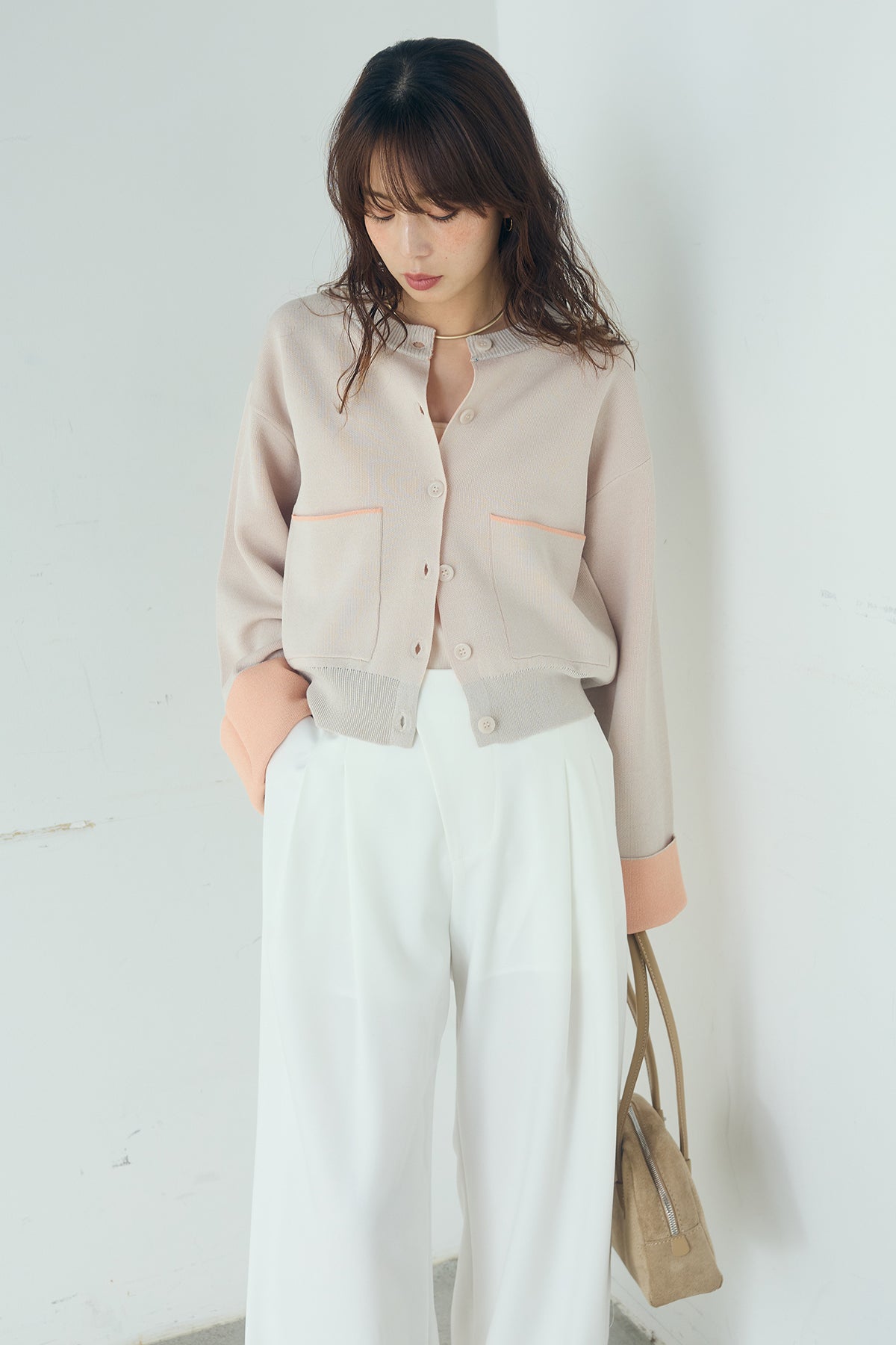 ほどよい落ち感のあるダブルフェイス仕立てが、上品な印象を引き立てるカーディガン。 配色のパイピングやカフスの切り替えが、シンプルな中にさりげないアクセントを添えています。 すっきりとした丈感で、ワイドパンツやスカートとも好相性。 きちんと感とリラックス感のバランスが取れた、日常に取り入れやすい一枚です。