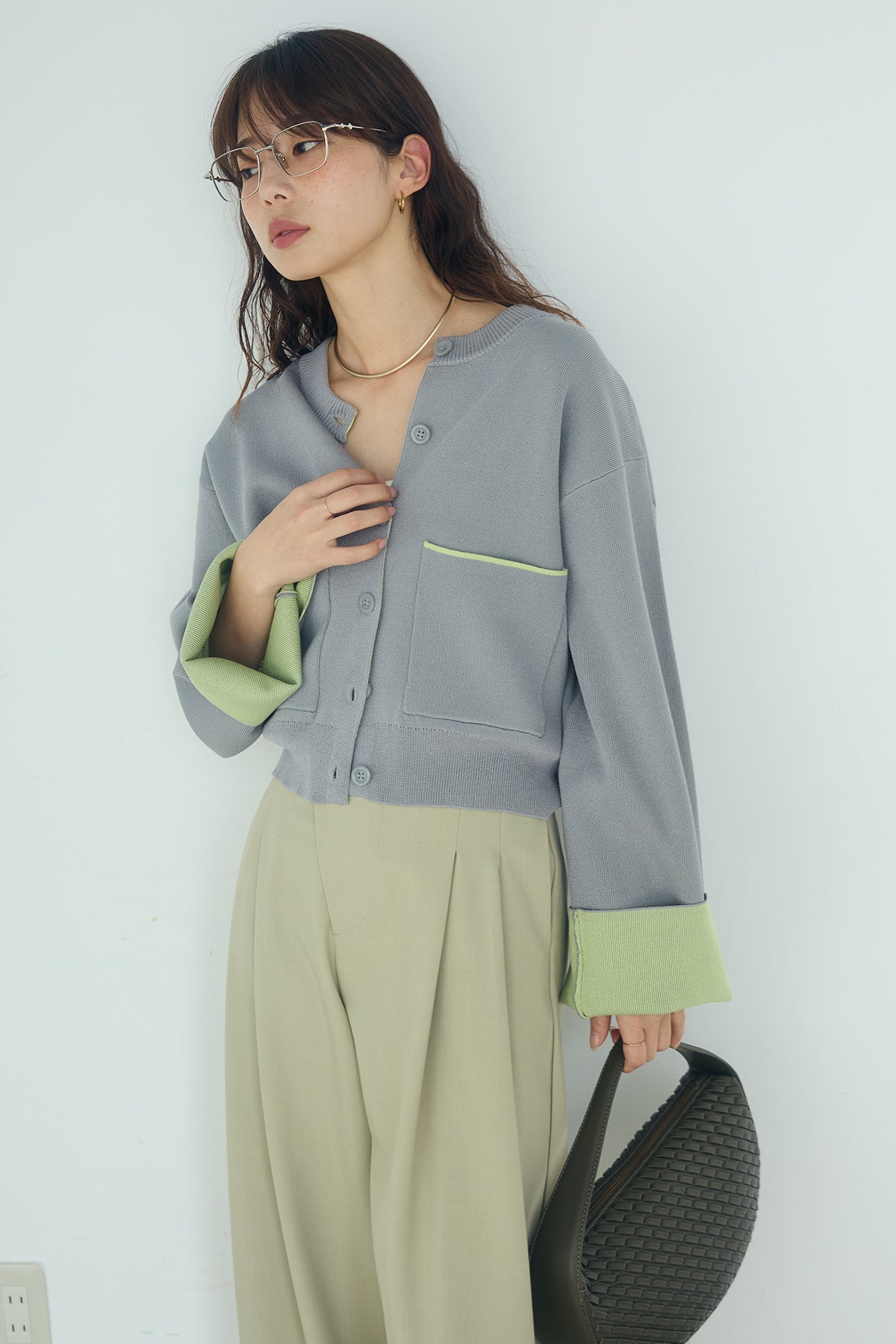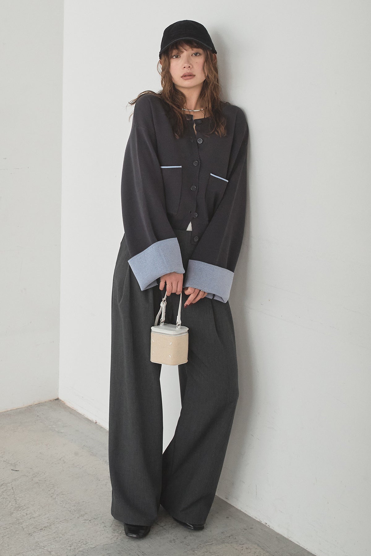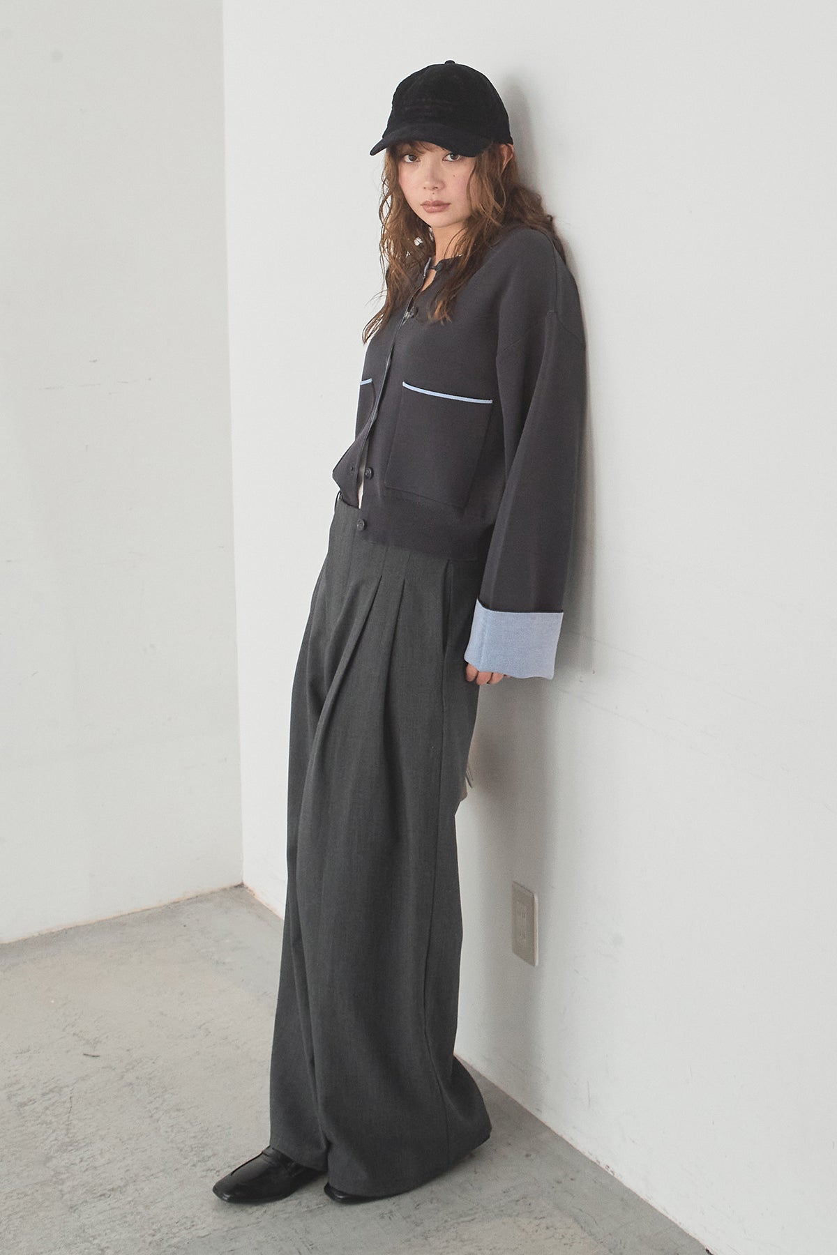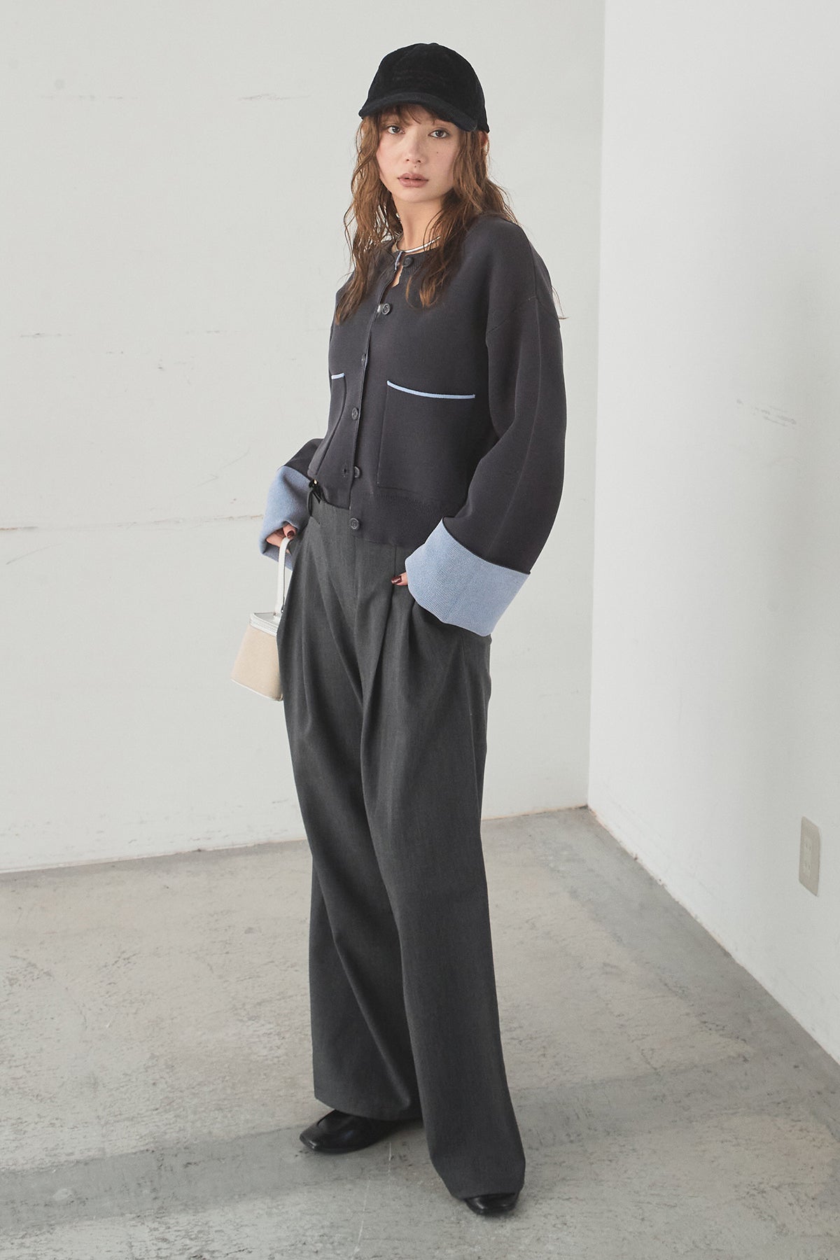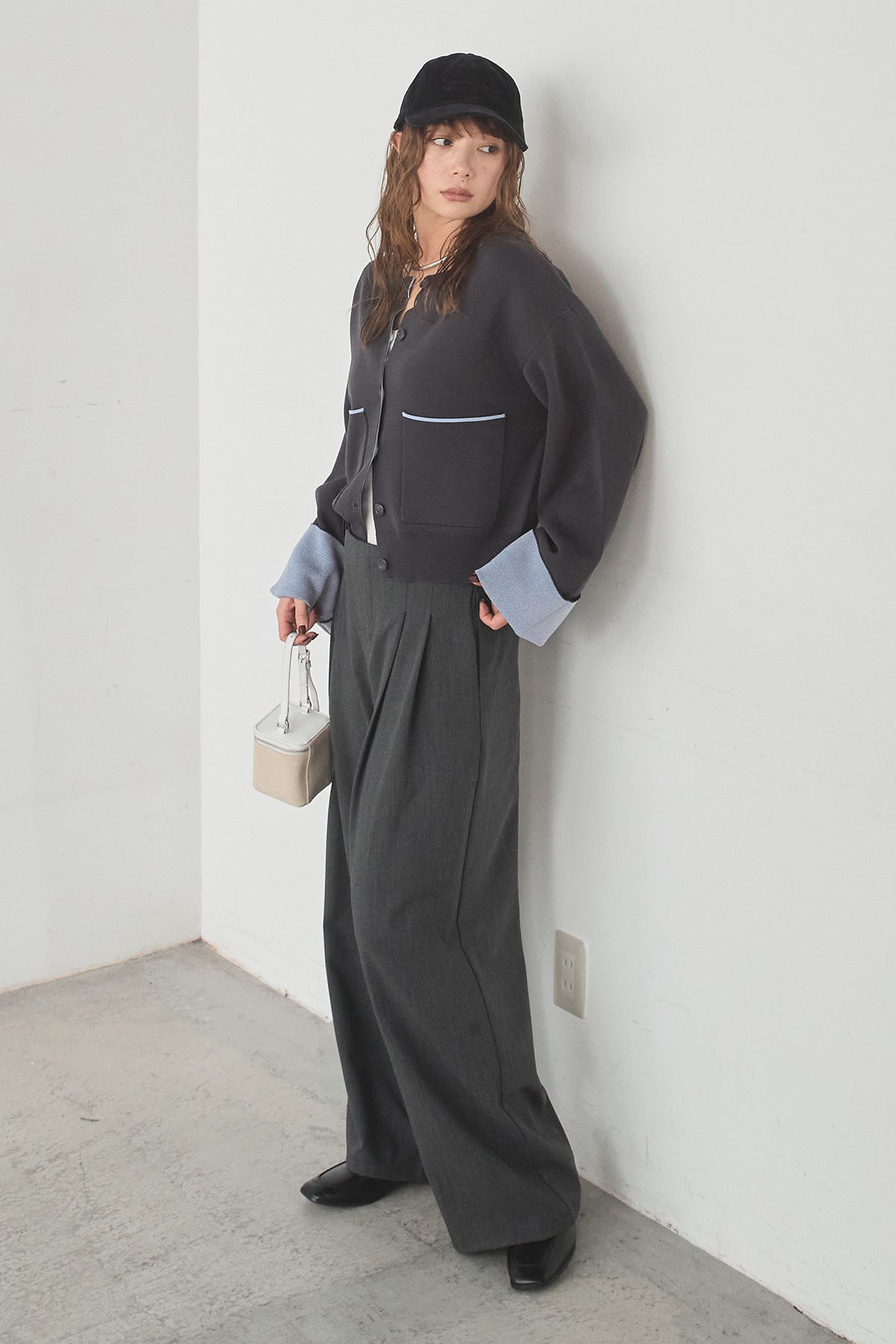 ほどよい落ち感のあるダブルフェイス仕立てが、上品な印象を引き立てるカーディガン。 配色のパイピングやカフスの切り替えが、シンプルな中にさりげないアクセントを添えています。 すっきりとした丈感で、ワイドパンツやスカートとも好相性。 きちんと感とリラックス感のバランスが取れた、日常に取り入れやすい一枚です。