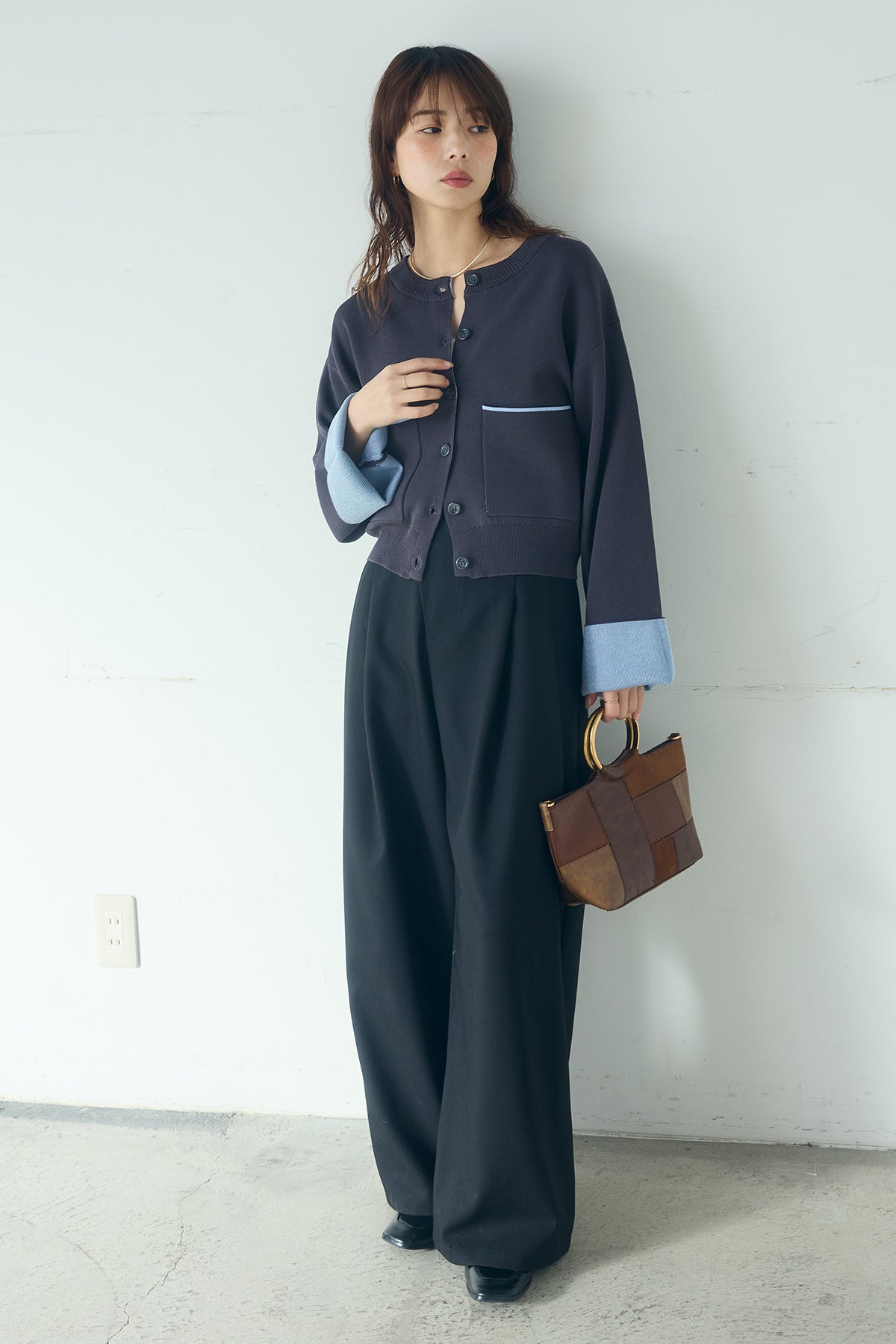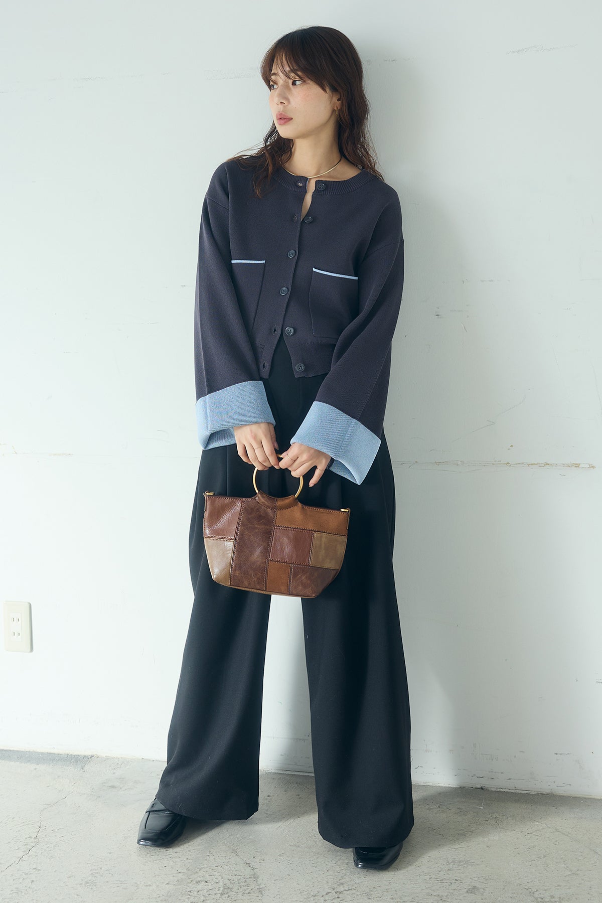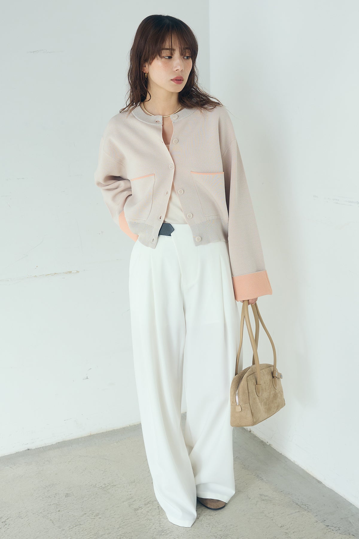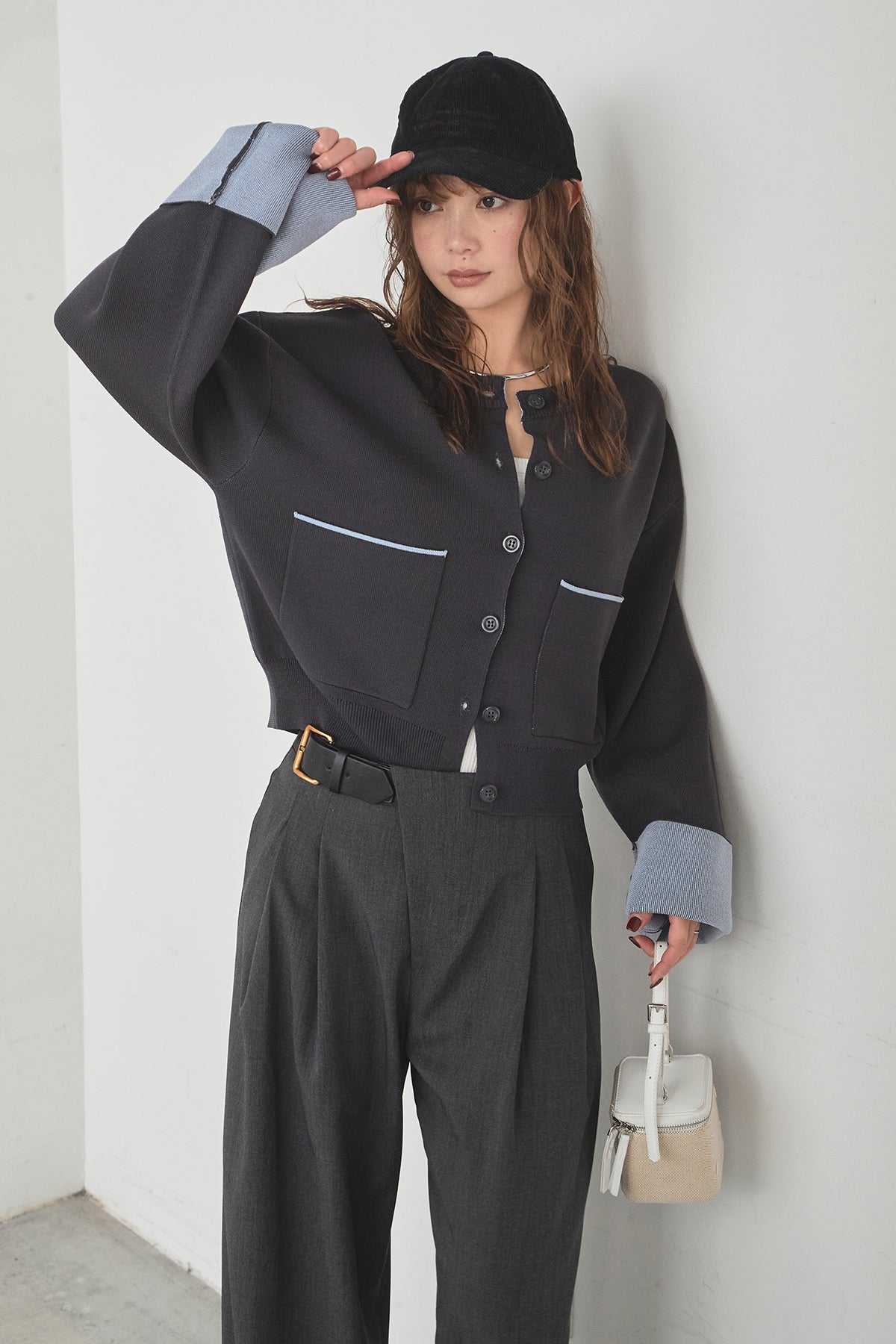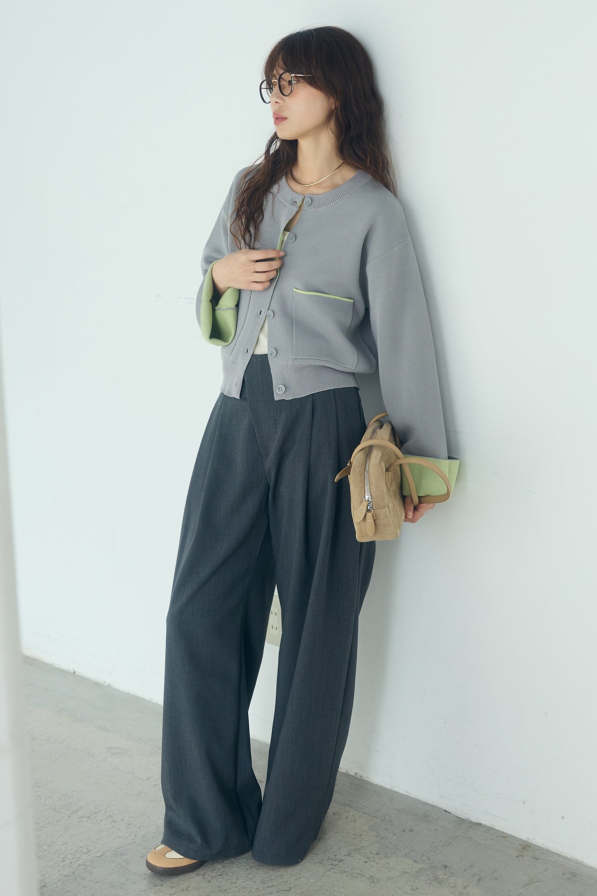 ほどよい落ち感のあるダブルフェイス仕立てが、上品な印象を引き立てるカーディガン。 配色のパイピングやカフスの切り替えが、シンプルな中にさりげないアクセントを添えています。 すっきりとした丈感で、ワイドパンツやスカートとも好相性。 きちんと感とリラックス感のバランスが取れた、日常に取り入れやすい一枚です。