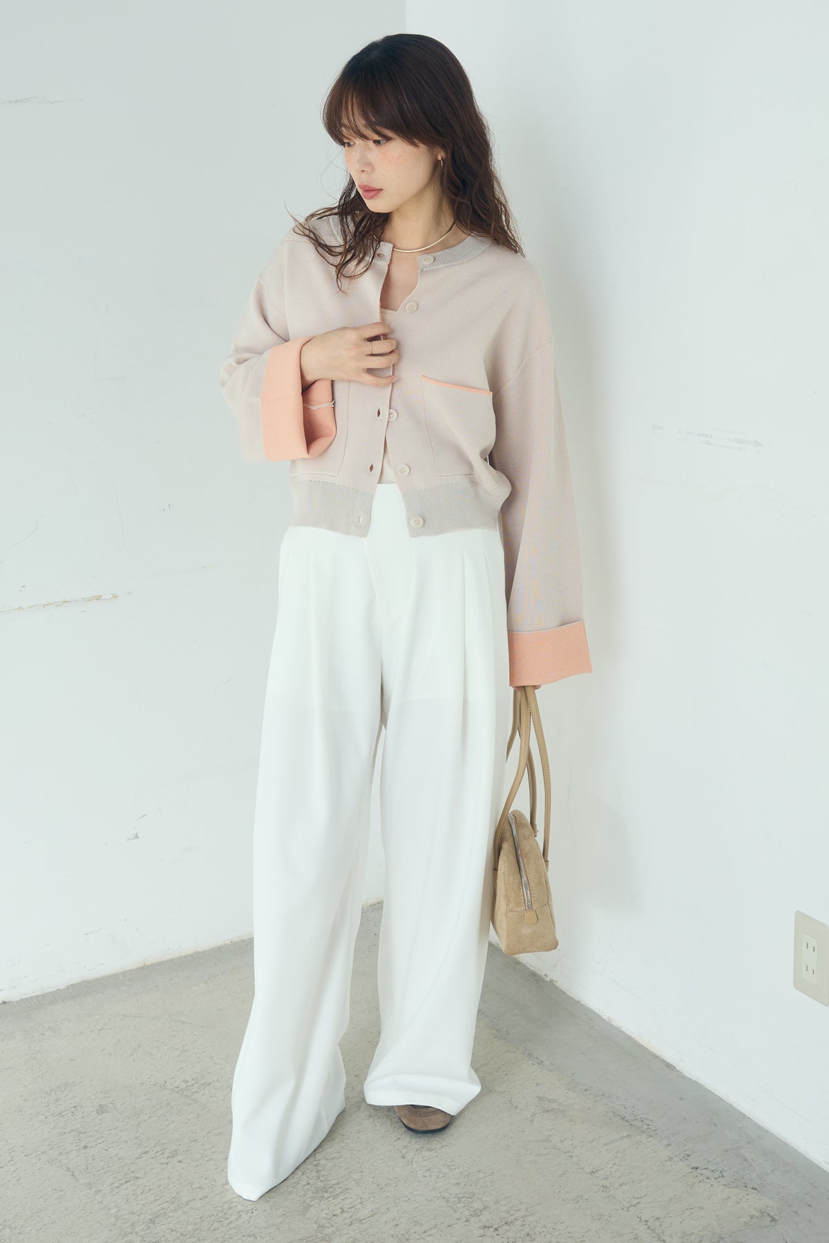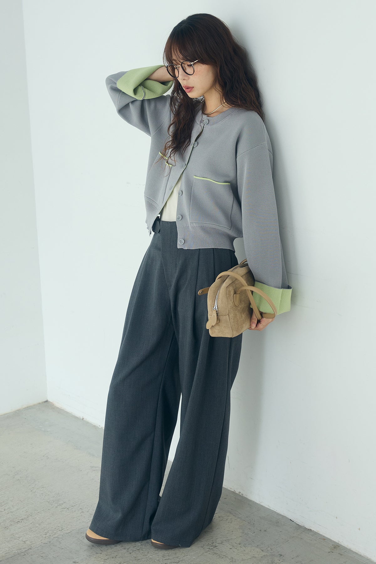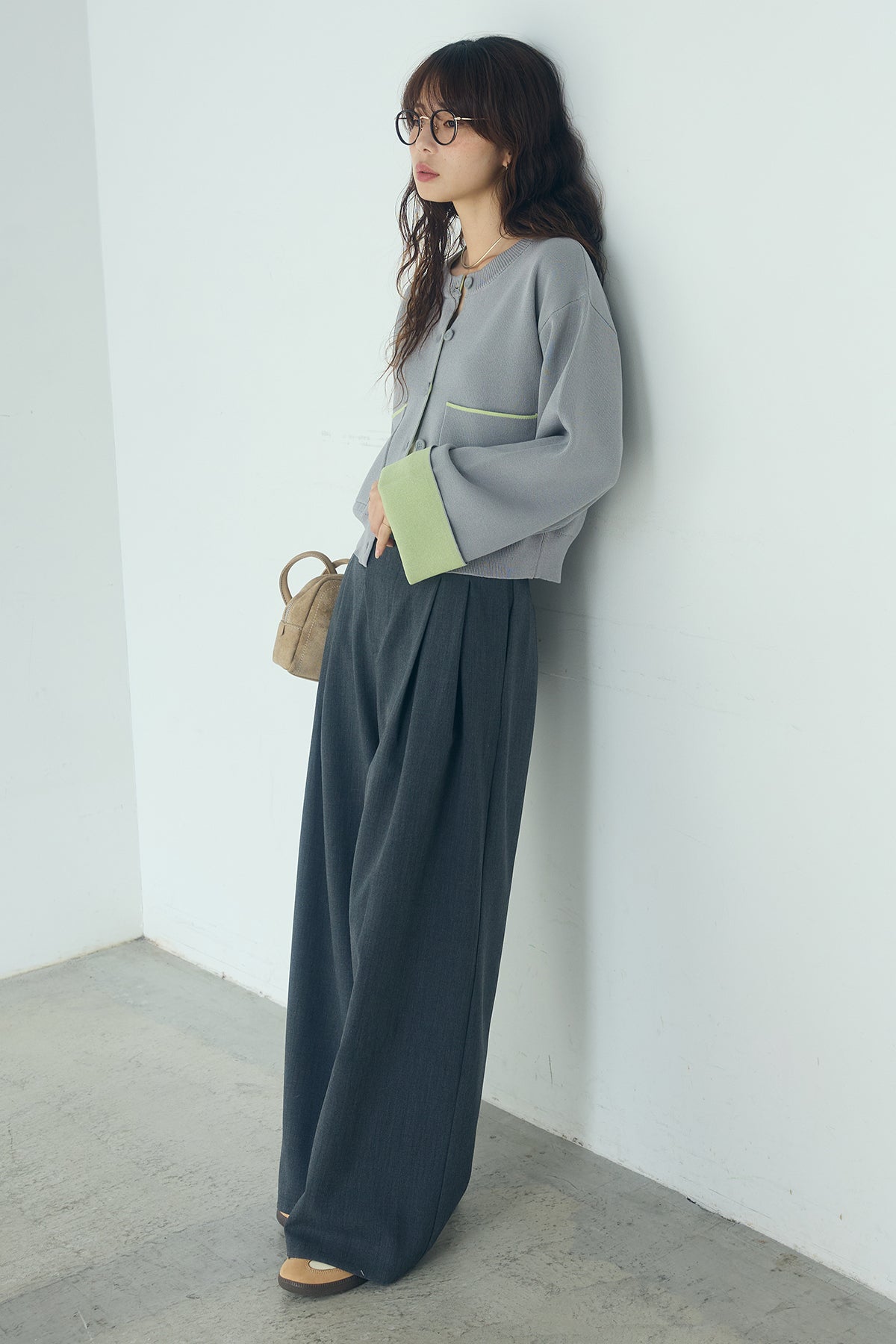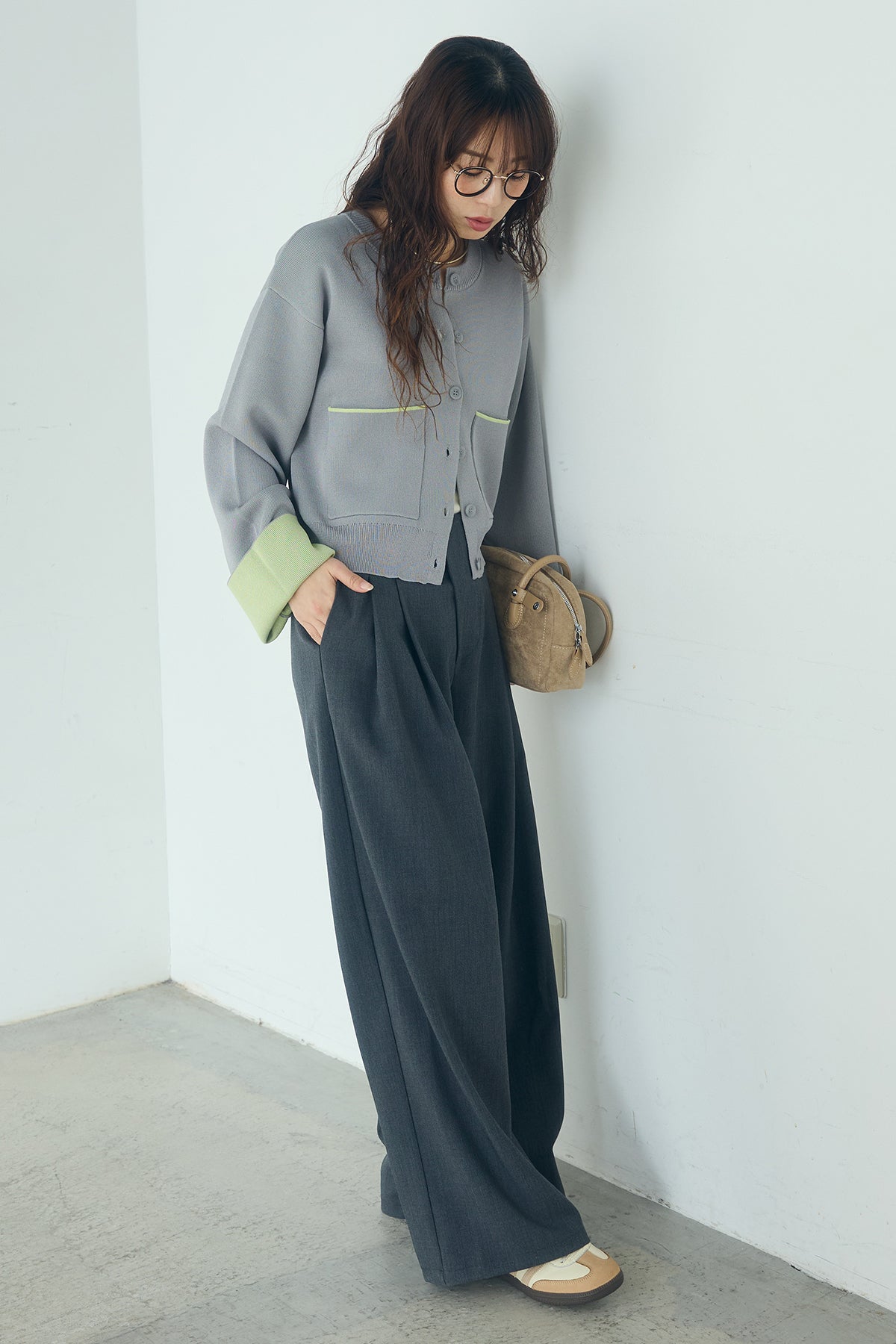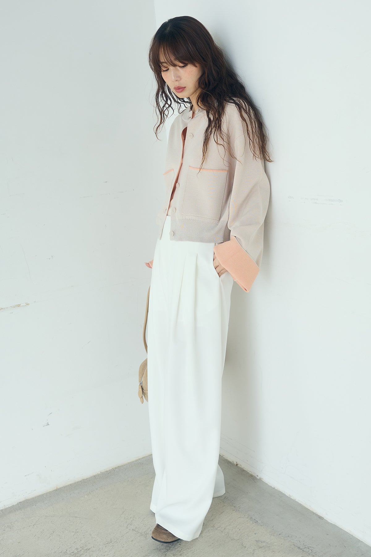 ほどよい落ち感のあるダブルフェイス仕立てが、上品な印象を引き立てるカーディガン。 配色のパイピングやカフスの切り替えが、シンプルな中にさりげないアクセントを添えています。 すっきりとした丈感で、ワイドパンツやスカートとも好相性。 きちんと感とリラックス感のバランスが取れた、日常に取り入れやすい一枚です。