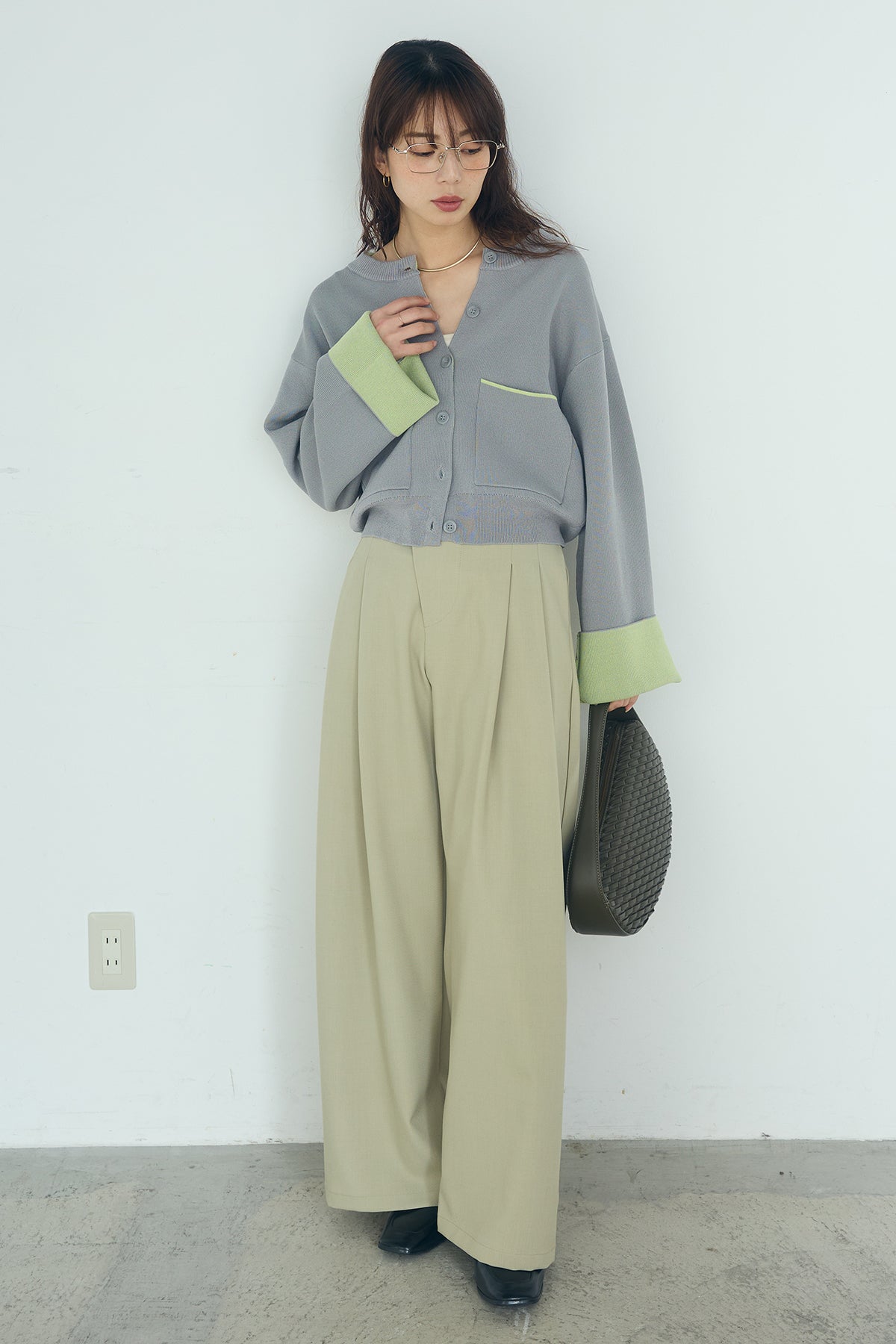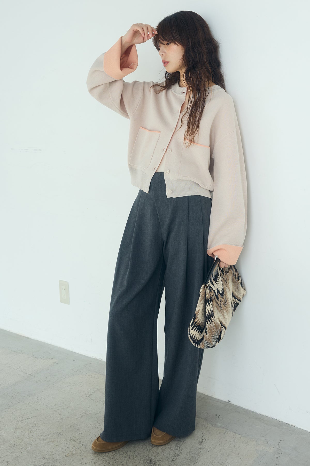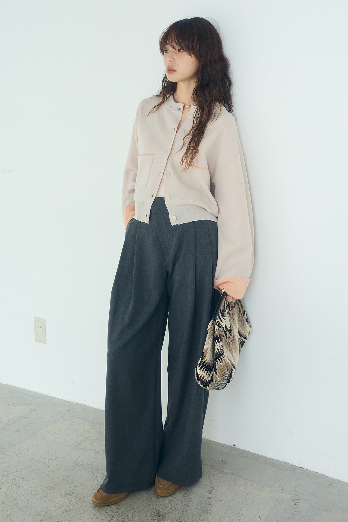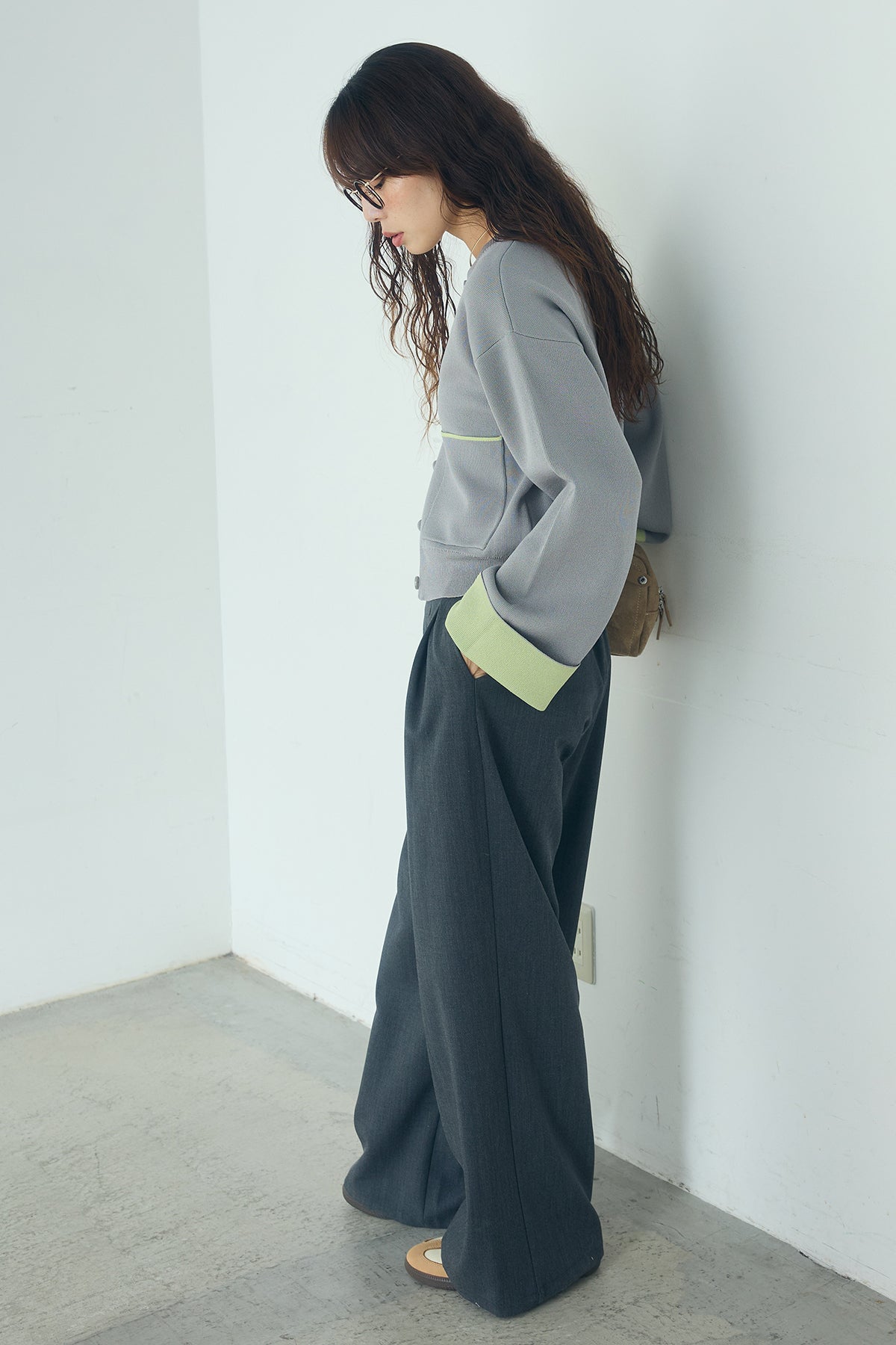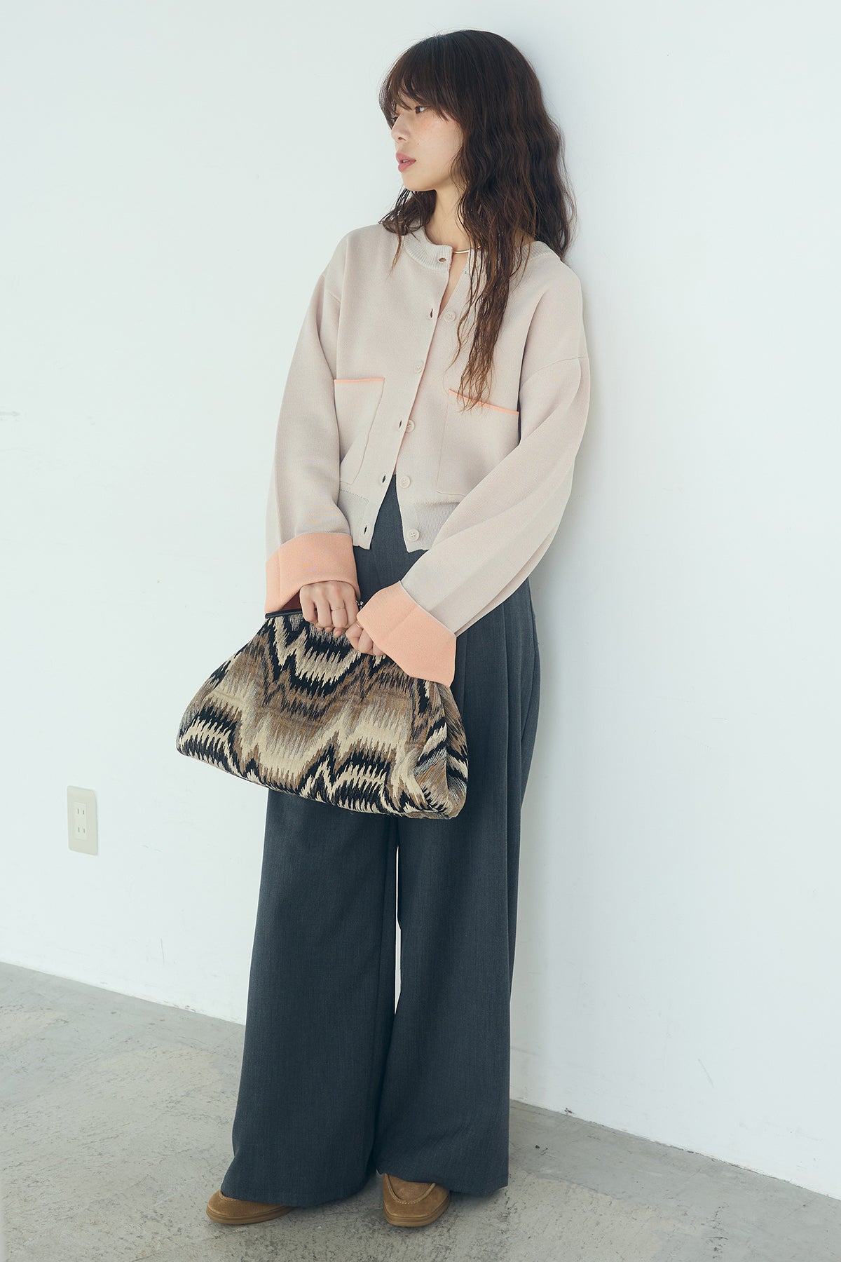 ほどよい落ち感のあるダブルフェイス仕立てが、上品な印象を引き立てるカーディガン。 配色のパイピングやカフスの切り替えが、シンプルな中にさりげないアクセントを添えています。 すっきりとした丈感で、ワイドパンツやスカートとも好相性。 きちんと感とリラックス感のバランスが取れた、日常に取り入れやすい一枚です。
