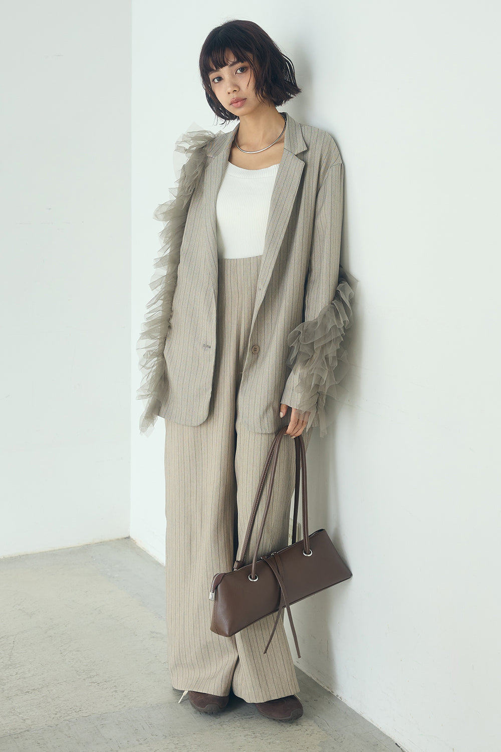 [SET]チュールヘリンボーンストライプジャケット+サイドラインスムーススウェットパンツ(2set)