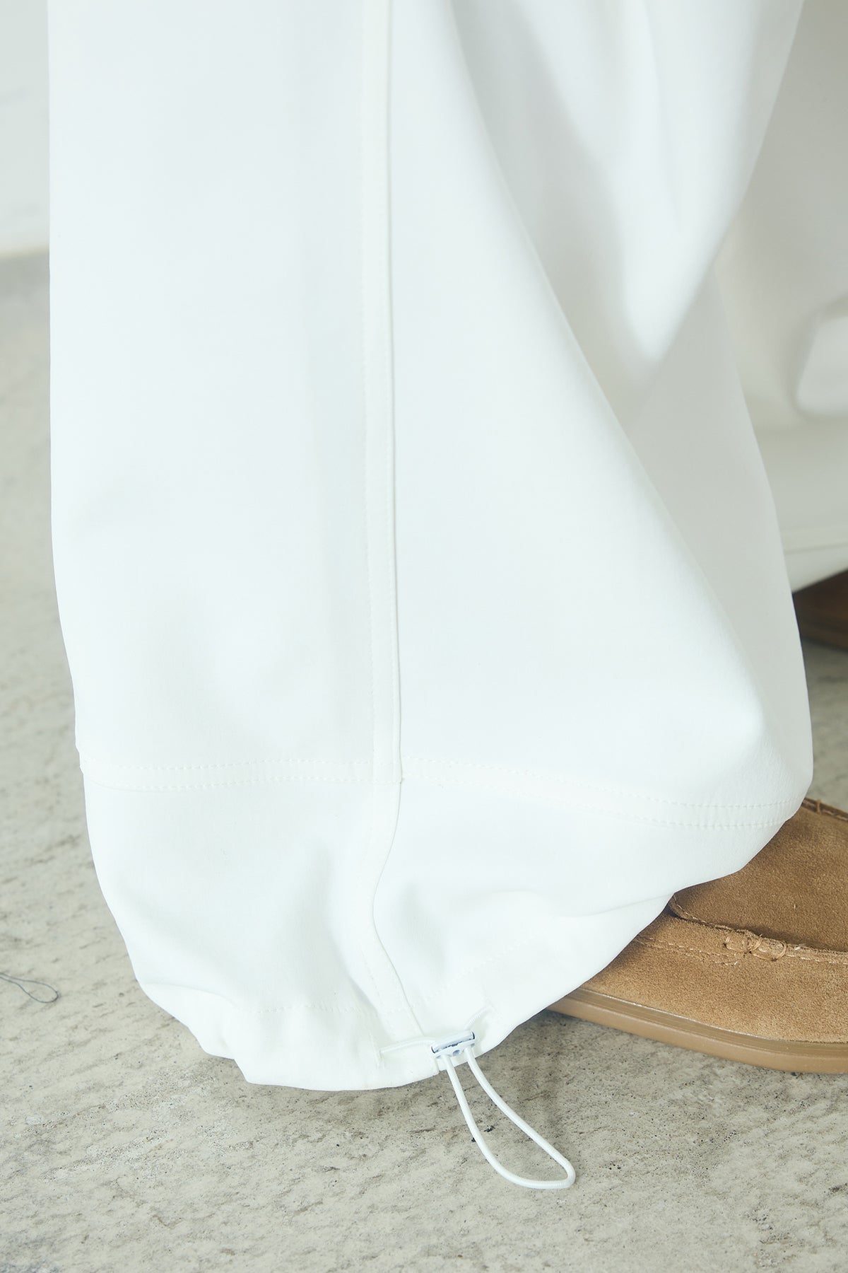 ランダムタックデザインワイドパンツ ランダムに入ったタックが立体感を生み、シンプルな中に動きのある表情を加えたワイドパンツ。 ウエストはゴムとドローコード仕様で、リラックスした穿き心地をキープしながらすっきりとしたシルエットにまとまります。落ち感のある素材がラインをきれいに見せ、トップスを選ばず合わせやすいのもポイント。日常のスタイリングに取り入れやすく、軽やかな印象で着用できる一枚です。