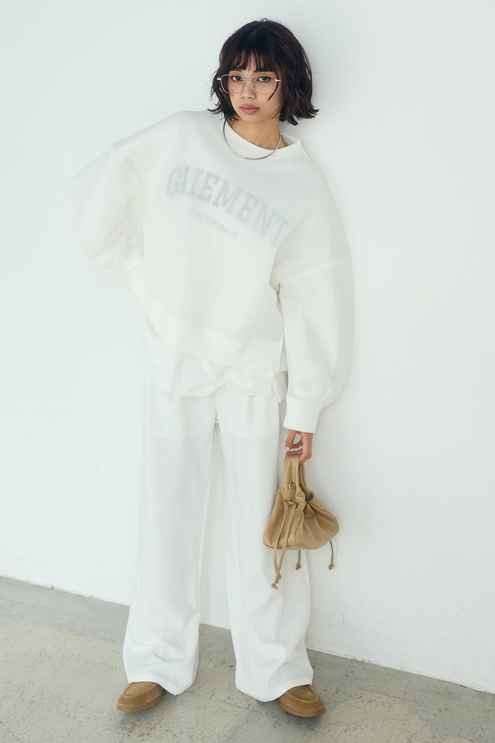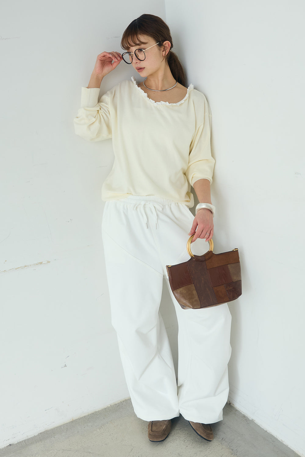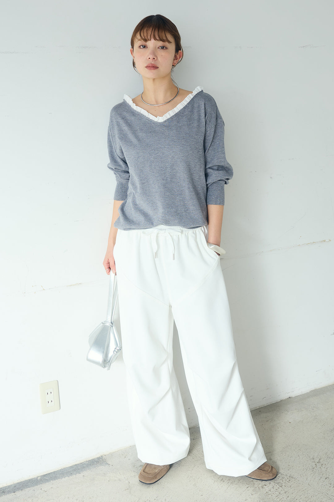 [SET]クールクール異素材コンビオフショルプルオーバー+ランダムタックデザインワイドパンツ(2set)