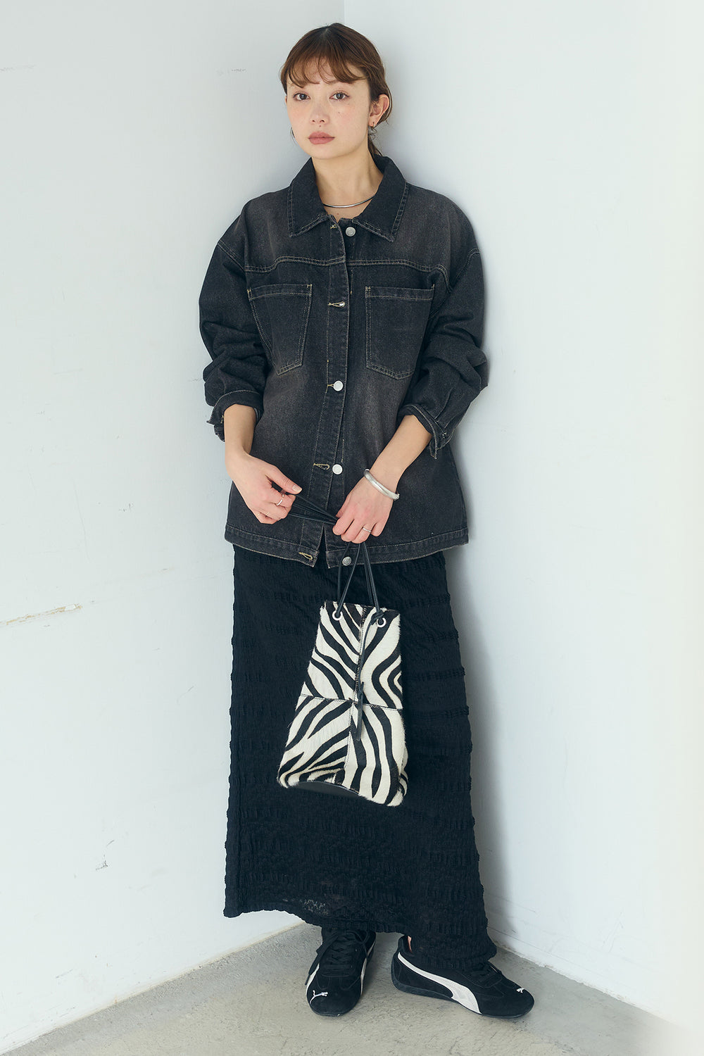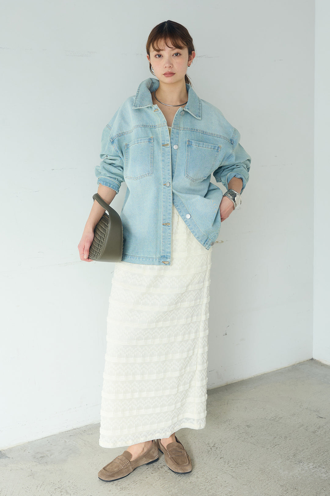 [SET]デニムオーバーサイズジャケット+ジャガードカットソータイトスカート(2set)