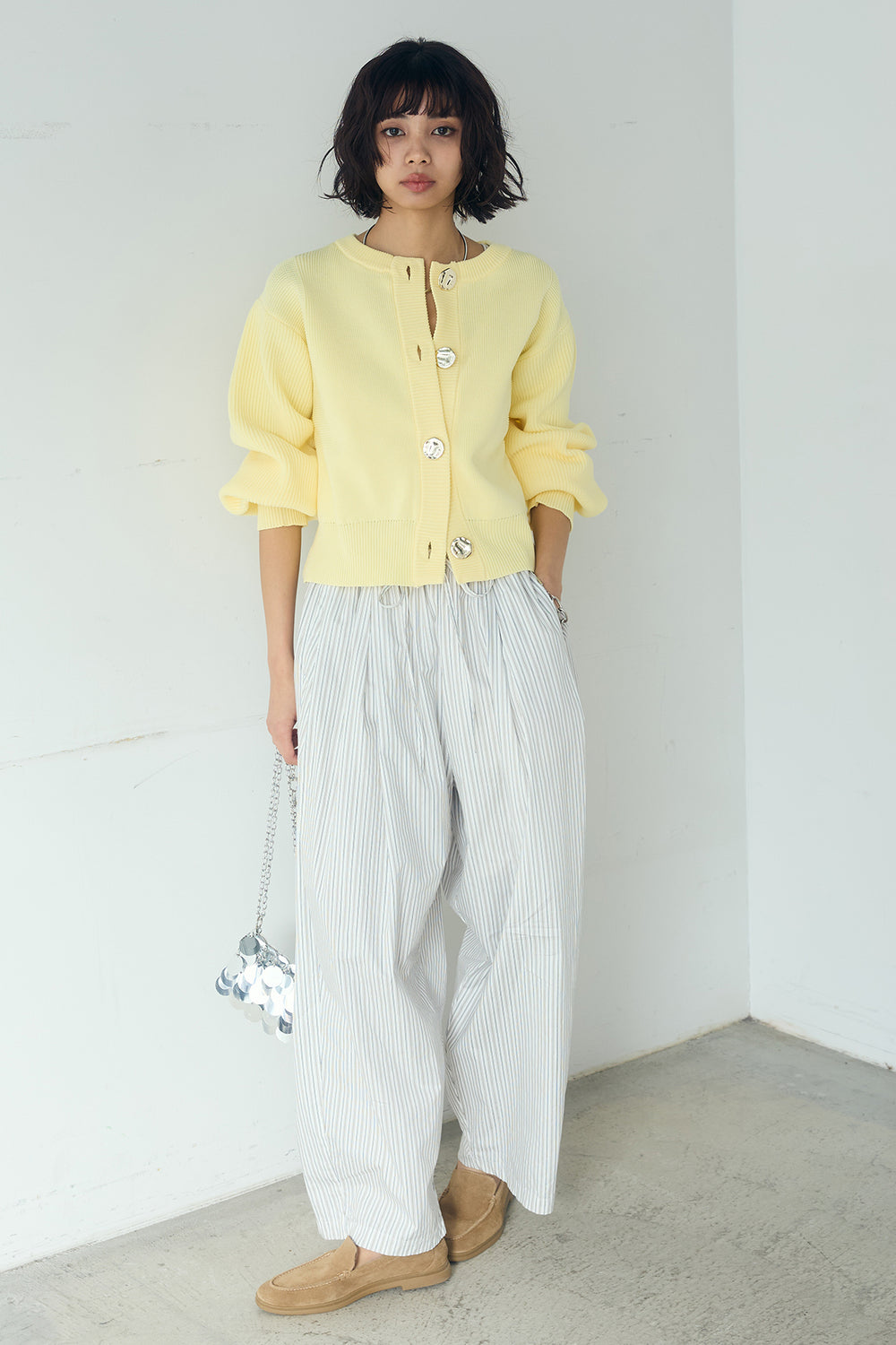 [SET]スポンディッシュBIGボタンクルーネックカーディガン+ランダムストライプタックギャザーパンツ(2set)