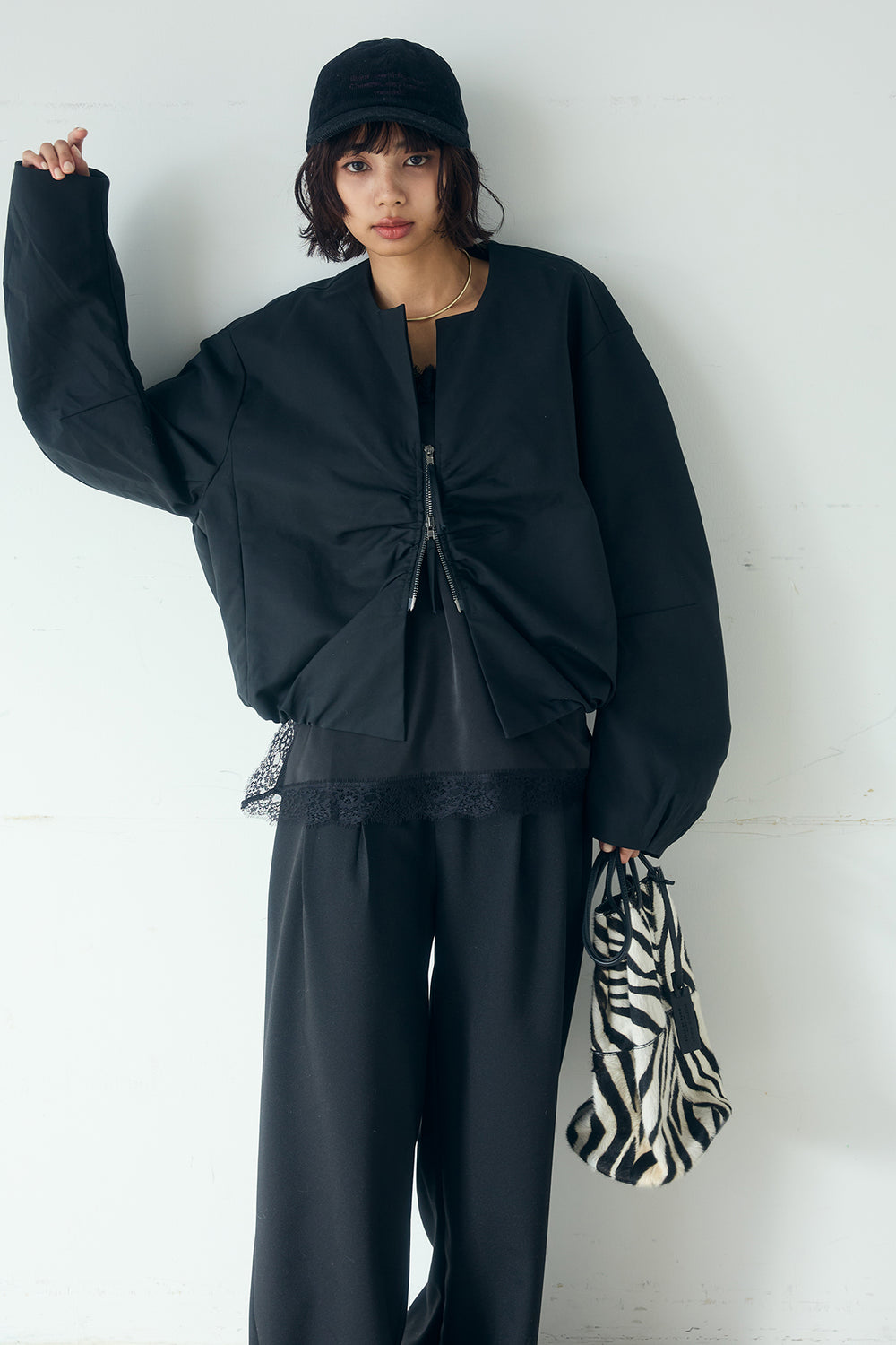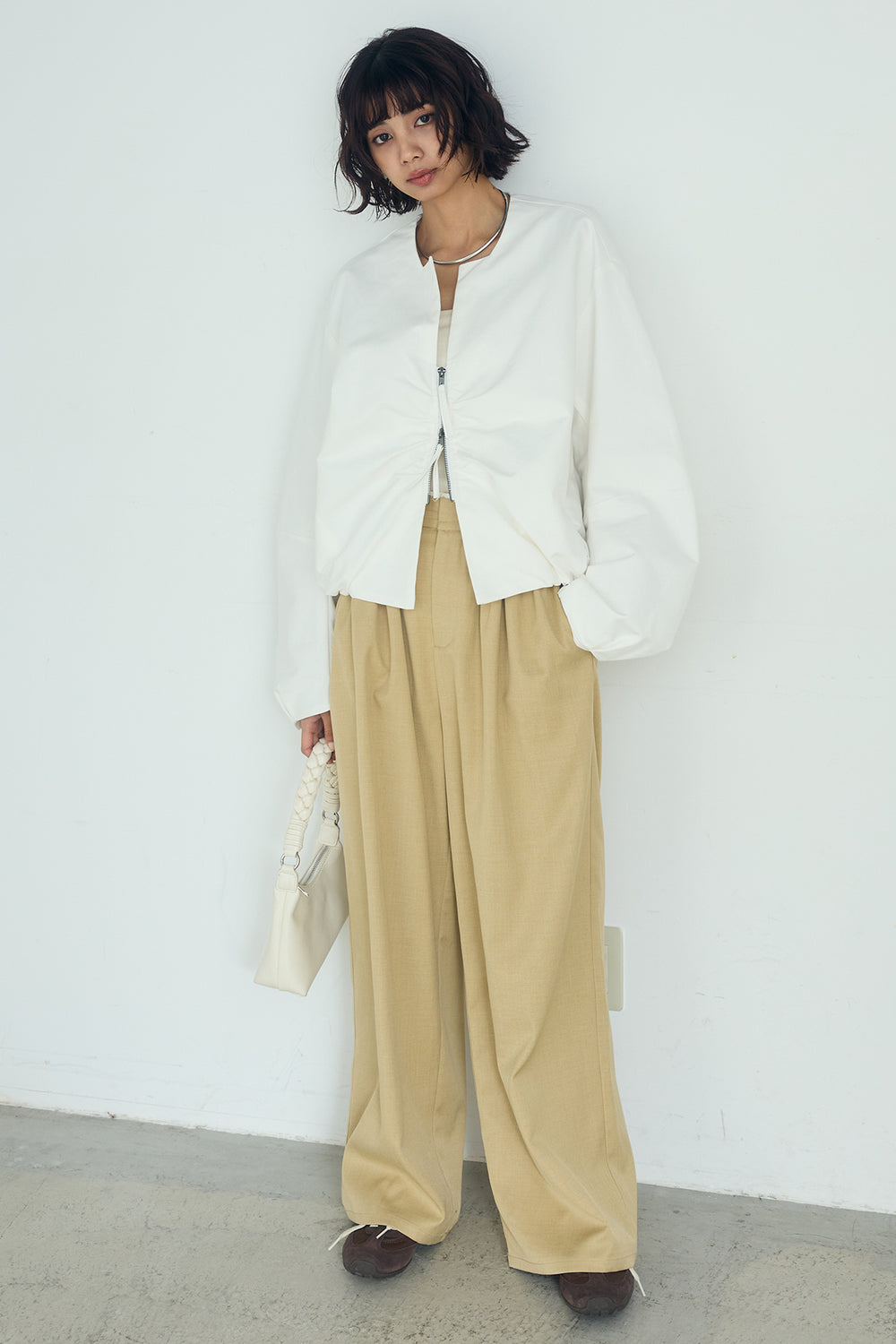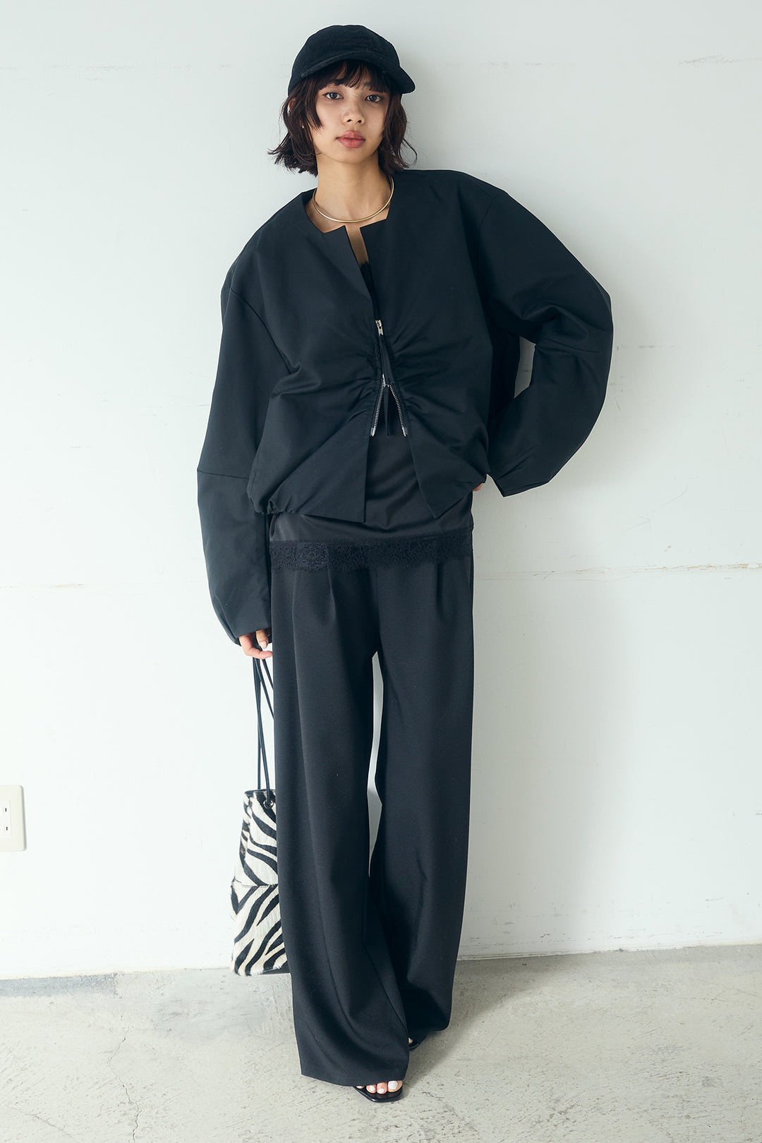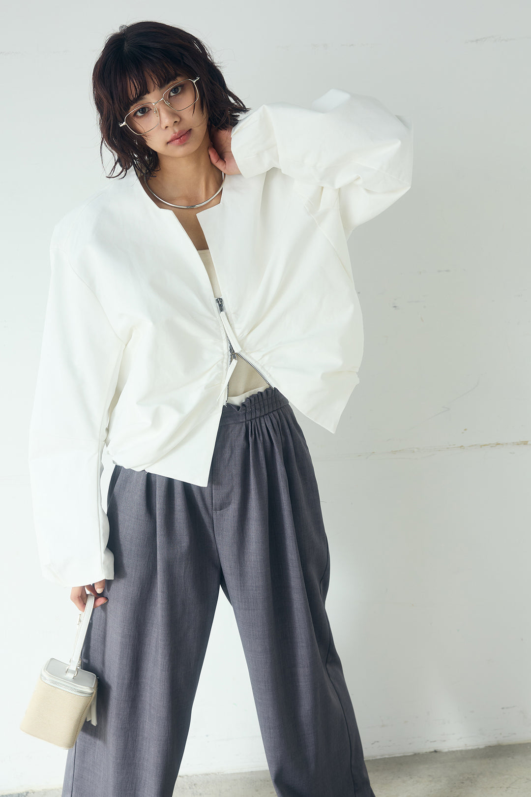[SET]ノーカラーフロントギャザージップアウター+ツイルメニータックパンツ(2set)