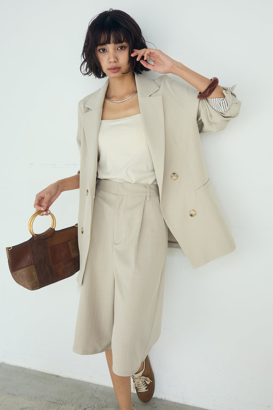 [SET]裾フリルダブルジャケット+ツイルタックハーフパンツ(2set)