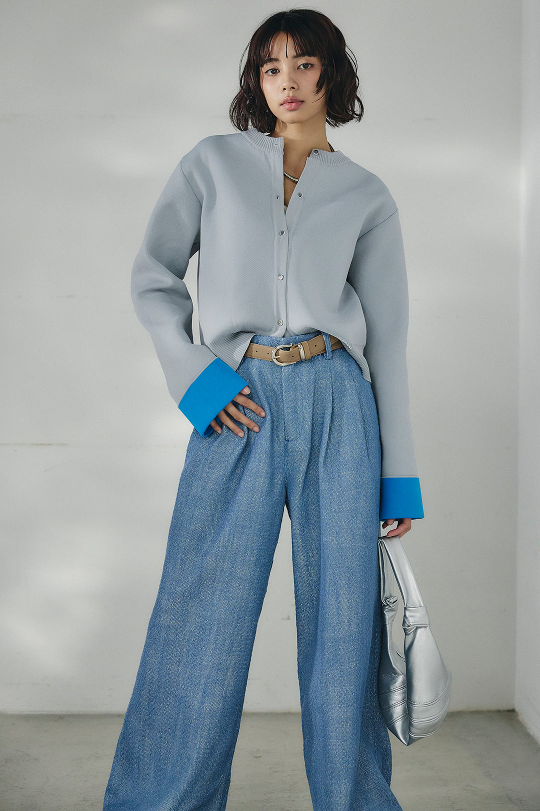 [SET]リバーシブル配色ニットカーディガン+デニムライクヘリンボーンタックパンツ(2set)