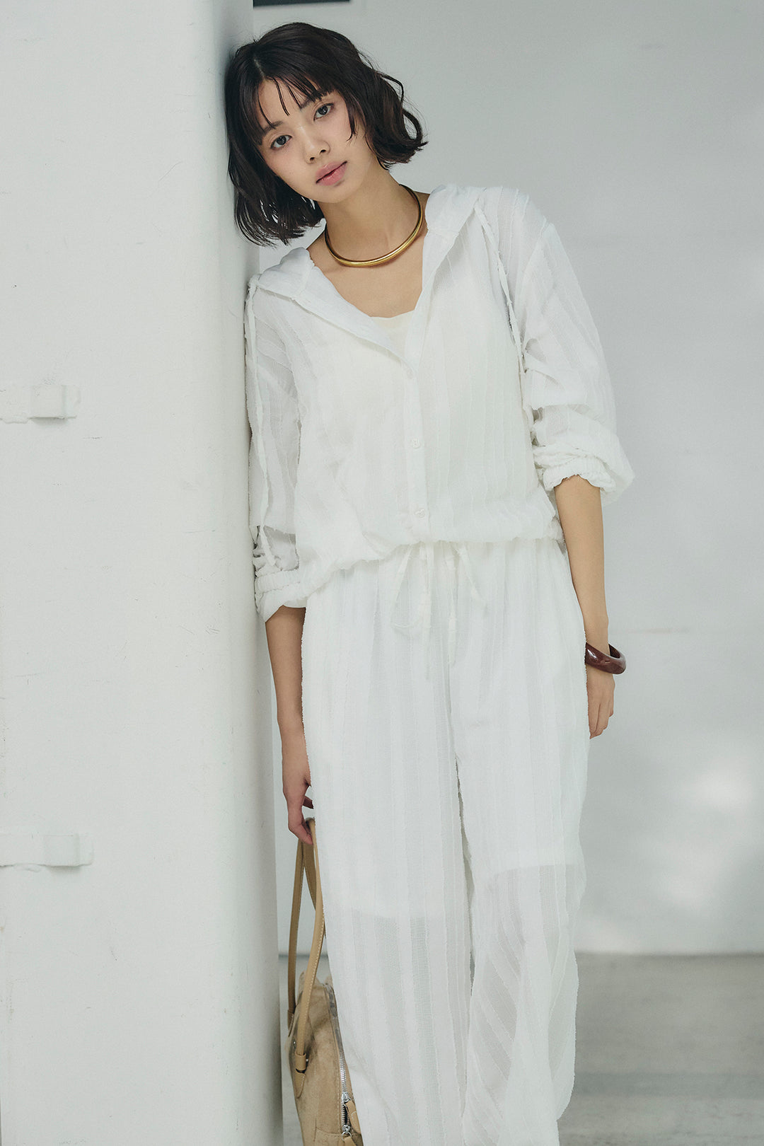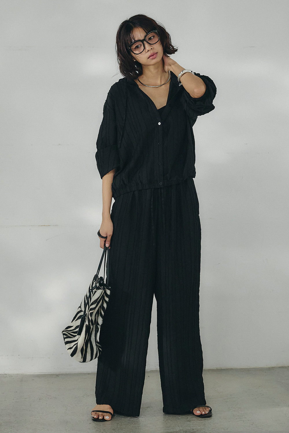 [SET]ストライプジャガードフードシャツ+ストライプジャガードロングイージーパンツ(2set)