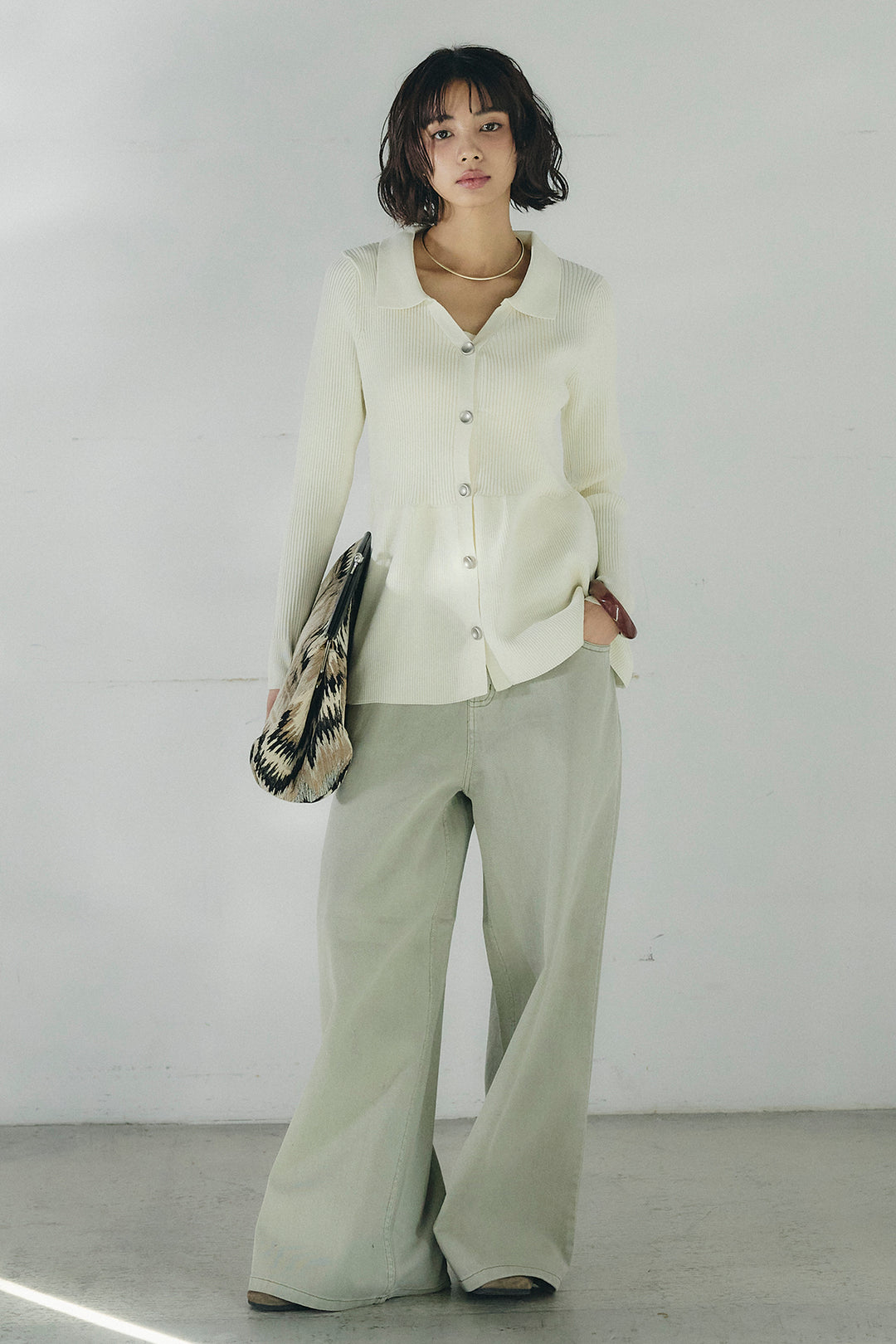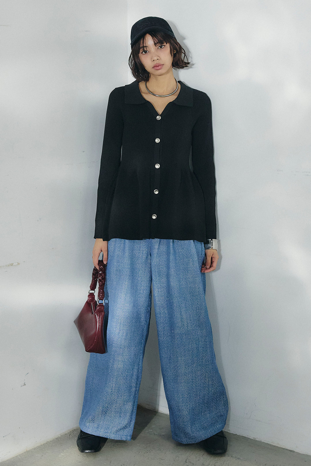 [SET]スキッパーペプラムニット+ウエスト裁ち切りデニムワイドパンツ(2set)