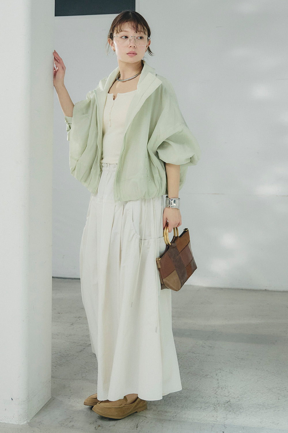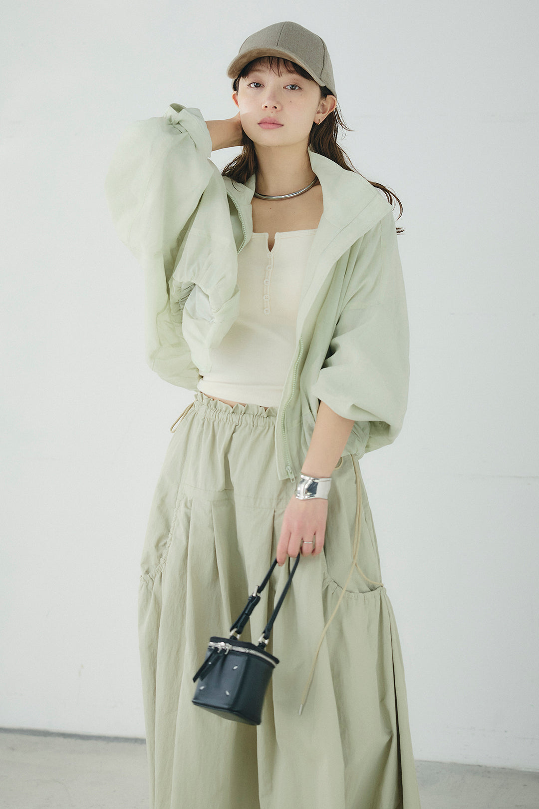 [SET]スタンドネックシアーブルゾン+ナイロンデザインフレアスカート(2set)