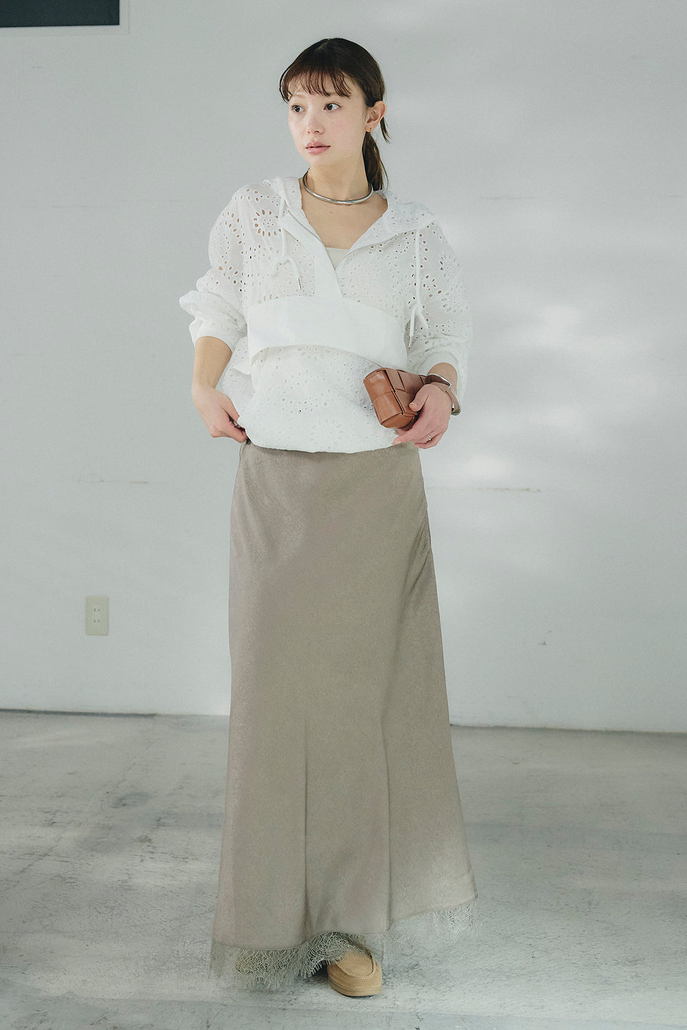 [SET]レースハーフジップアップフーディー+バイアスナローサテンスカート(2set)
