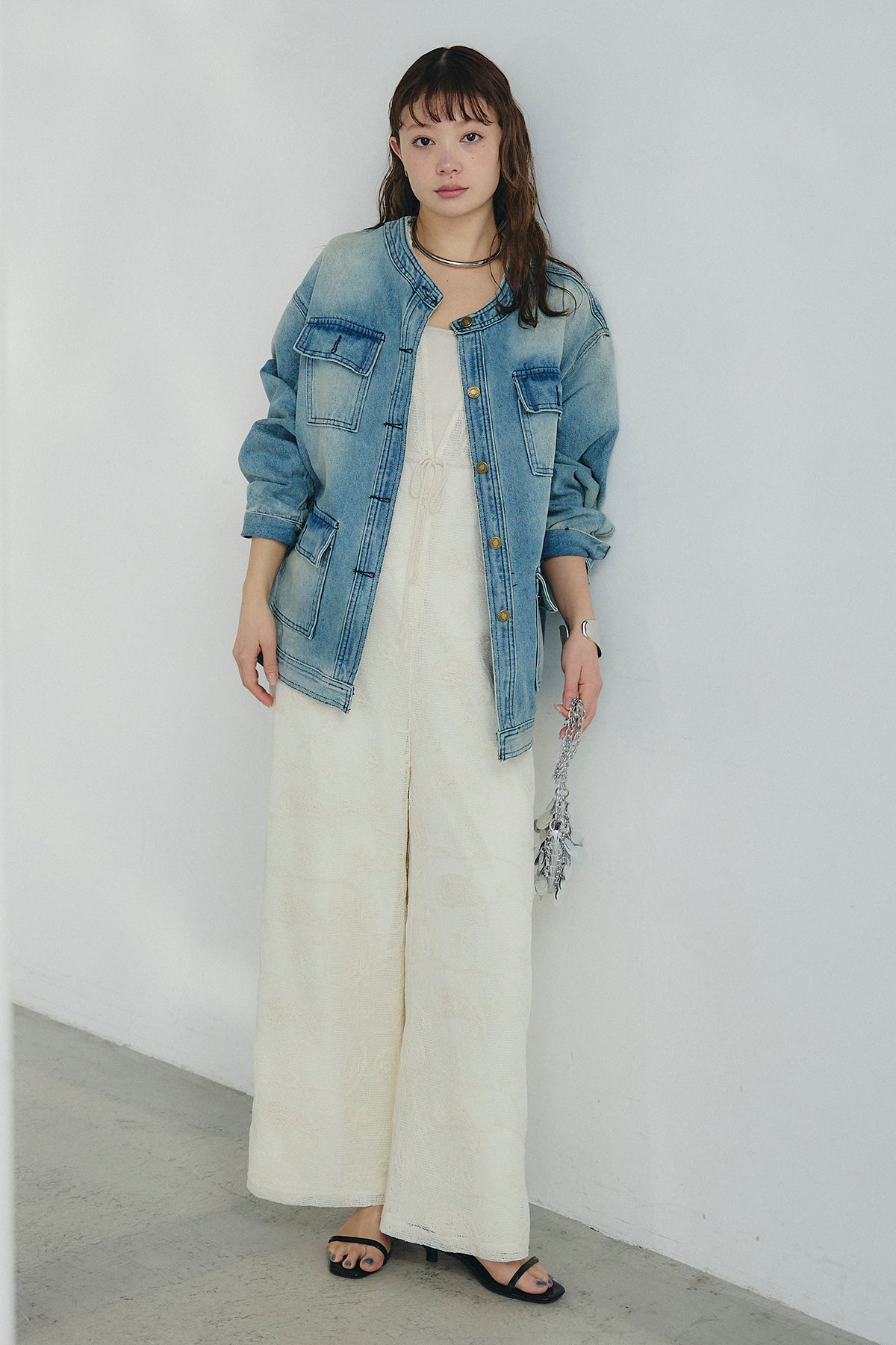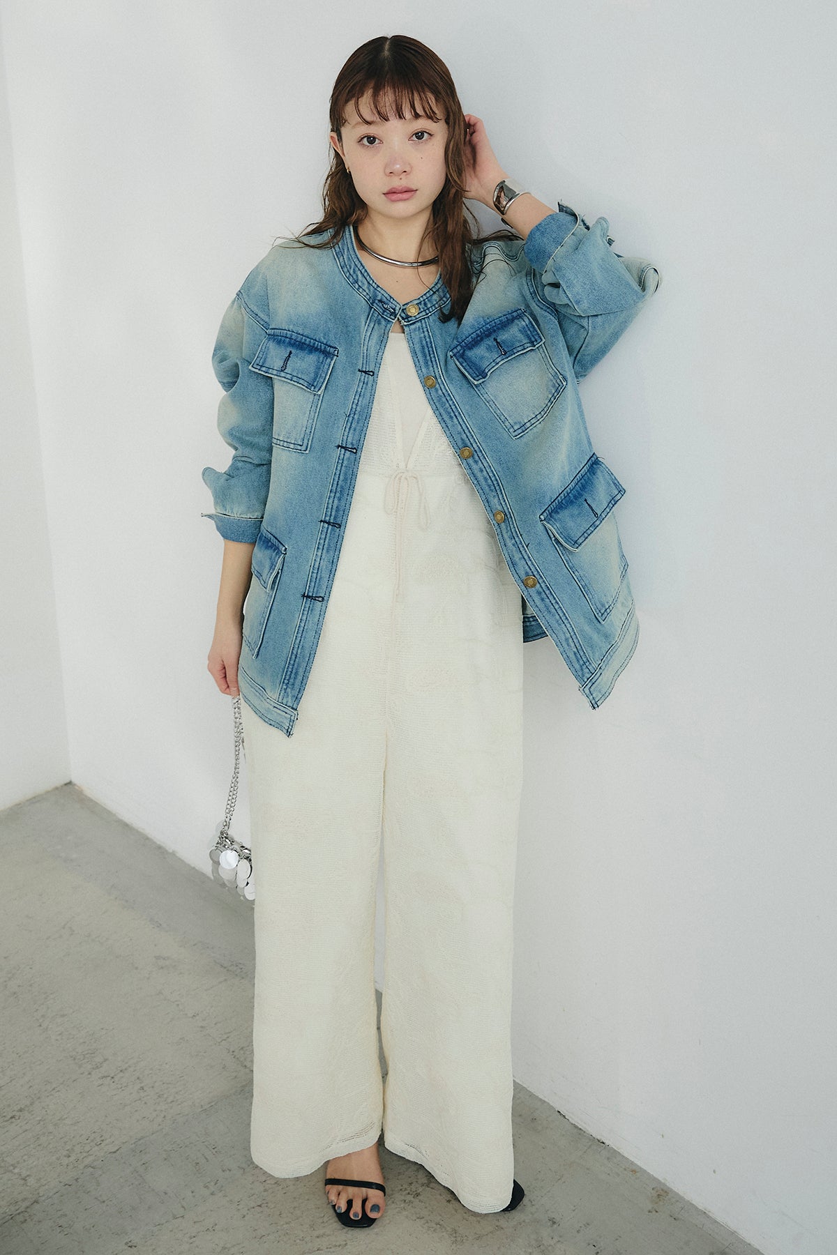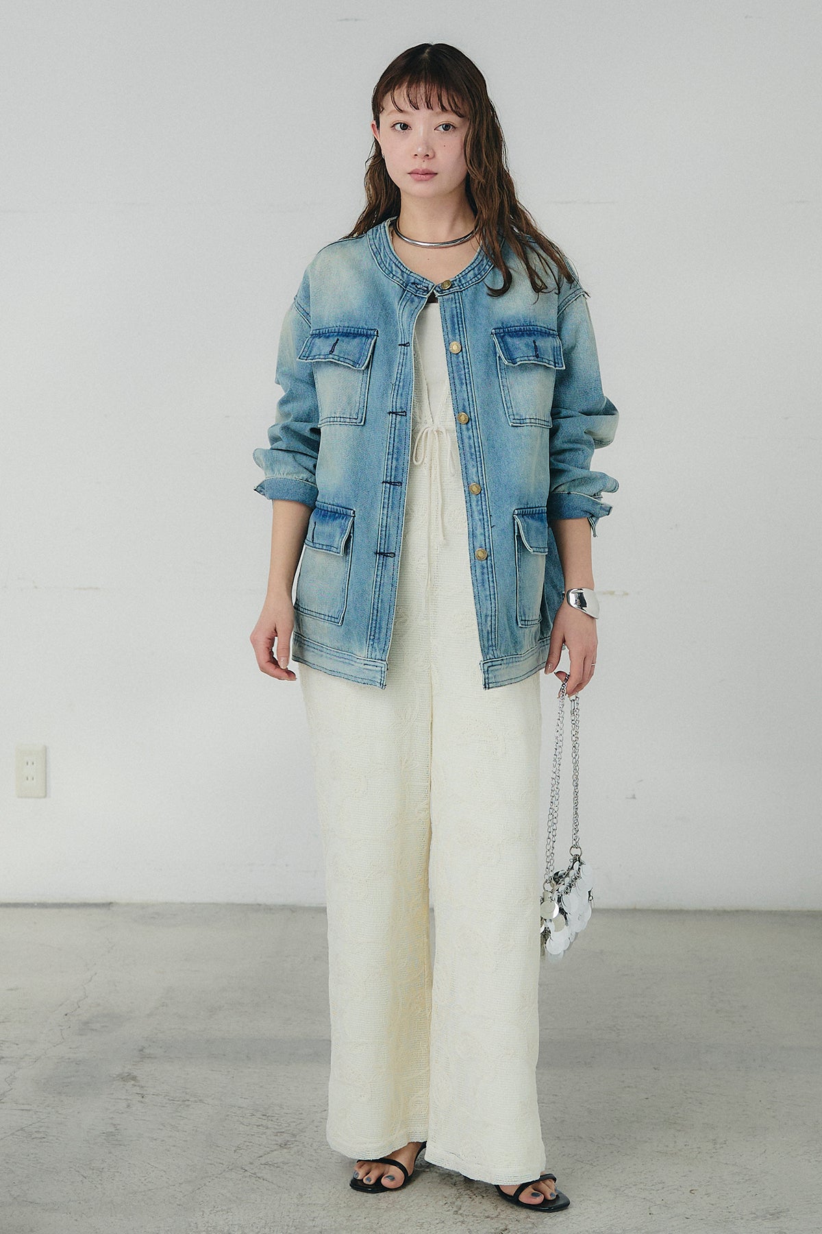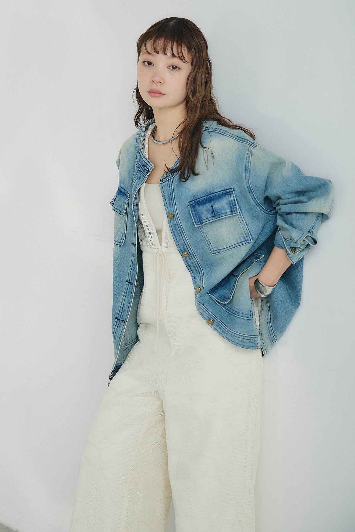 ノーカラーデニムポケットジャケットの他のセットページはこちら