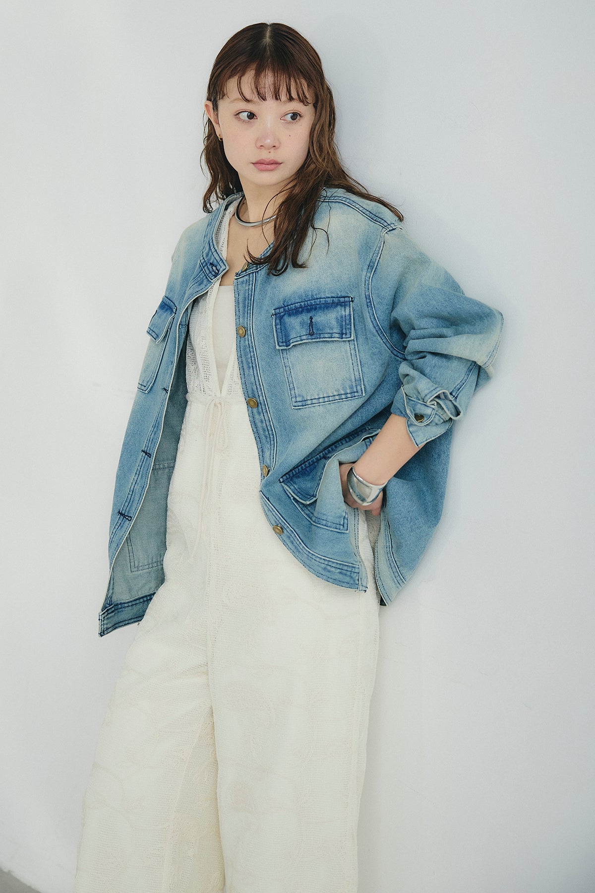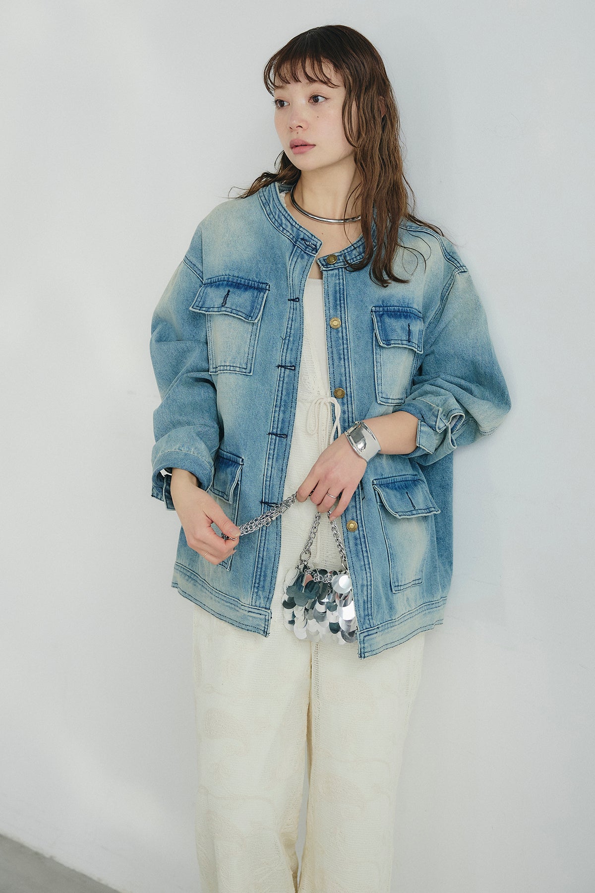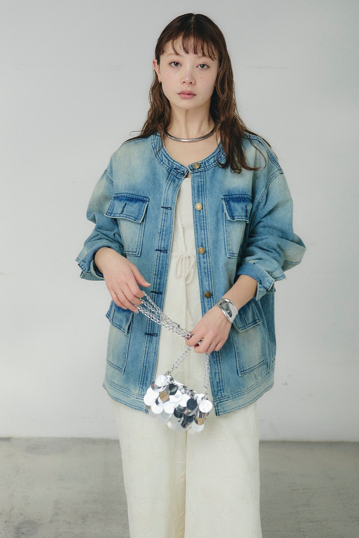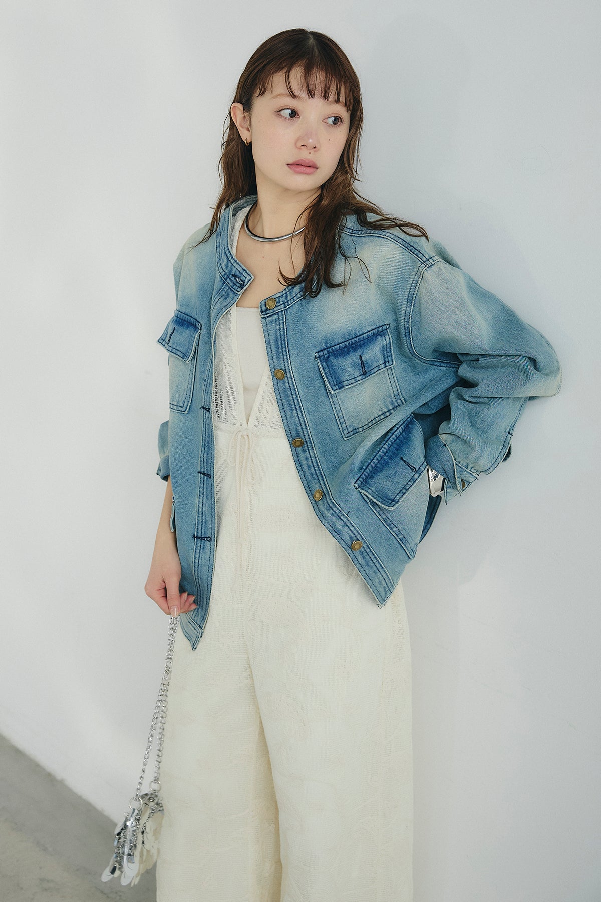 ノーカラーデニムポケットジャケットの他のセットページはこちら
