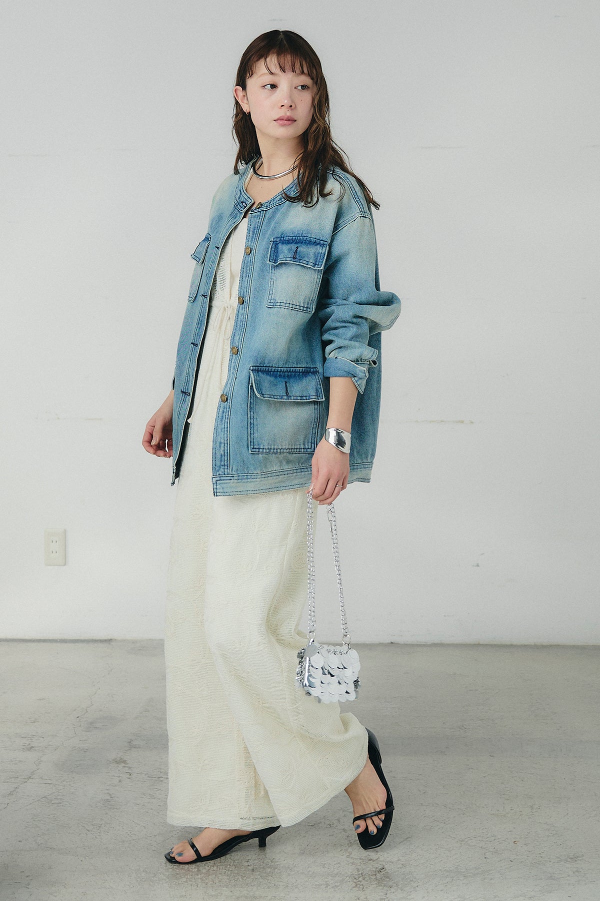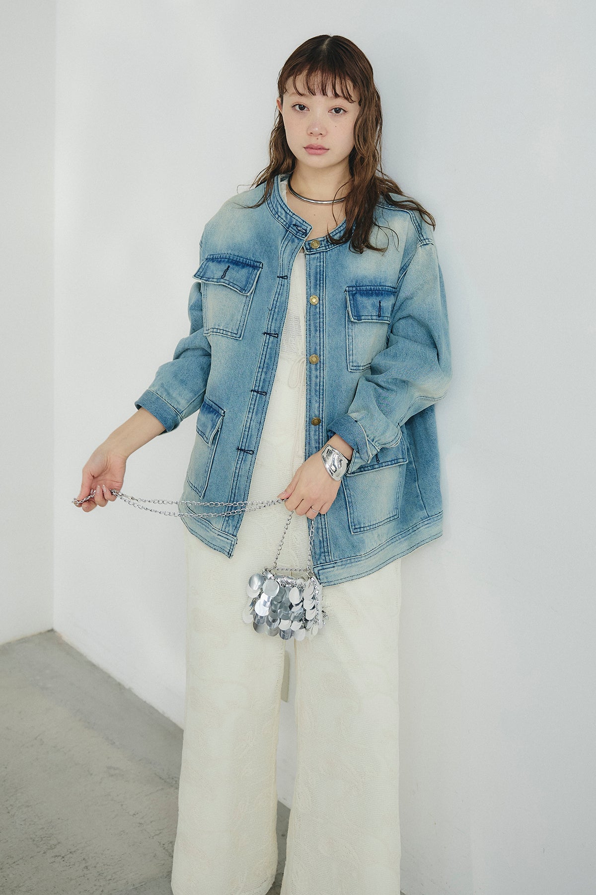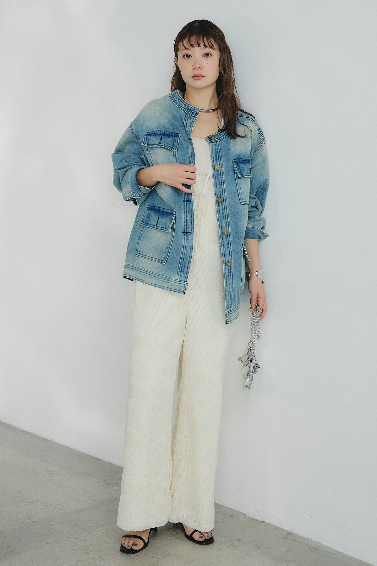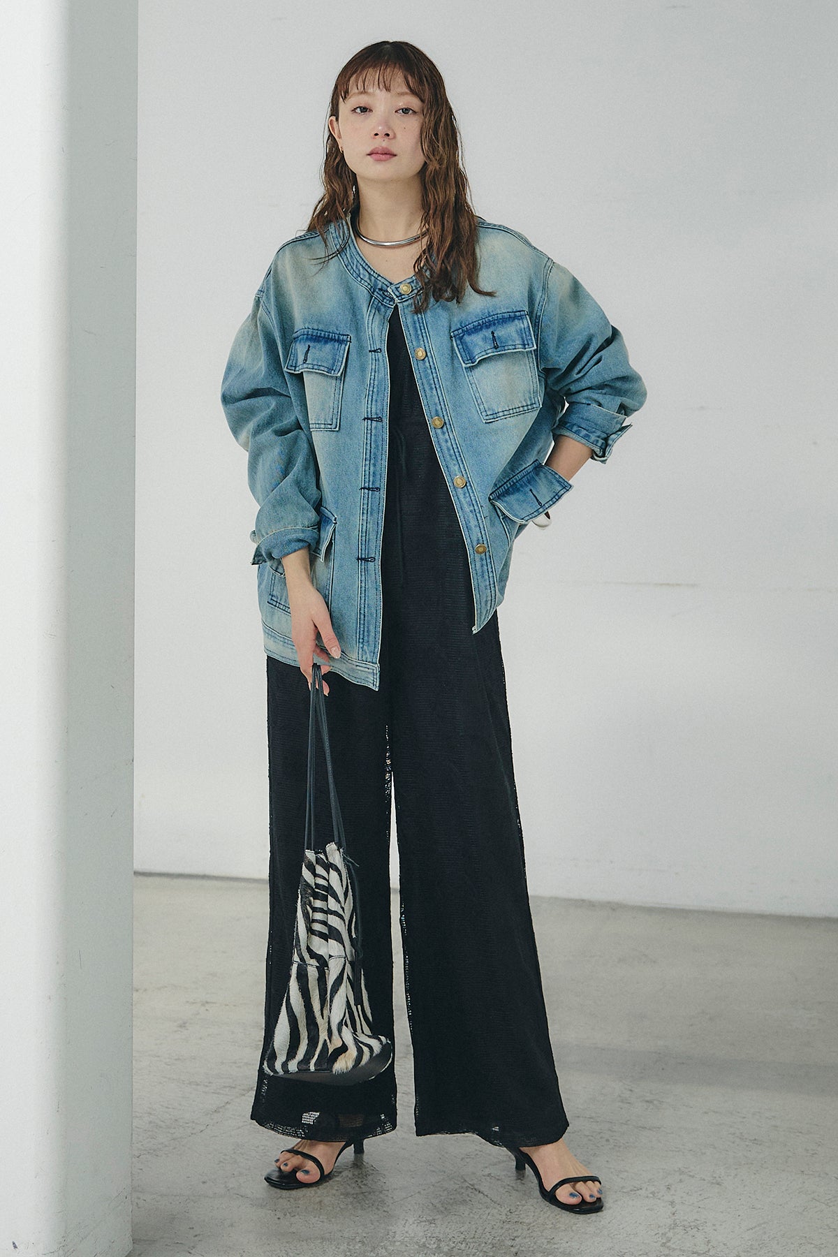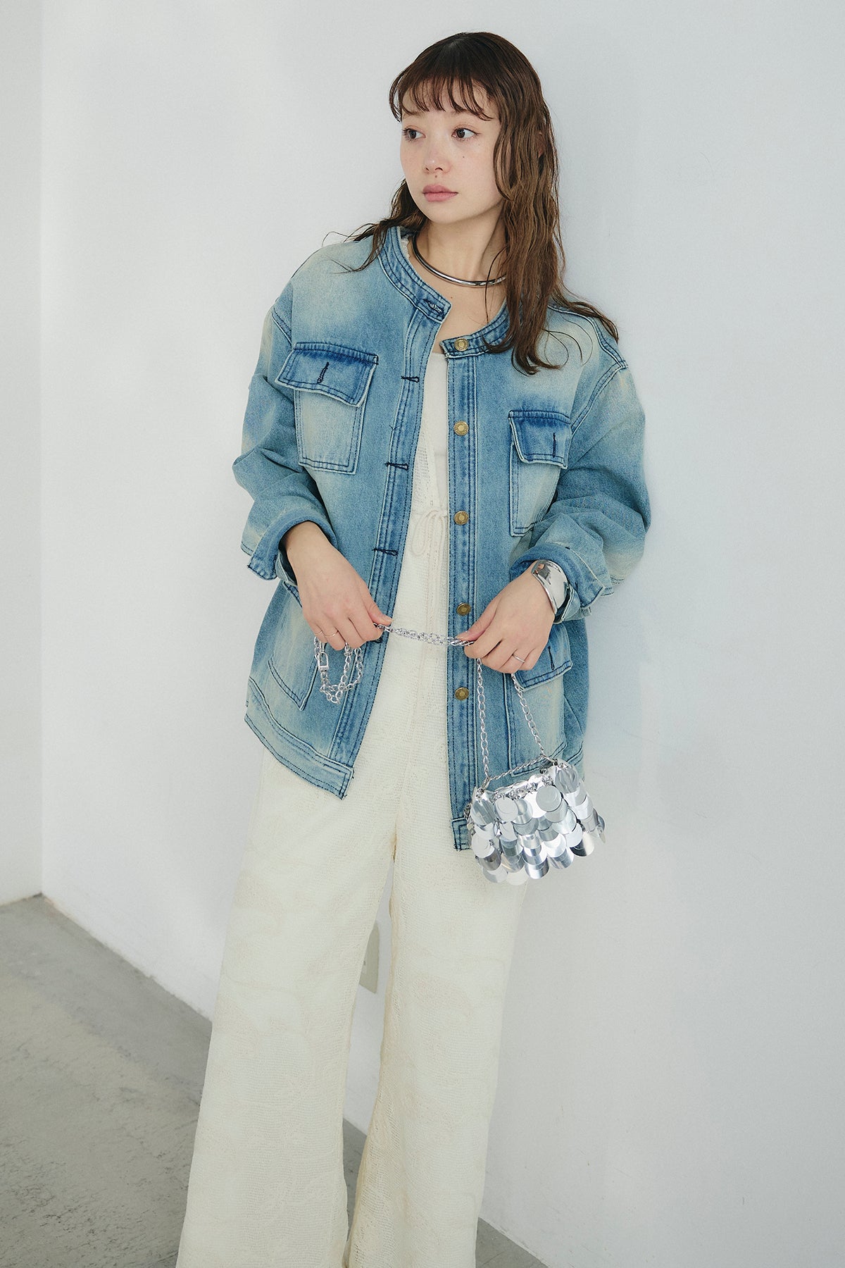 ノーカラーデニムポケットジャケットの他のセットページはこちら