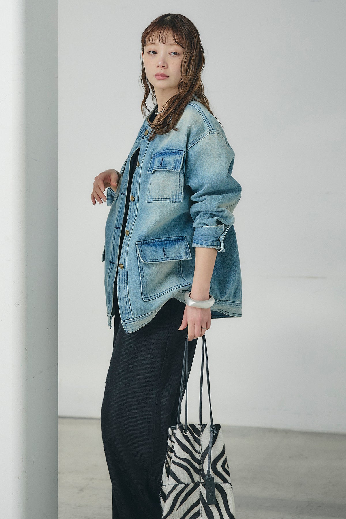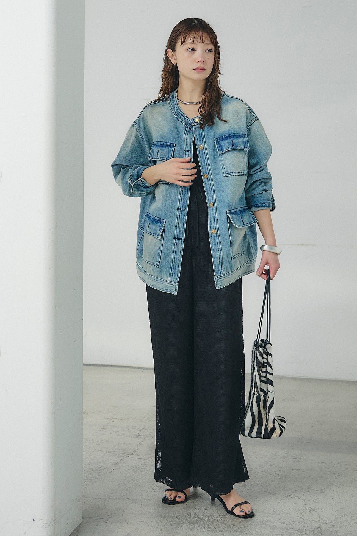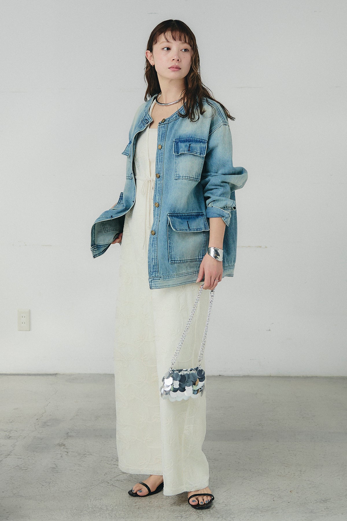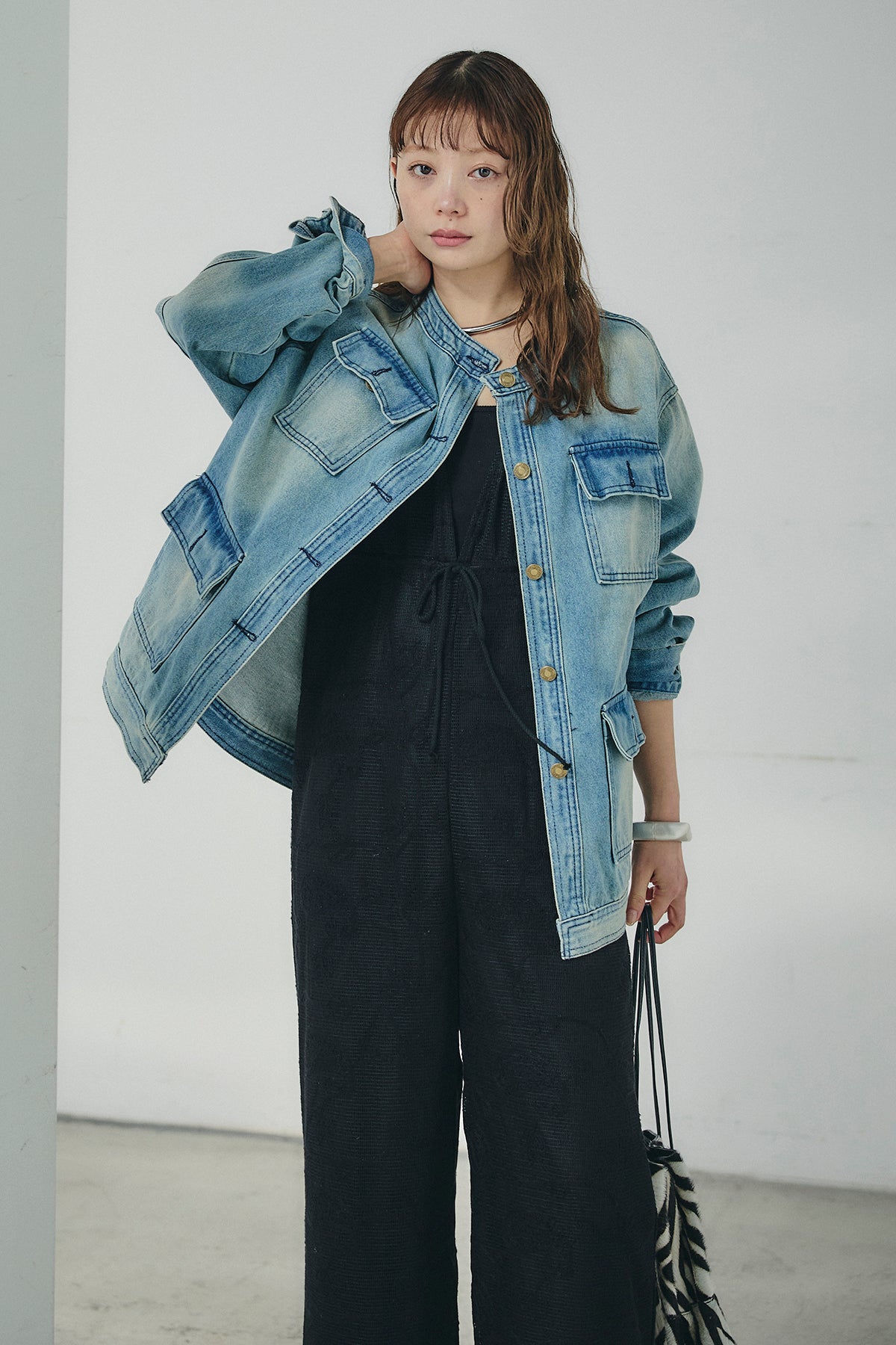 ノーカラーデニムポケットジャケットの他のセットページはこちら
