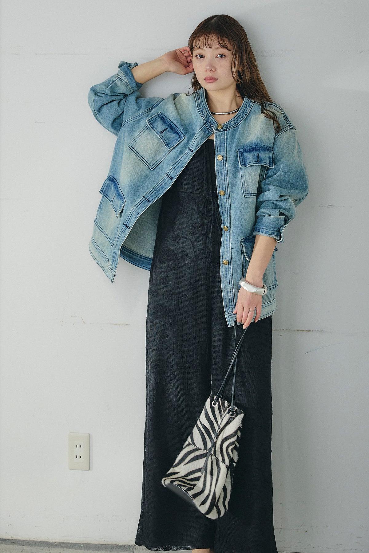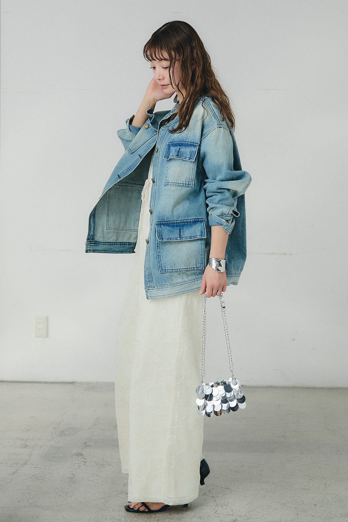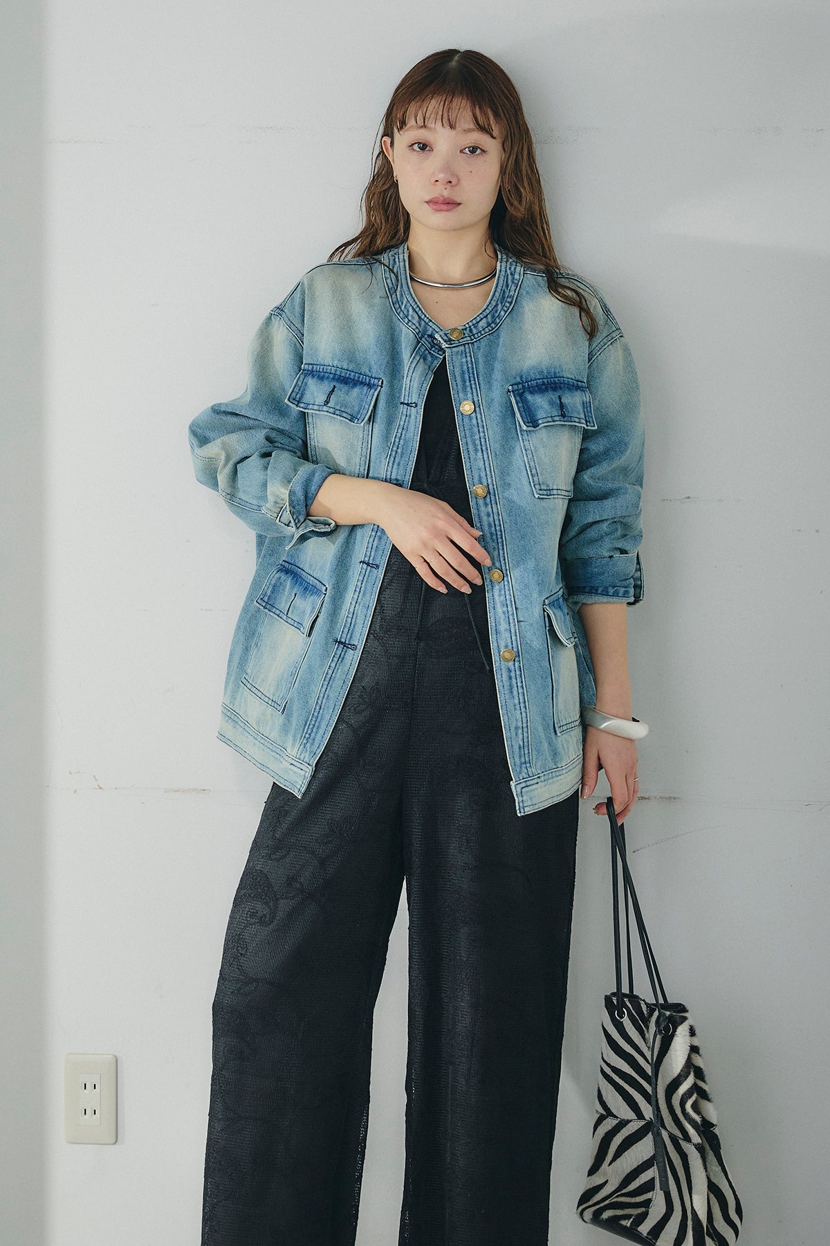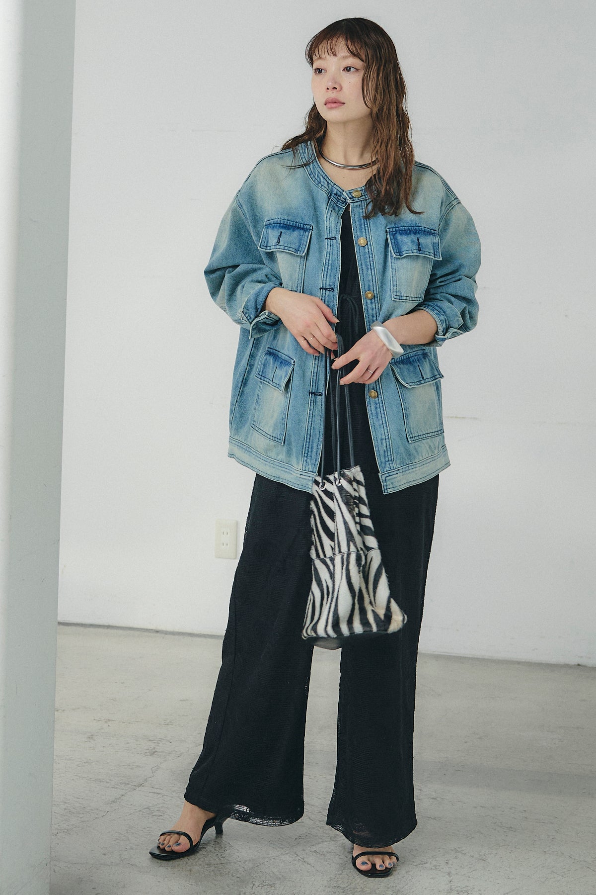 ノーカラーデニムポケットジャケットの他のセットページはこちら