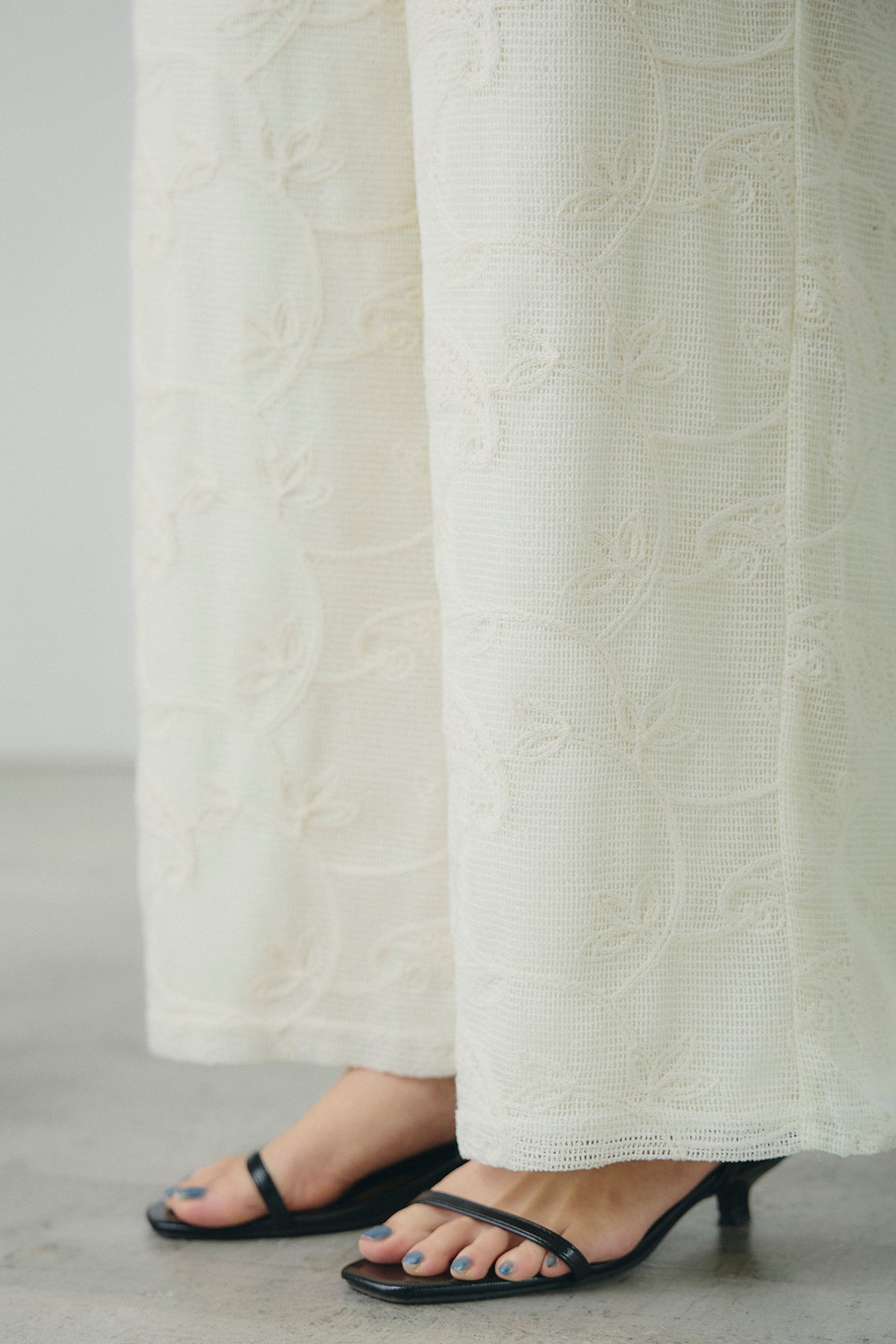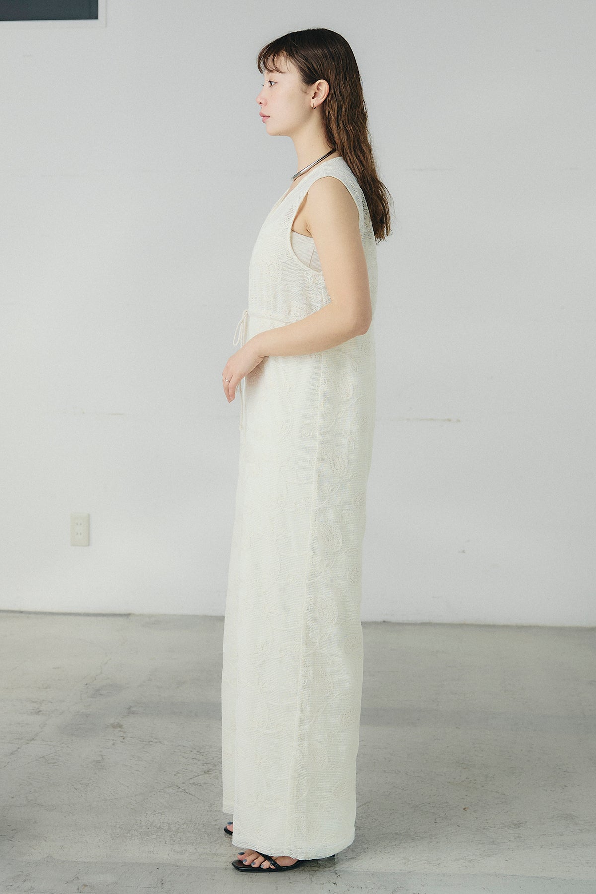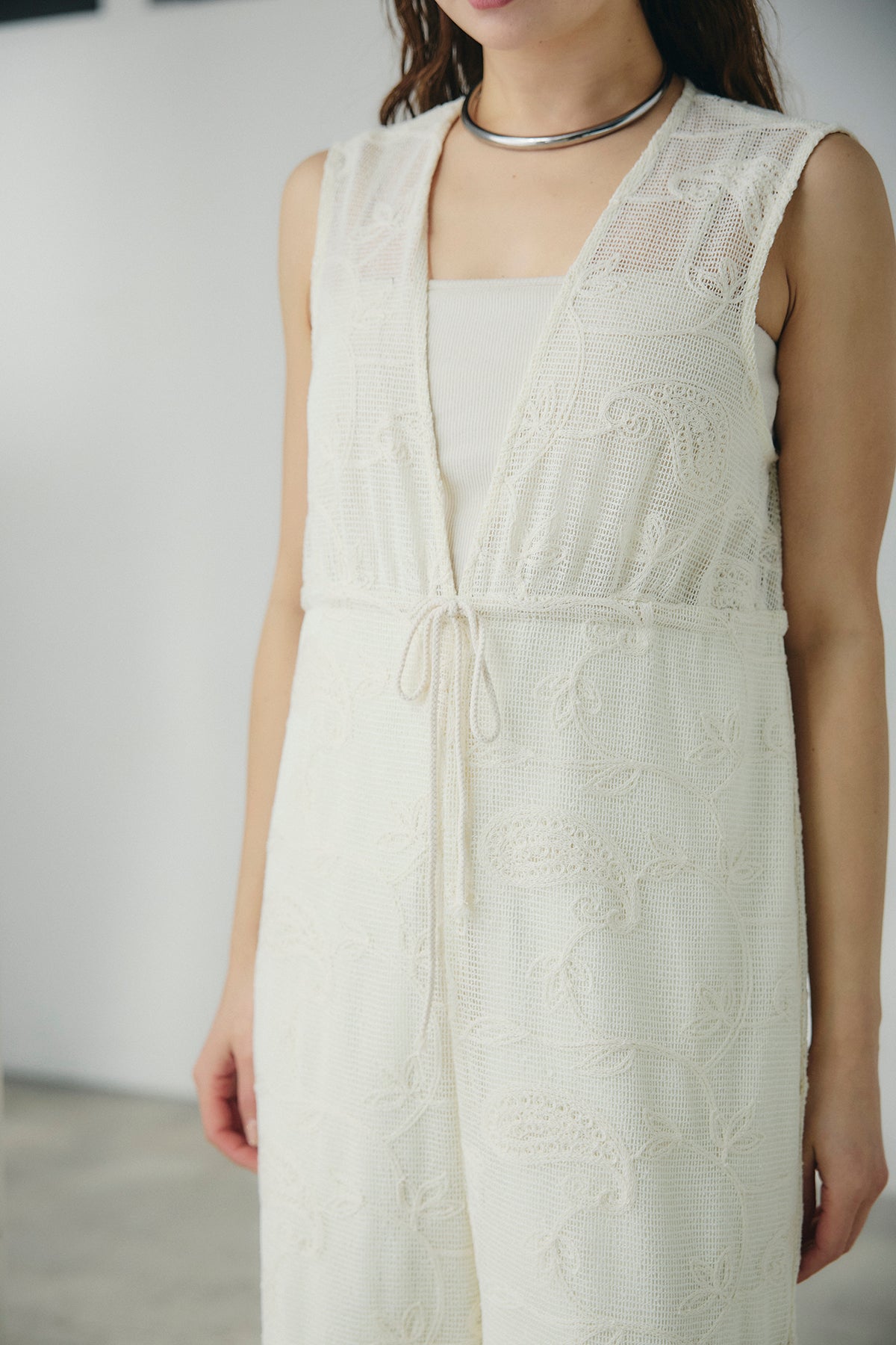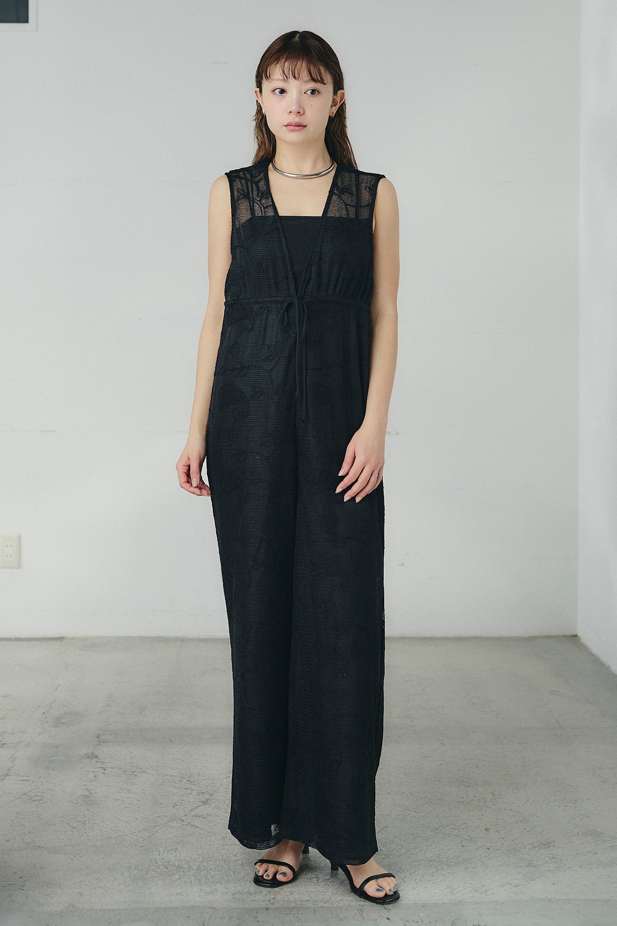 繊細なレース素材が印象的なサロペット。奥行きのある表情がスタイリングに軽やかさを添え、シンプルなインナーと合わせるだけで存在感のある着こなしが完成します。すっきりとしたVネックラインが顔まわりをシャープに見せ、縦のラインを強調するストレートシルエットがバランスよくまとまる一着に。ほどよくゆとりのあるフォルムでリラックスした着心地を叶えながら、きれいめな印象も兼ね備えています。タンクトップやシアートップス、シャツとのレイヤードも楽しめ、日常からお出かけシーンまで幅広く活躍します。