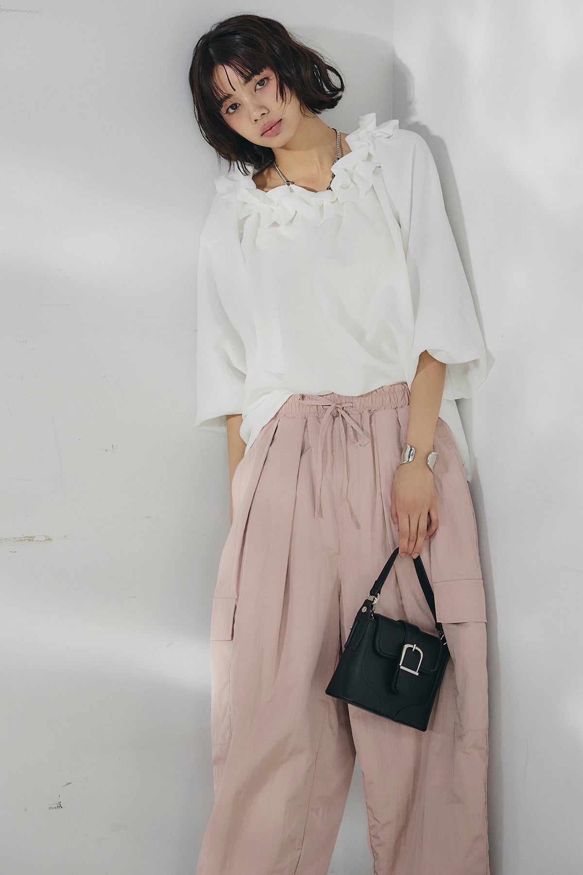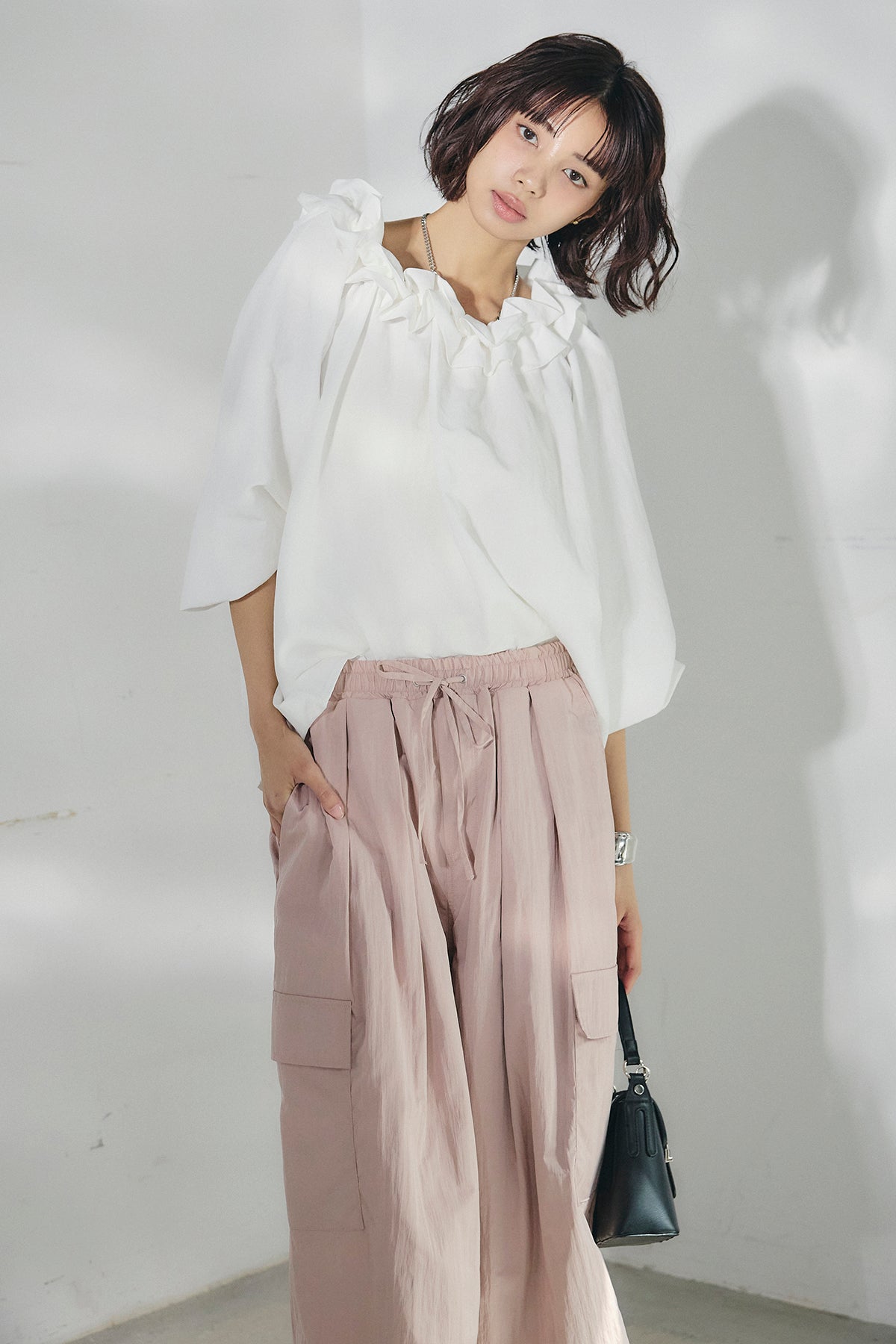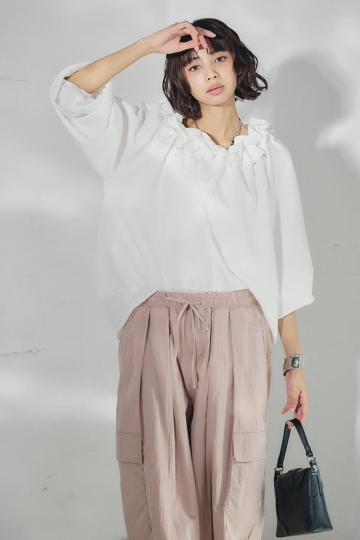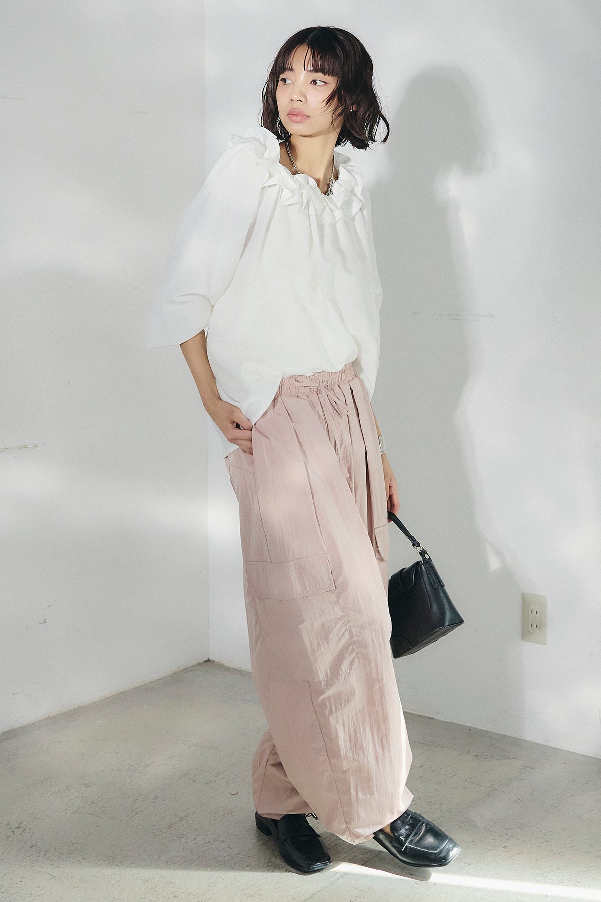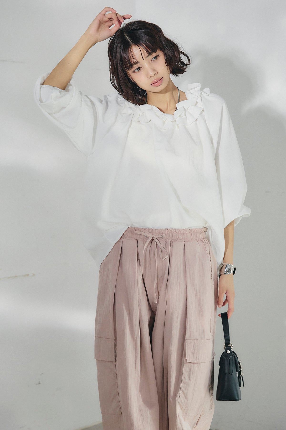 [SET]ネックフリルデザインブラウス+撥水ジョガーパンツ(2set)