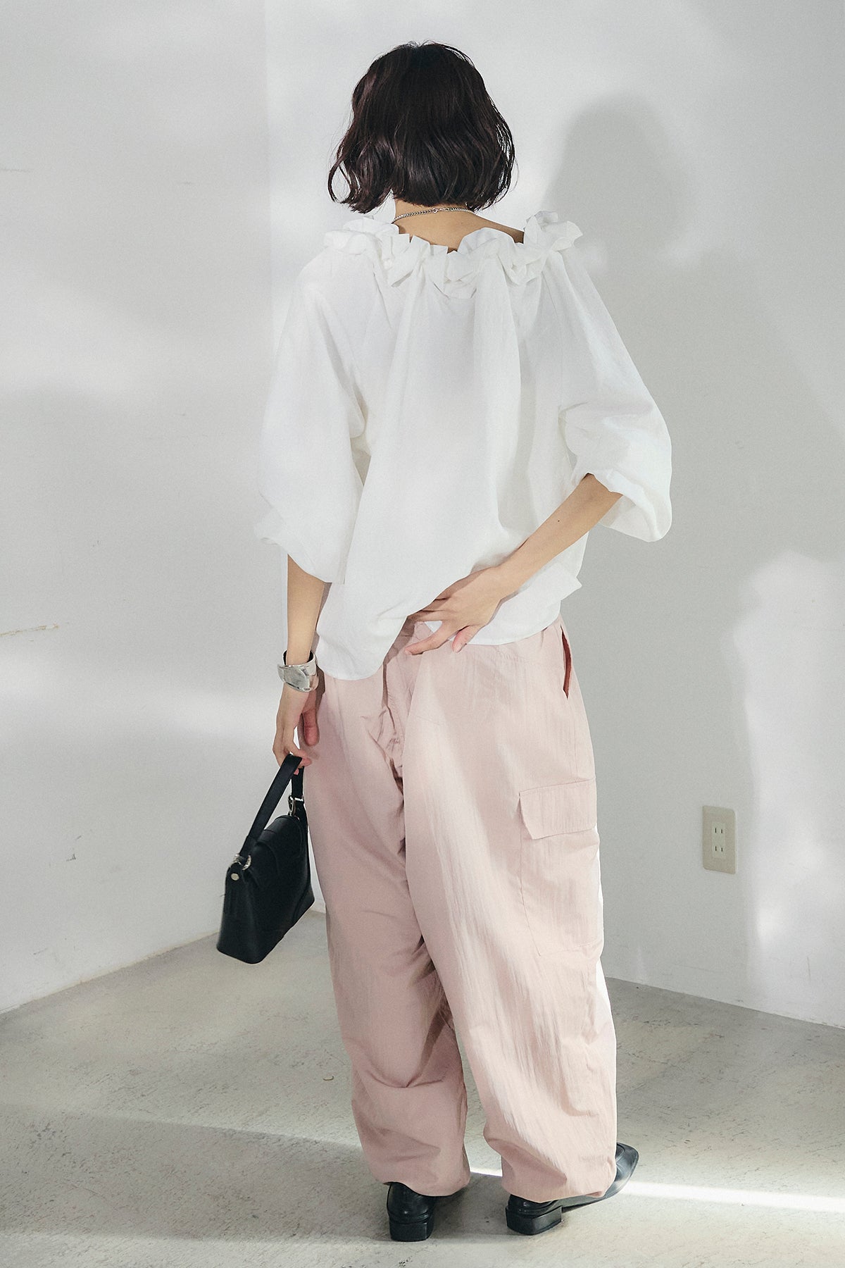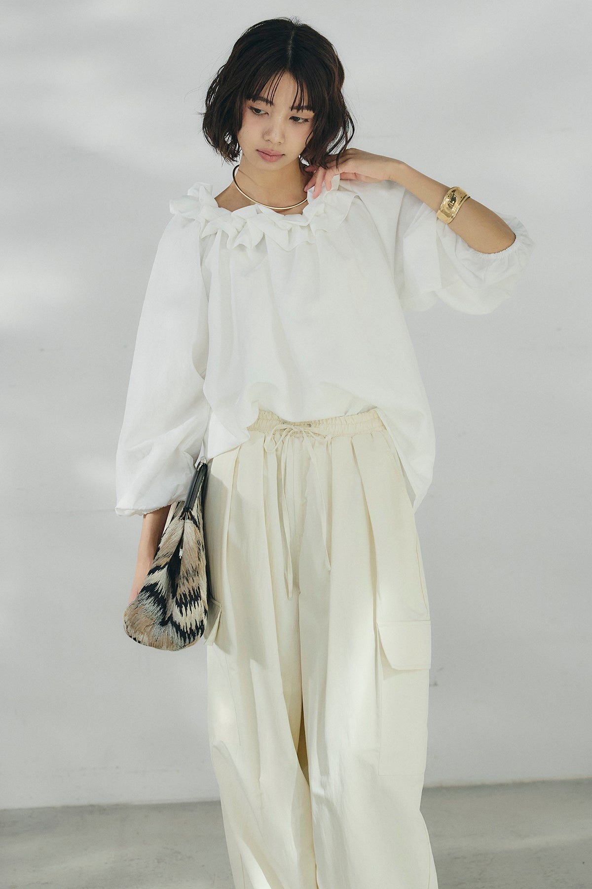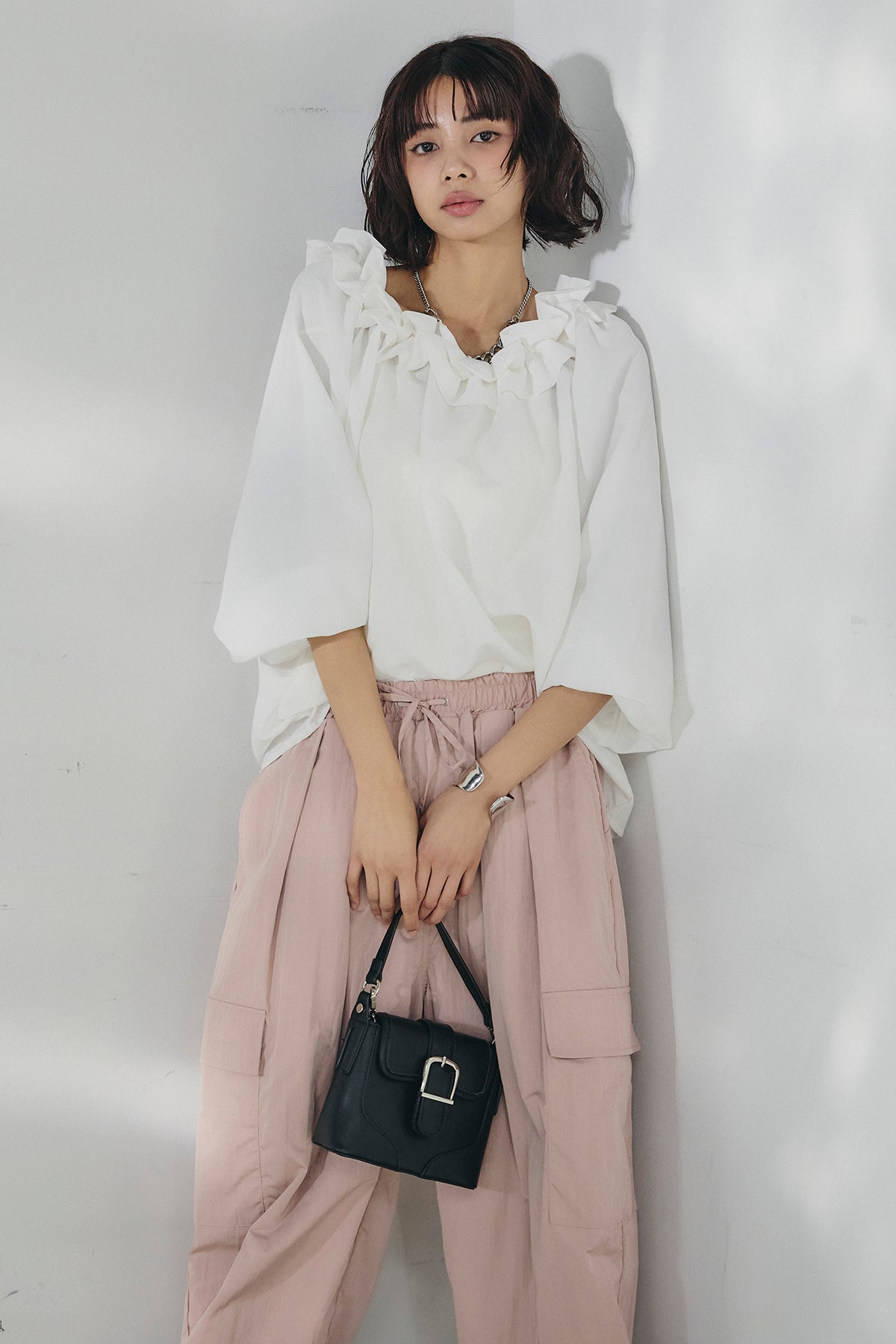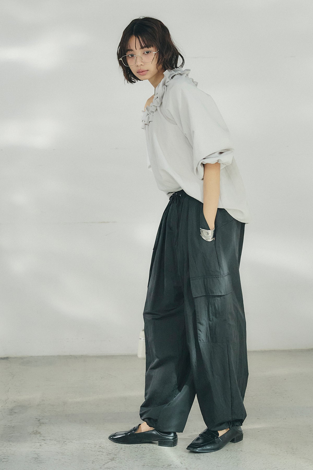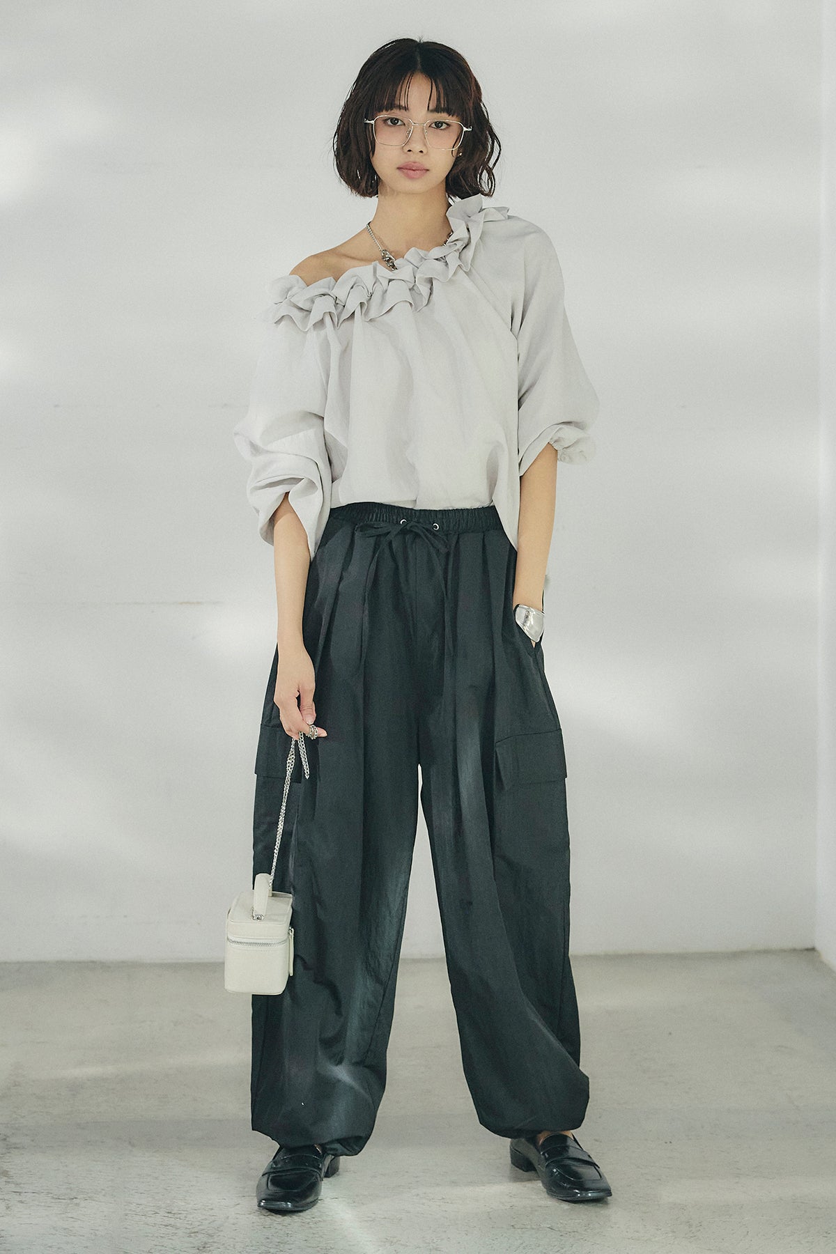 [SET]ネックフリルデザインブラウス+撥水ジョガーパンツ(2set)
