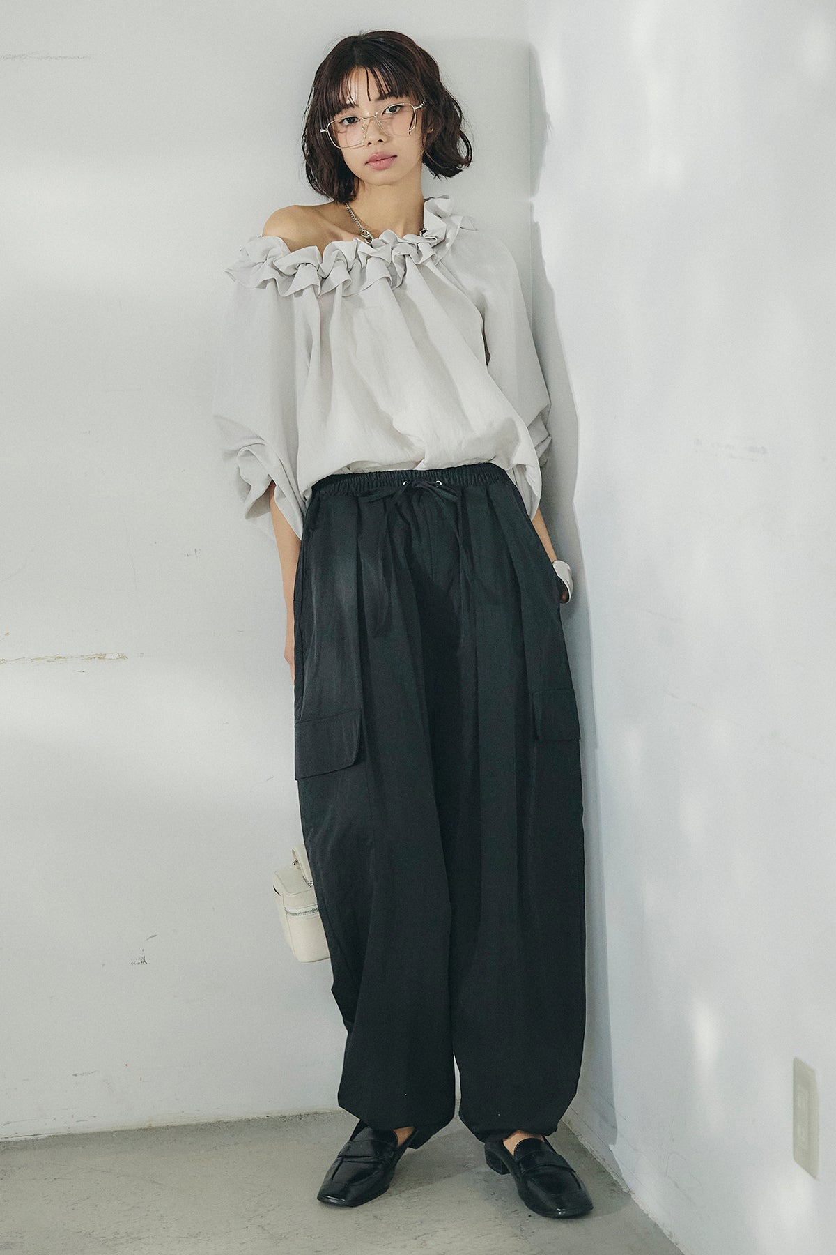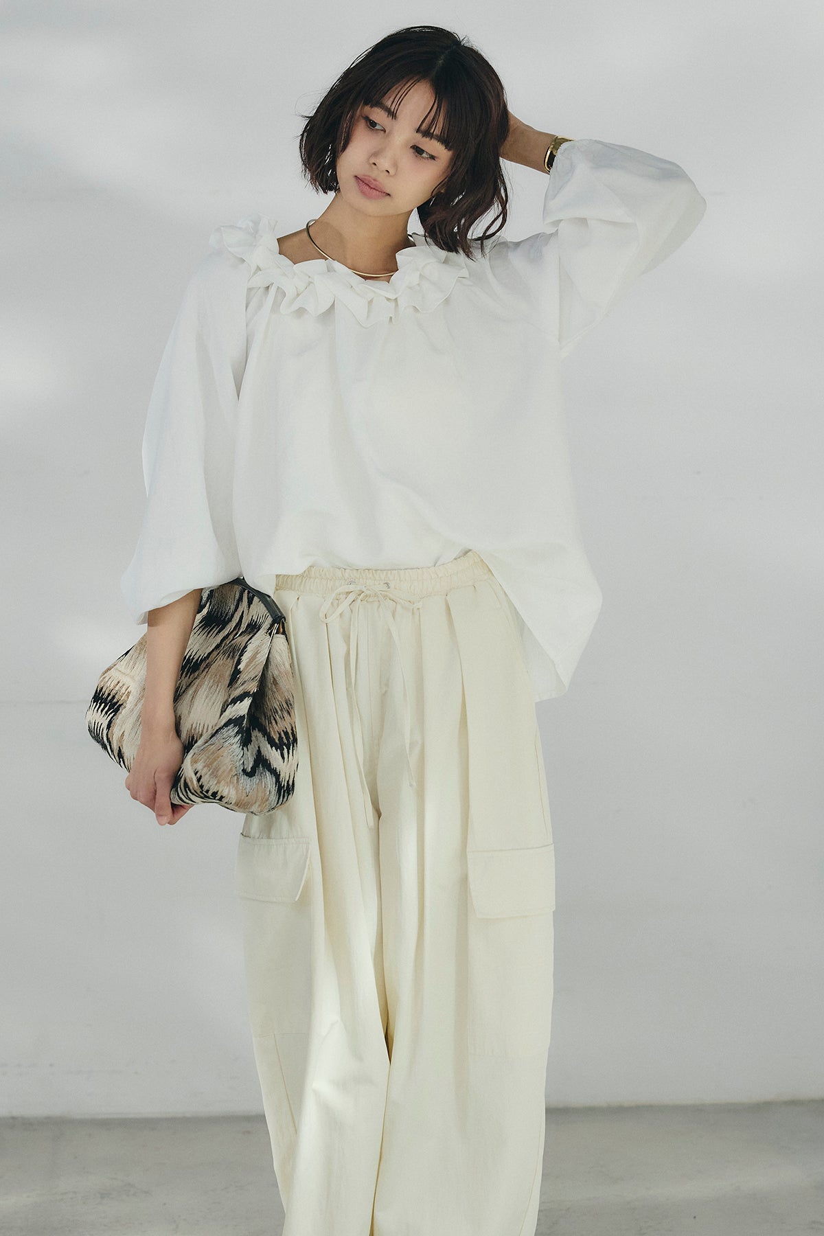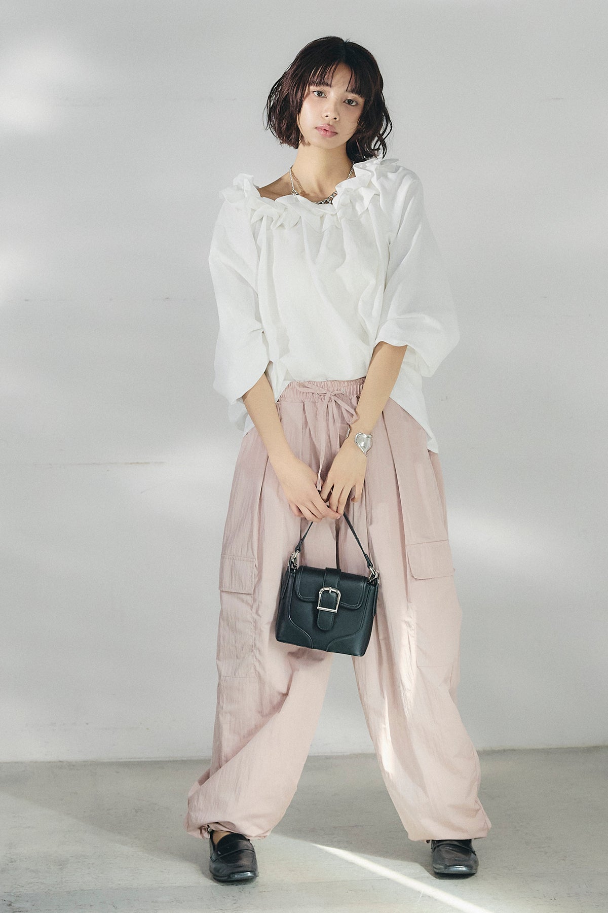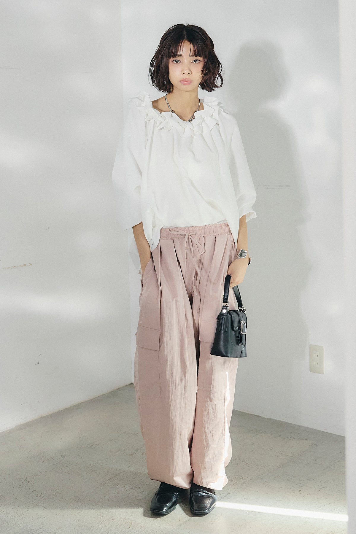 [SET]ネックフリルデザインブラウス+撥水ジョガーパンツ(2set)