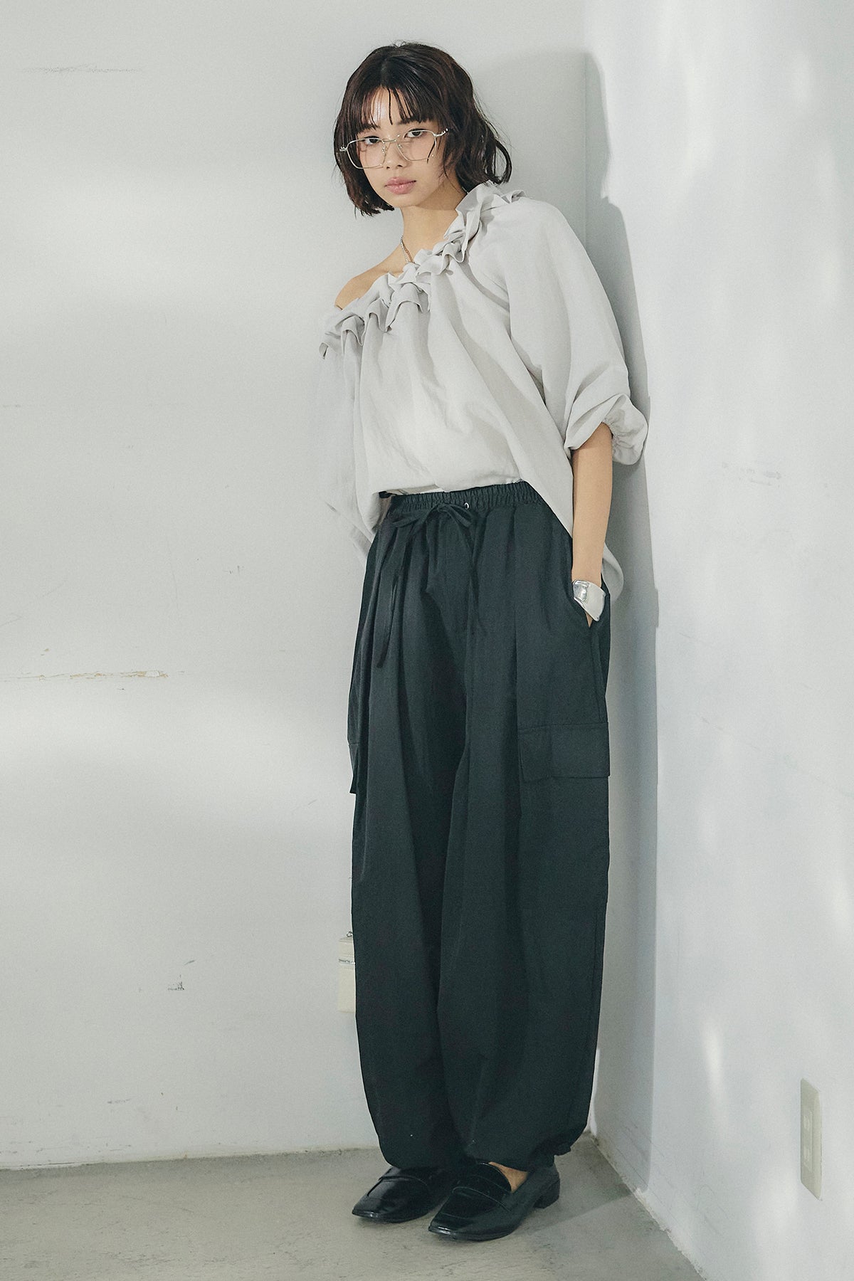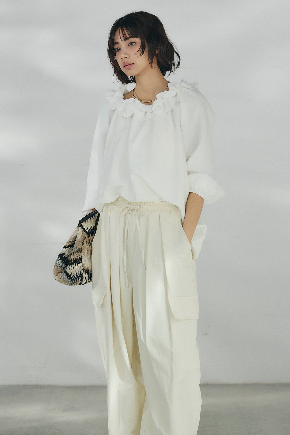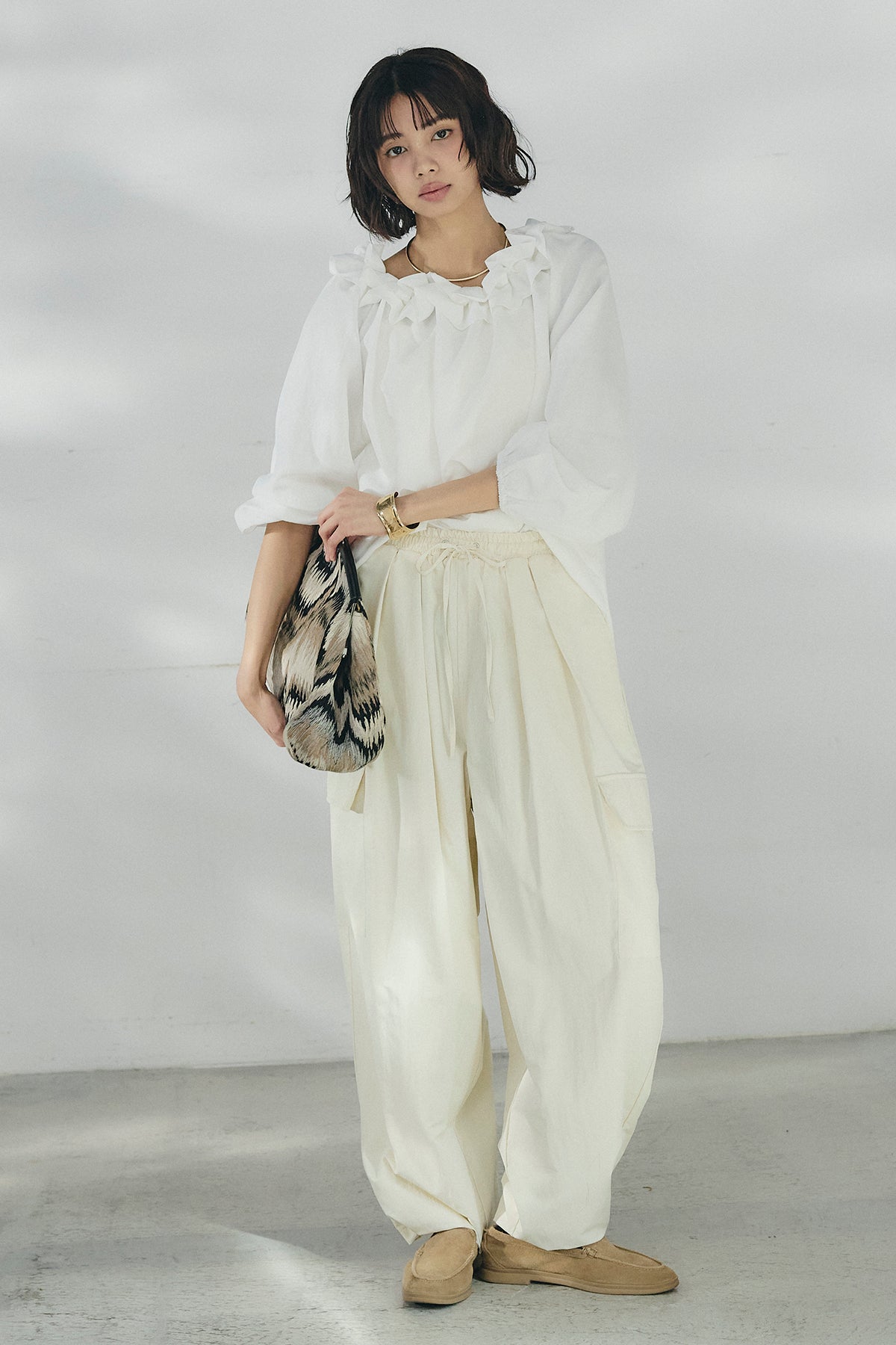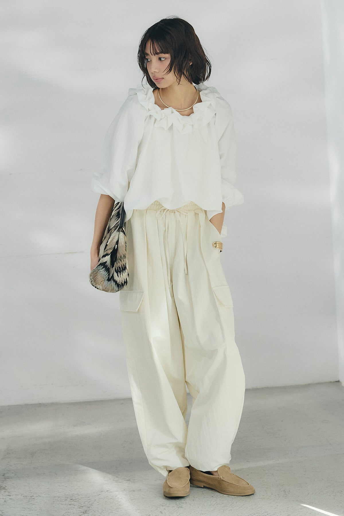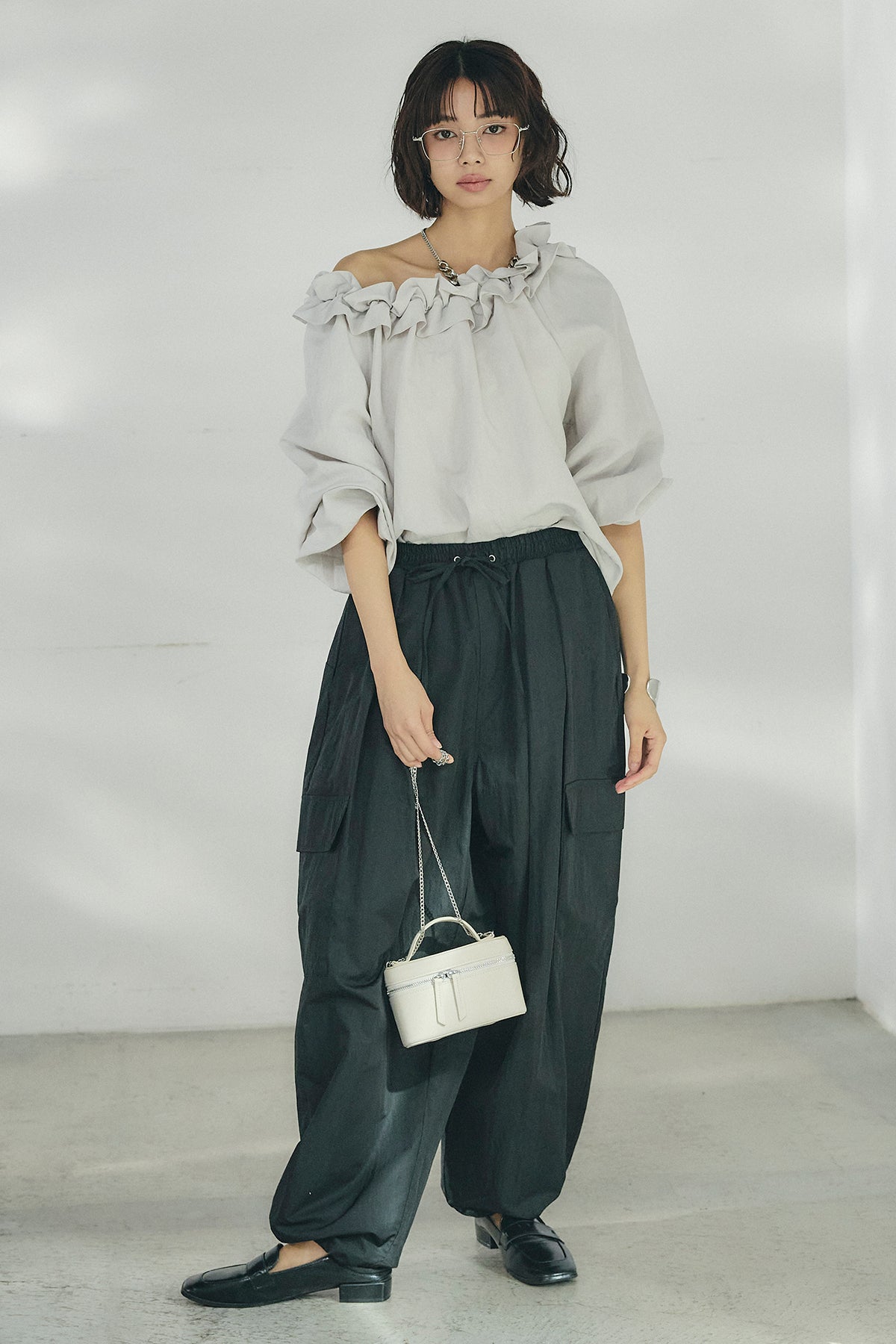 [SET]ネックフリルデザインブラウス+撥水ジョガーパンツ(2set)