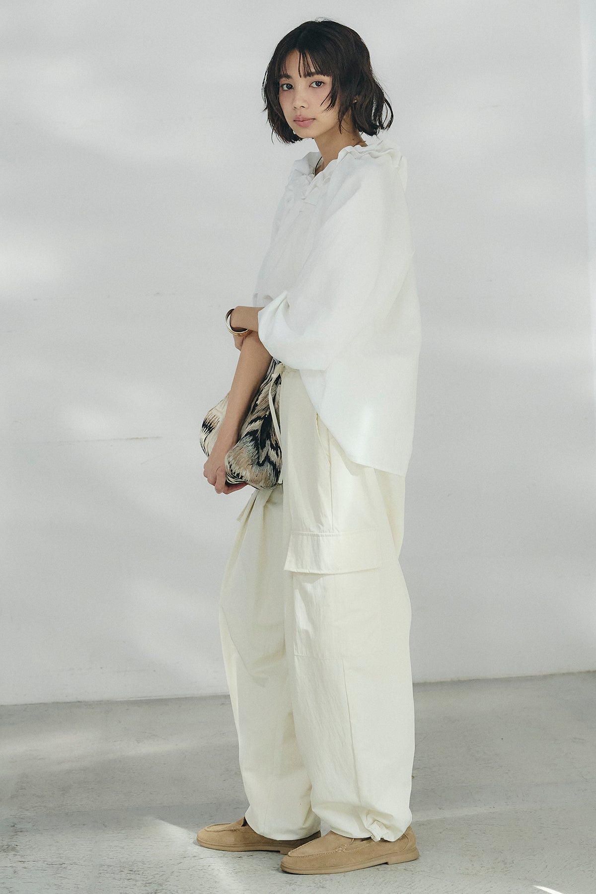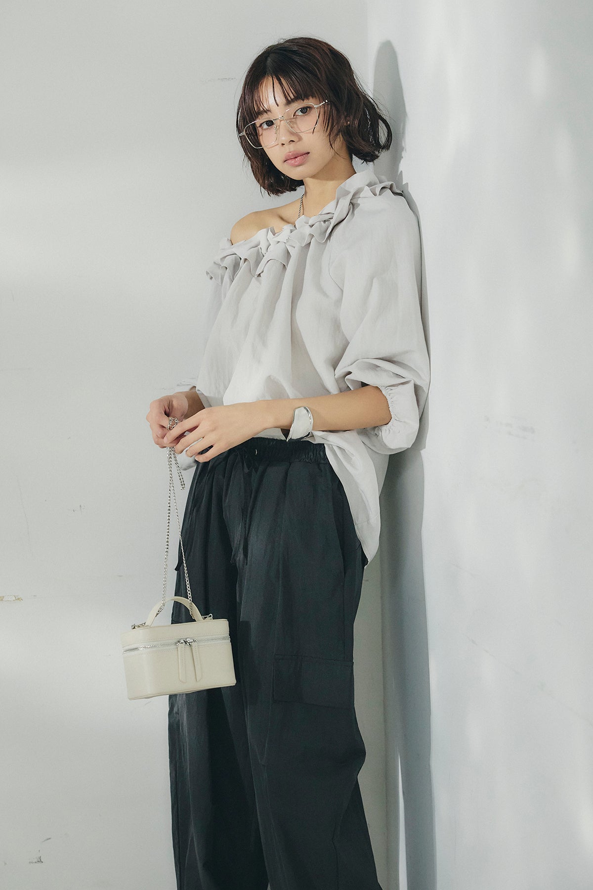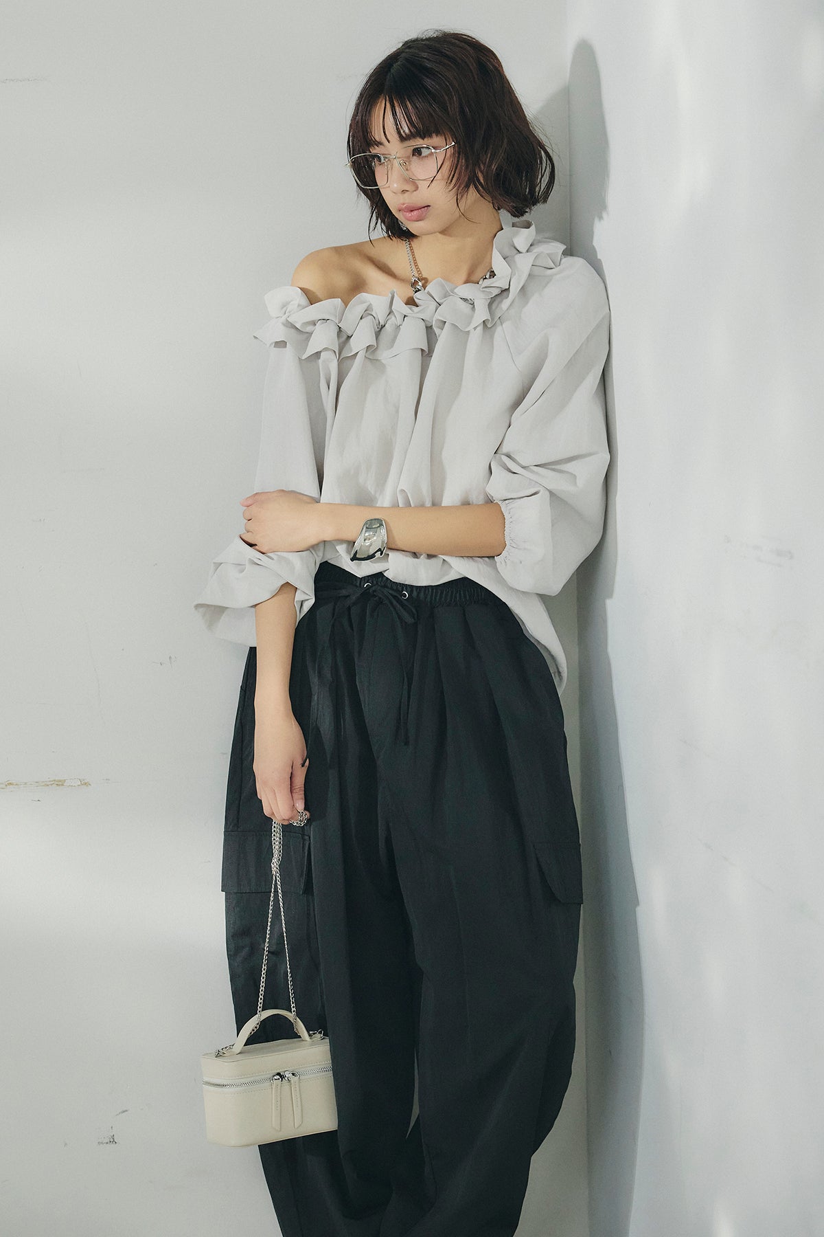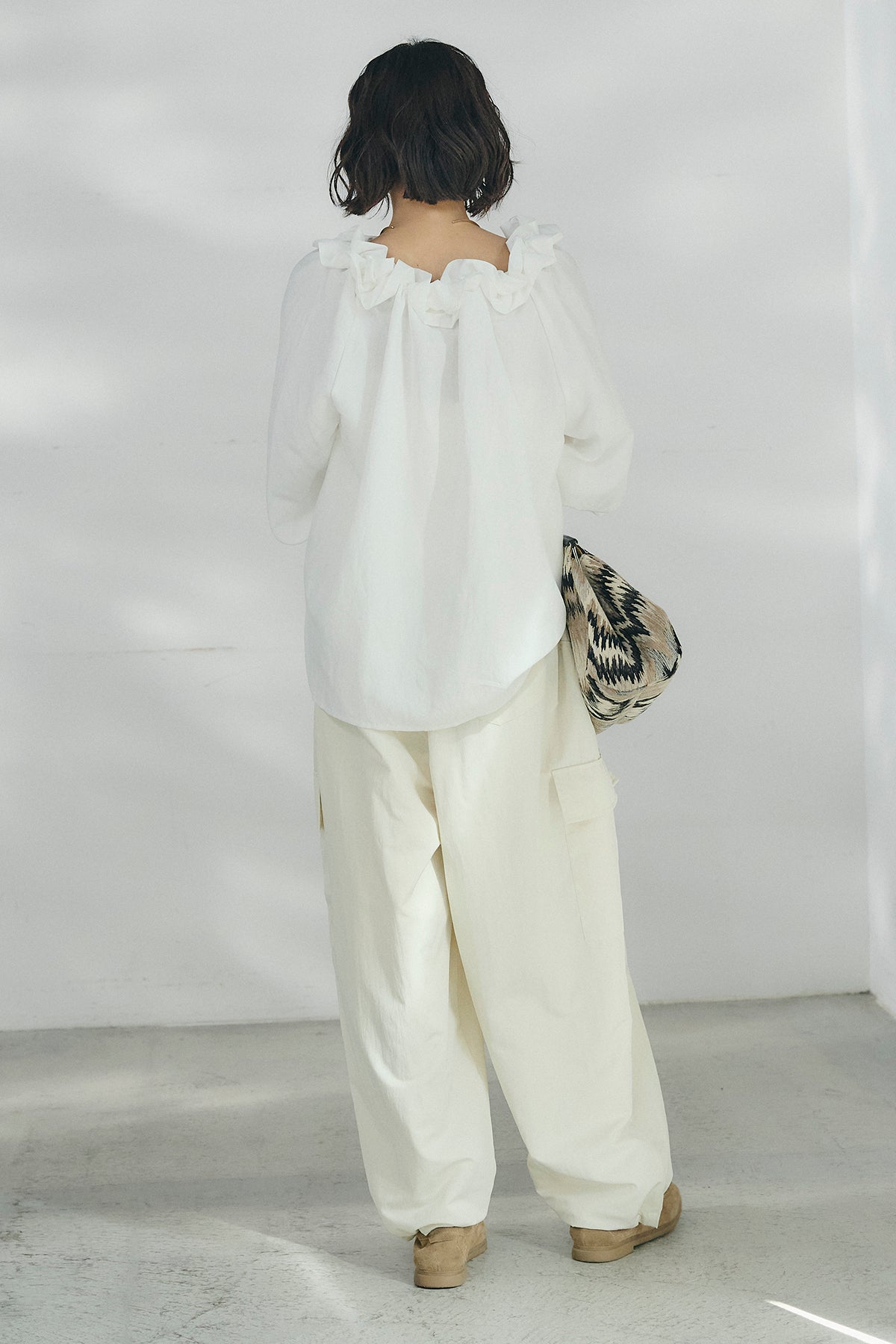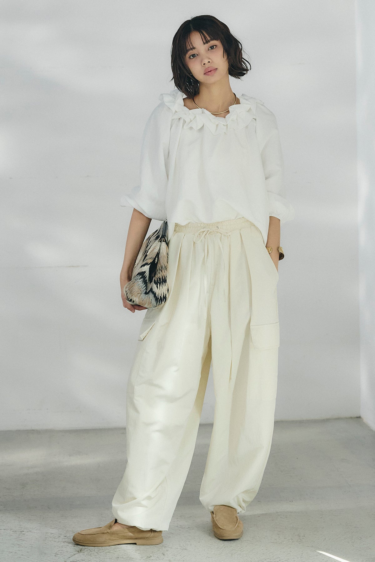 [SET]ネックフリルデザインブラウス+撥水ジョガーパンツ(2set)