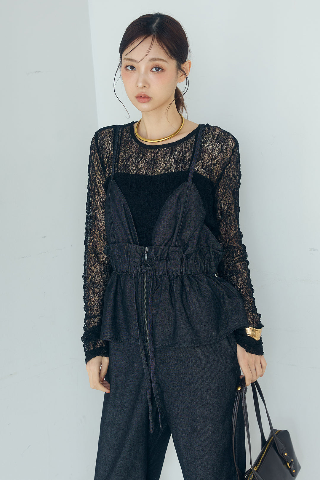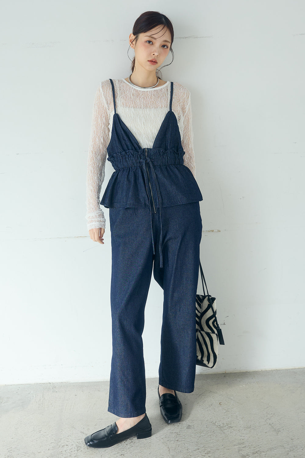 [SET]ストレッチレースクルーネックインナー+デニムペプラムコンビネゾン(2set)